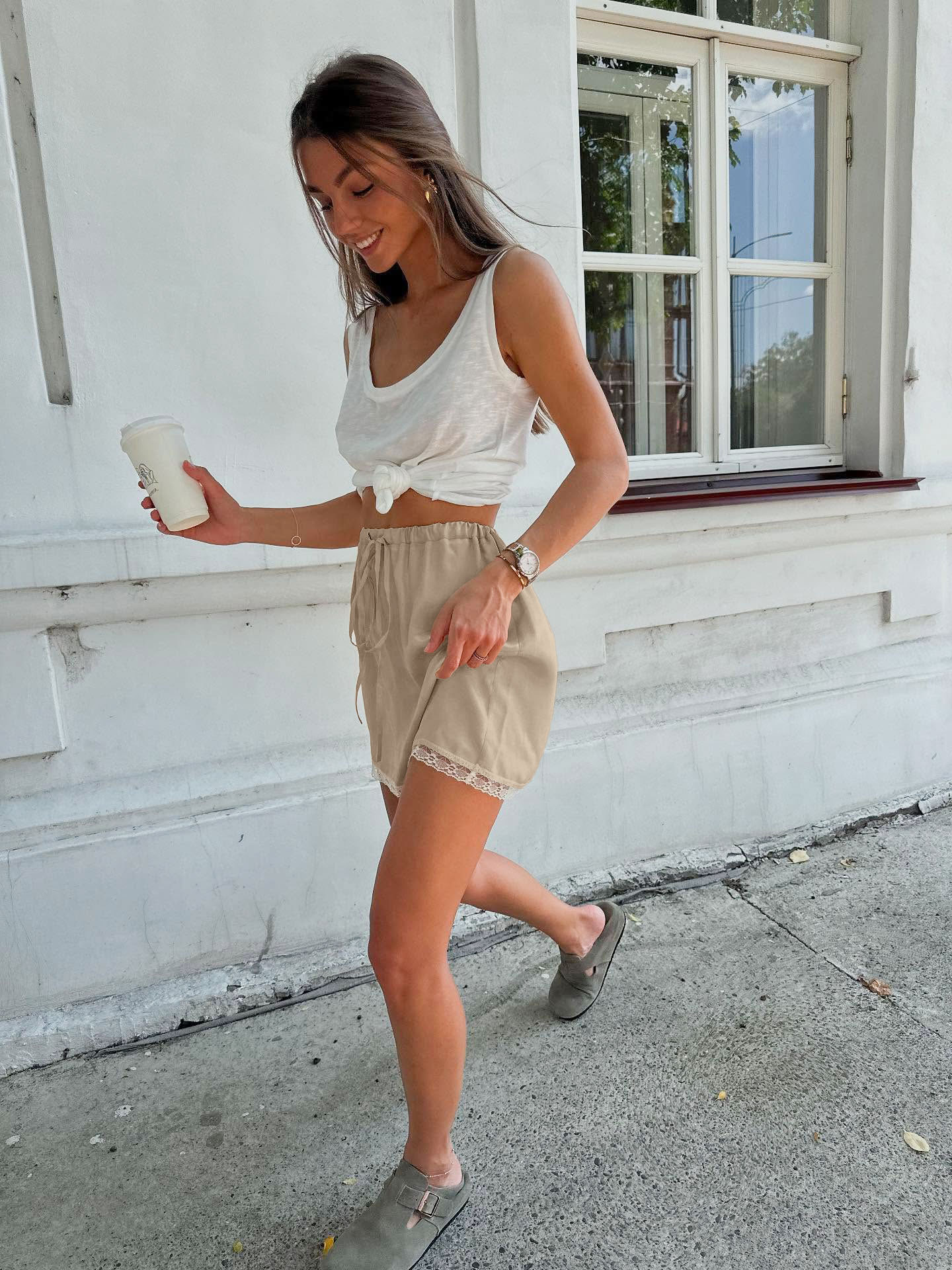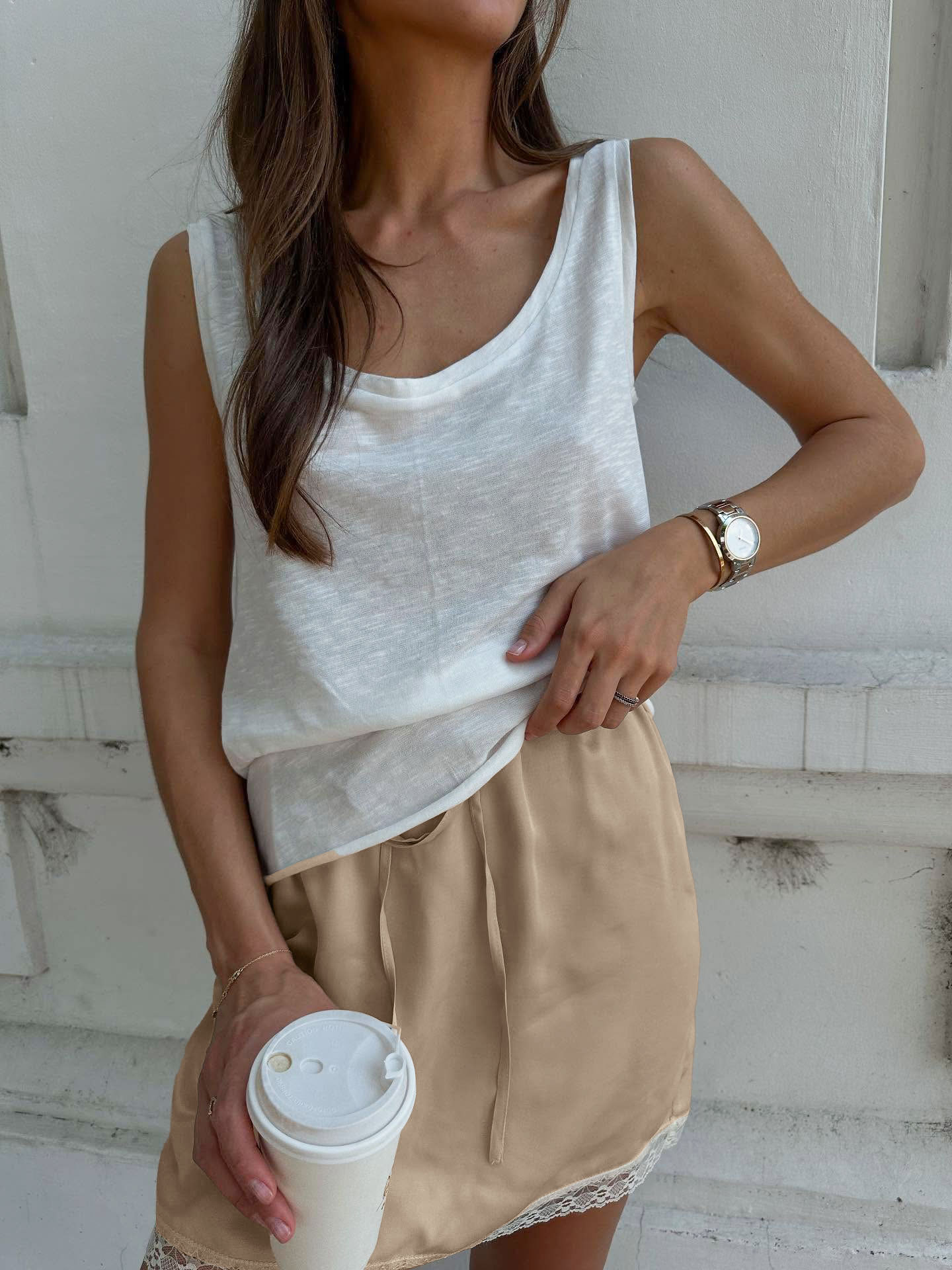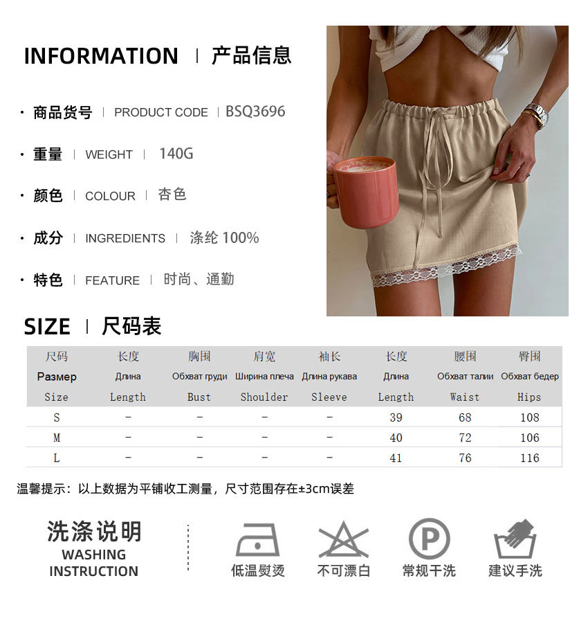 2025년 신상 여름 레이스 레이스업 새틴 스커트 디자인, 패셔너블하고 캐주얼한 크로스보더 통근