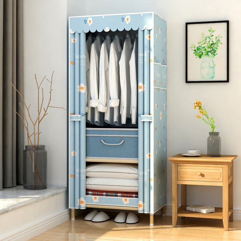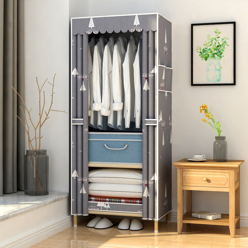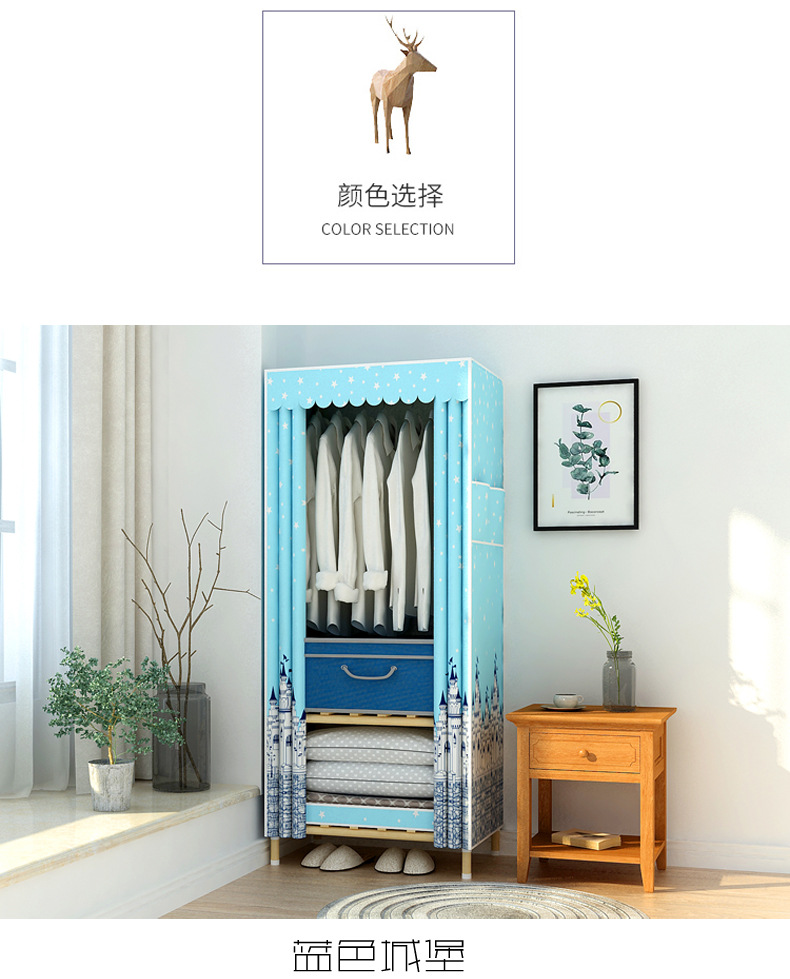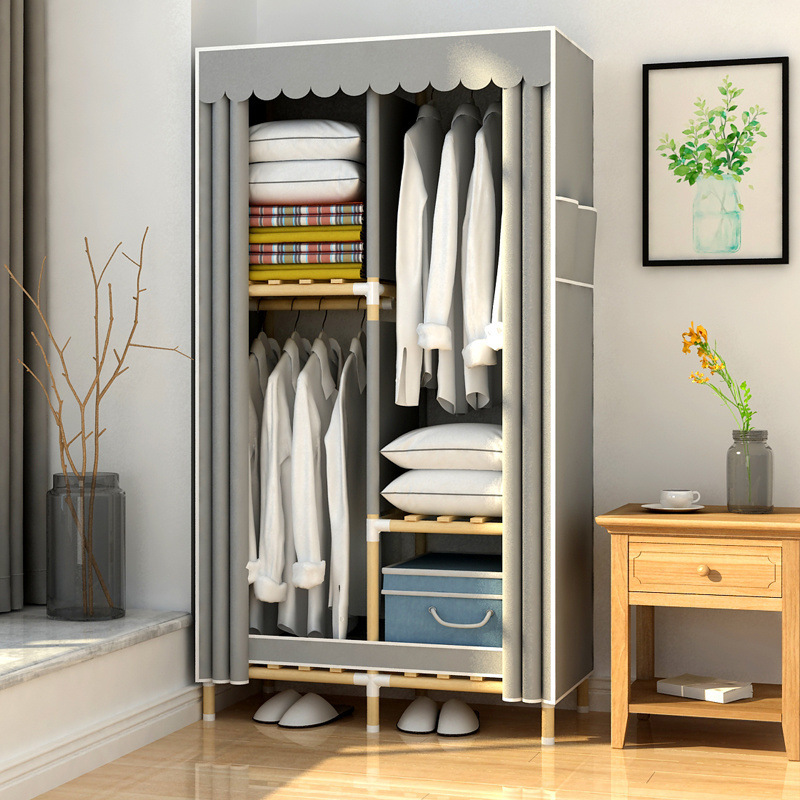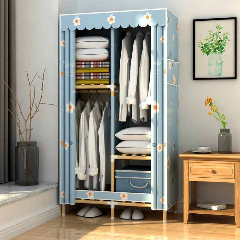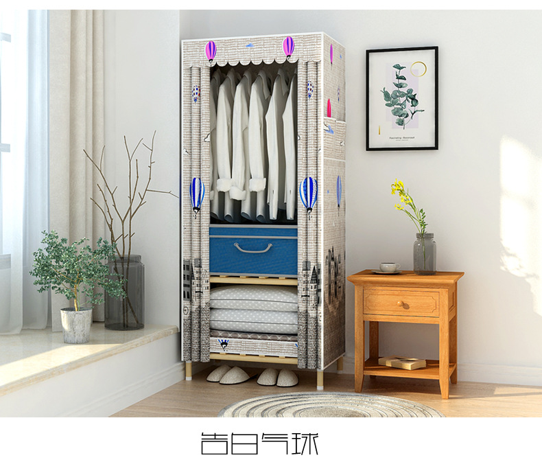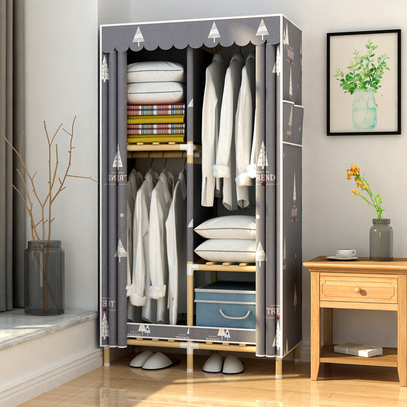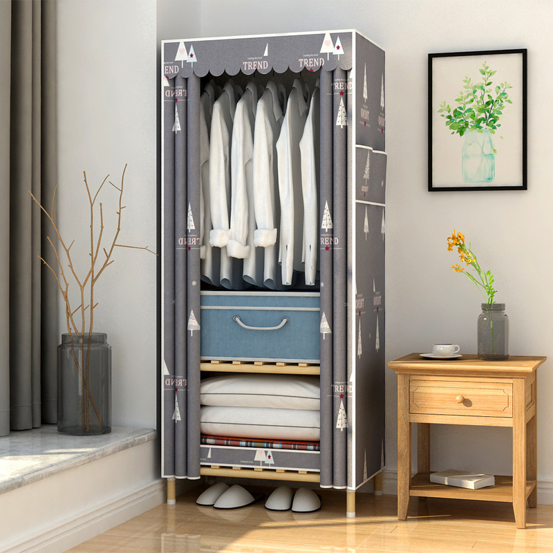 학생 단단한 나무 옥스포드 천 간단한 옷장 보관 랙 싱글 임대 기숙사 홈 조립 옷장 독립 스테이션