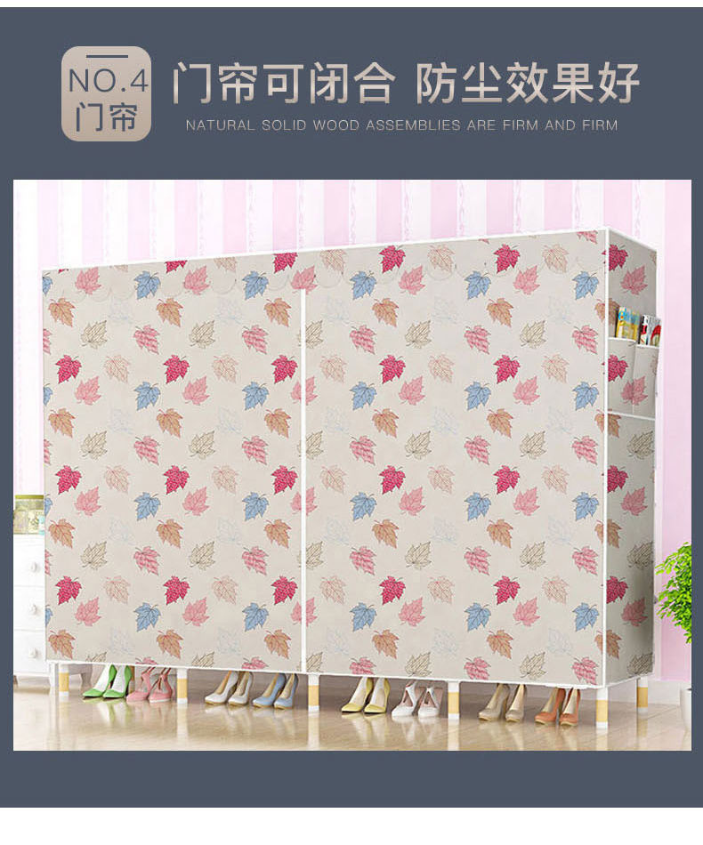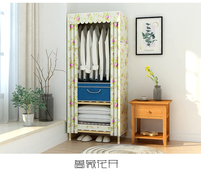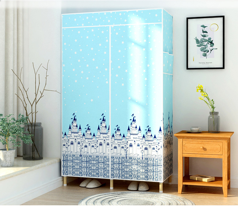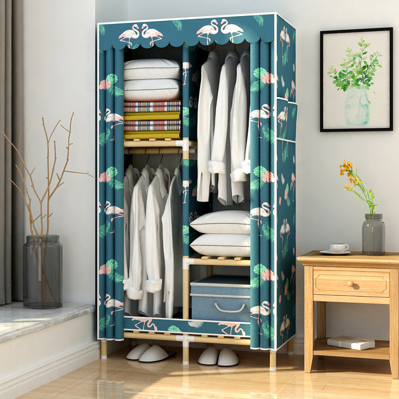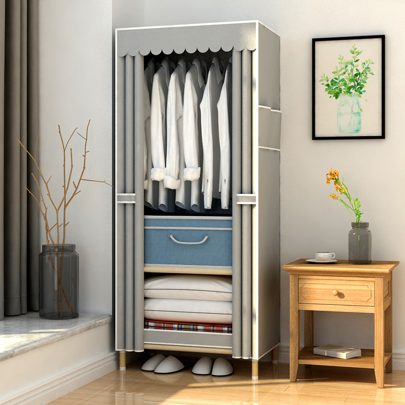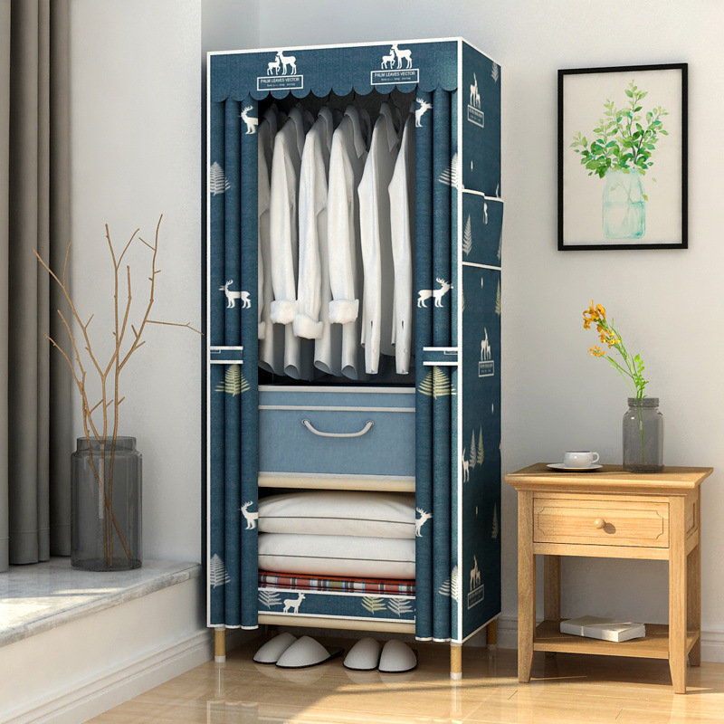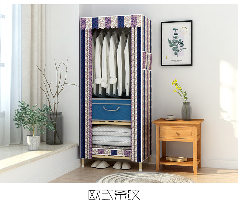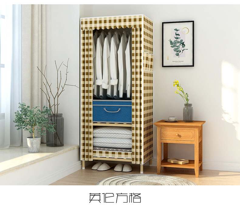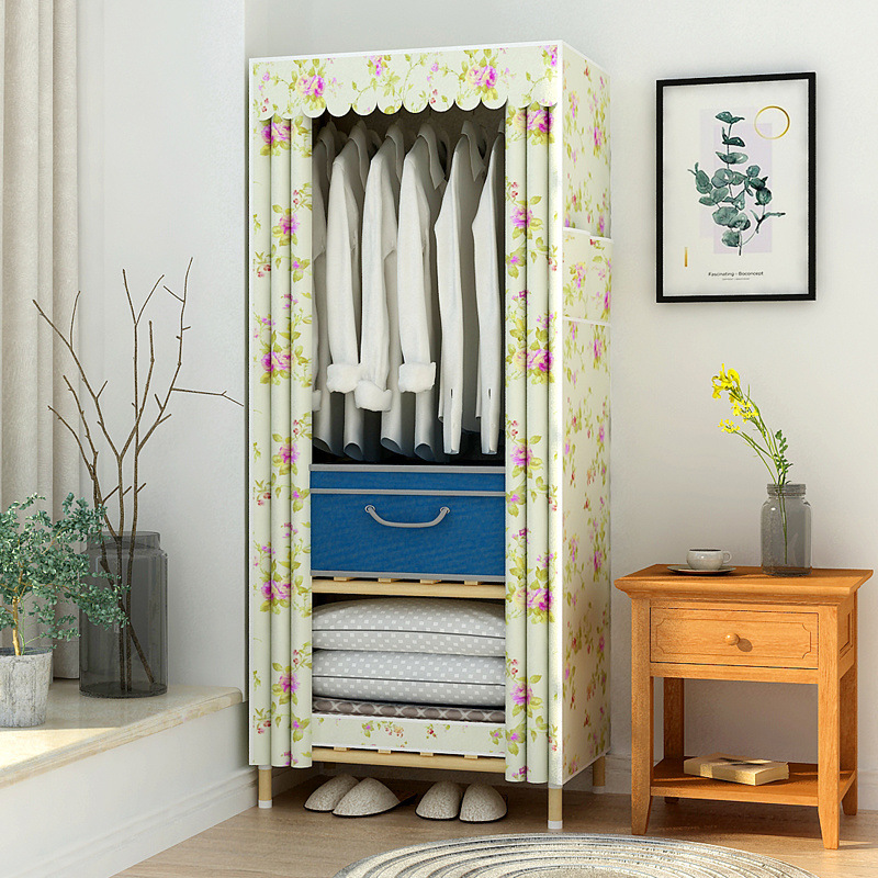 학생 단단한 나무 옥스포드 천 간단한 옷장 보관 랙 싱글 임대 기숙사 홈 조립 옷장 독립 스테이션