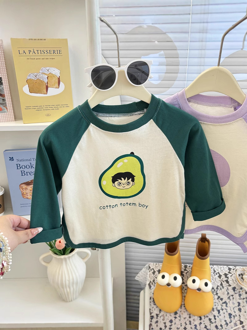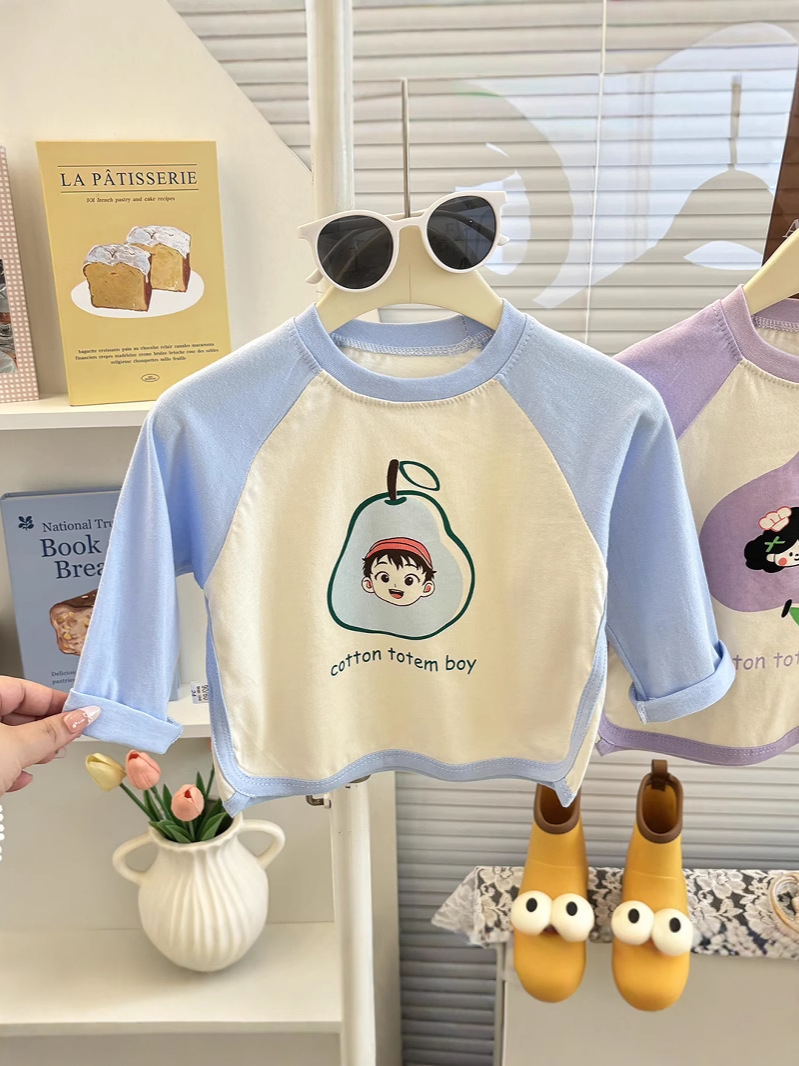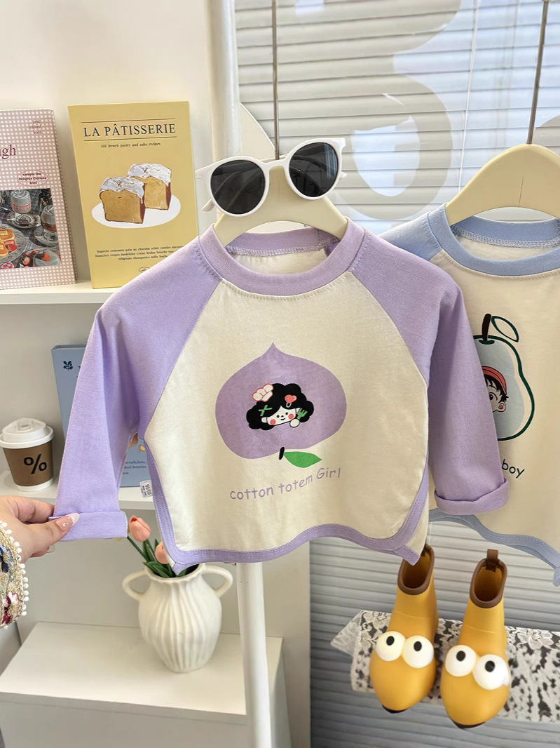 가을 유아 대비 색상 바닥 셔츠 순면 긴팔 티셔츠 소년 겉옷 소녀 봄 한국 스타일 옷스토어 가기