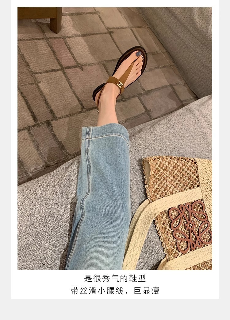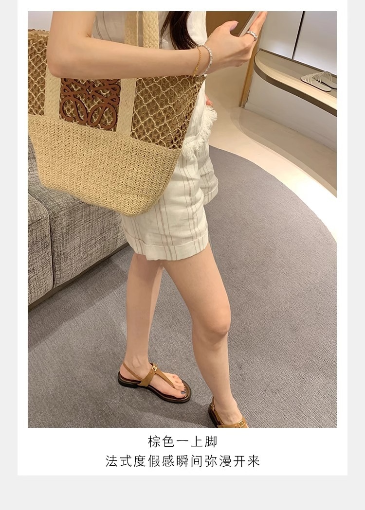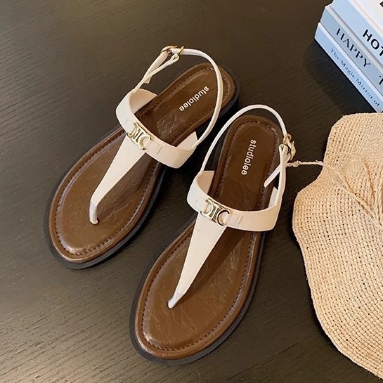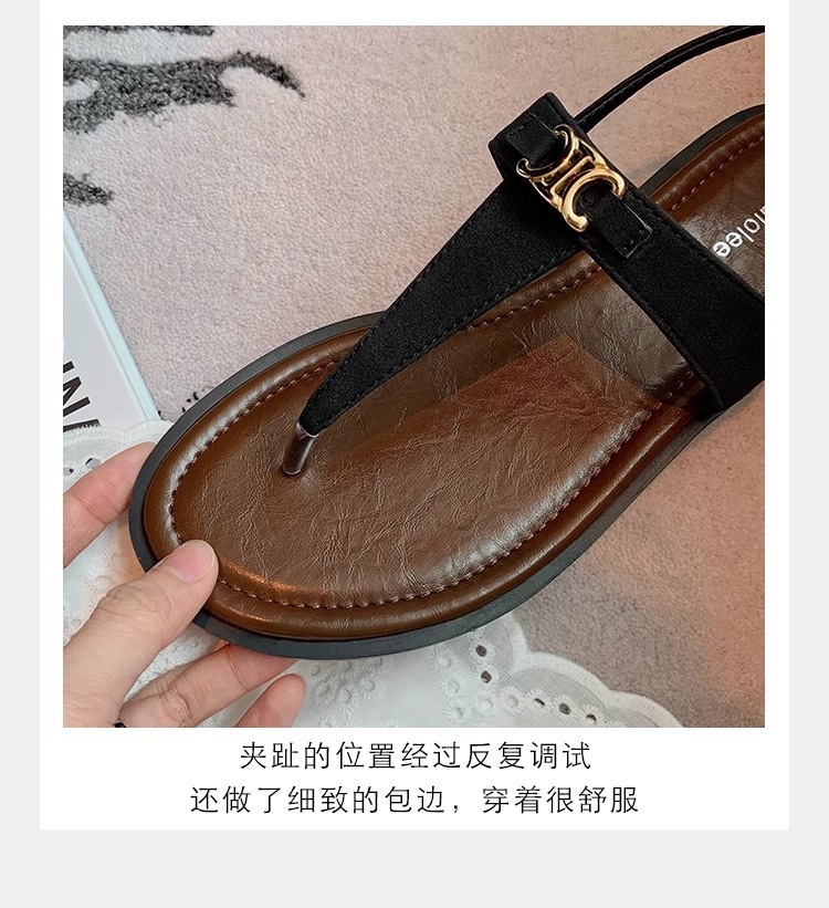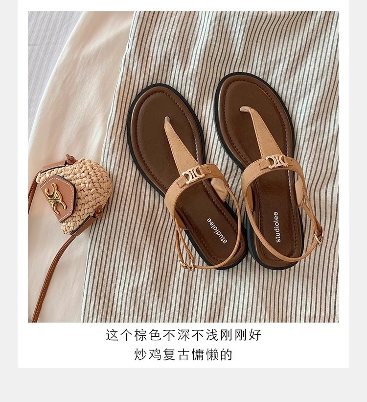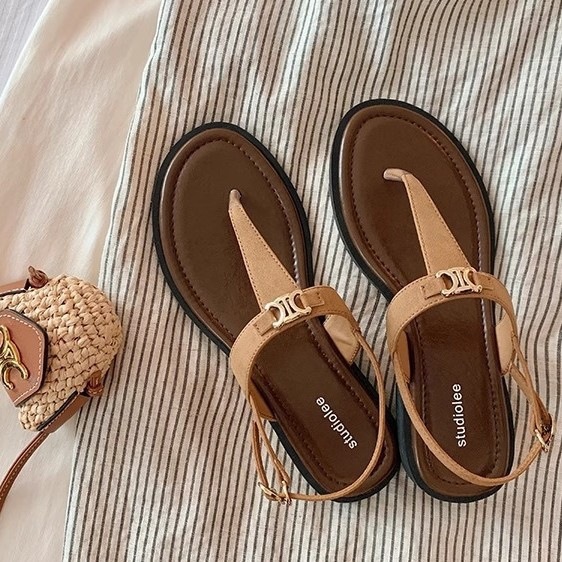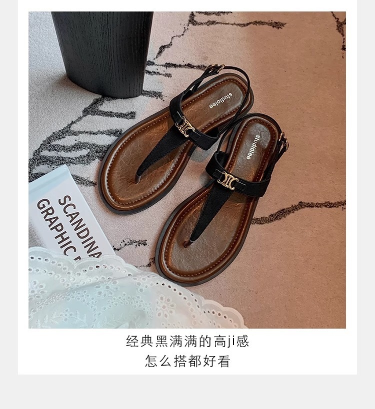 여름 여성용 천연 가죽 헤링본 슬리퍼, 다용도 T 레트로 포도 엄마 금속 버클 휴가 스타일스토어 가기
