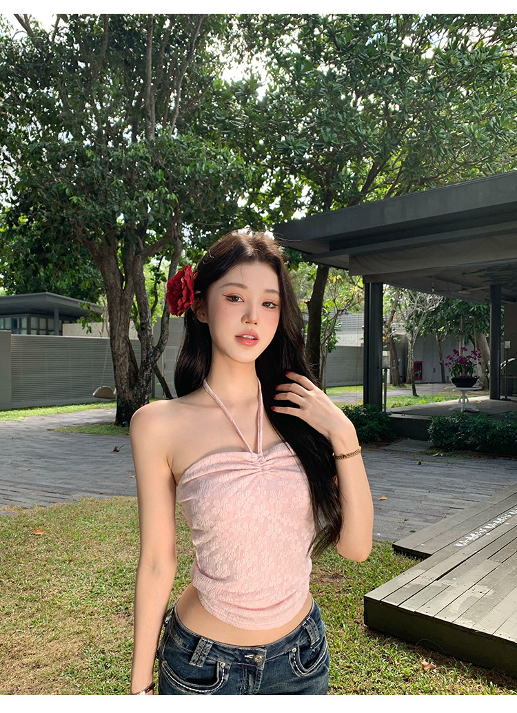 2316 # 레이온 스위트 핫 걸 홀터넥 슬링 입체 꽃 패턴 조끼 여름 귀여운 페르시 드로스트링 탑 여성용스토어 가기