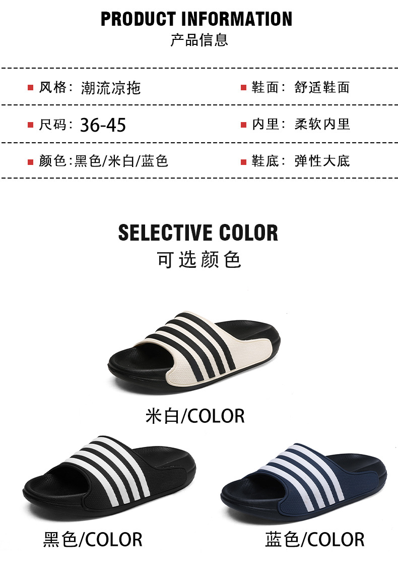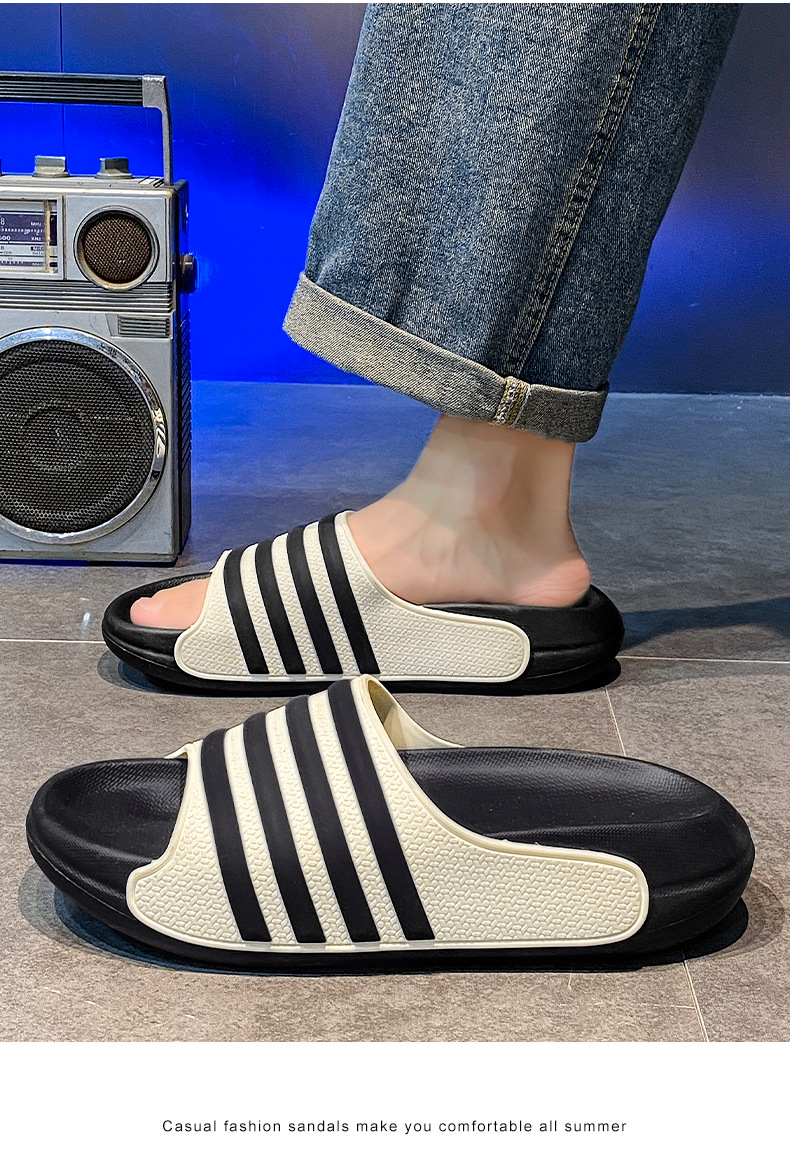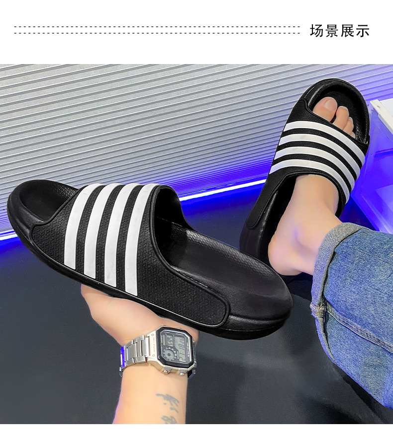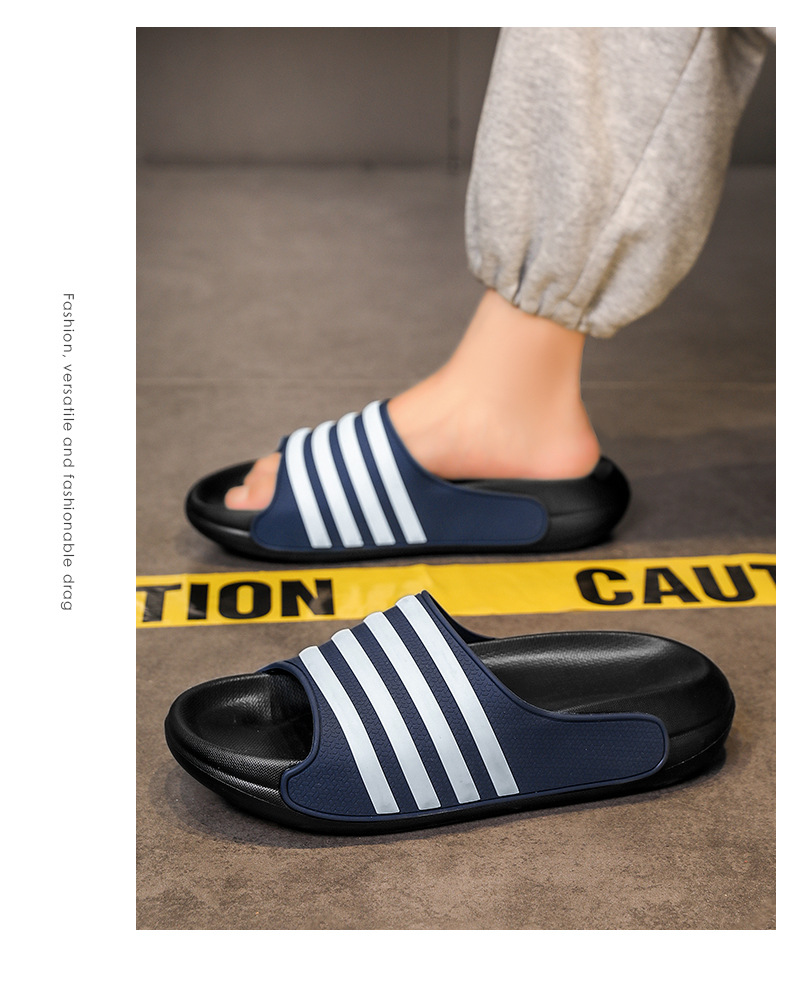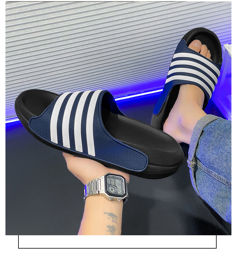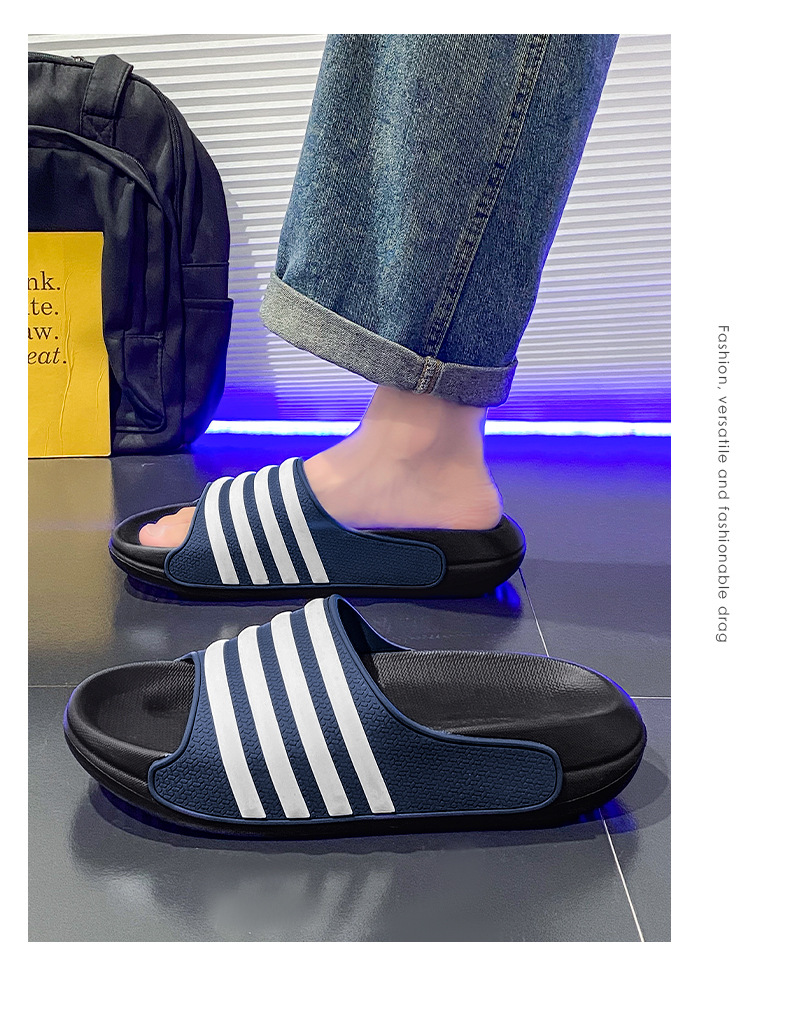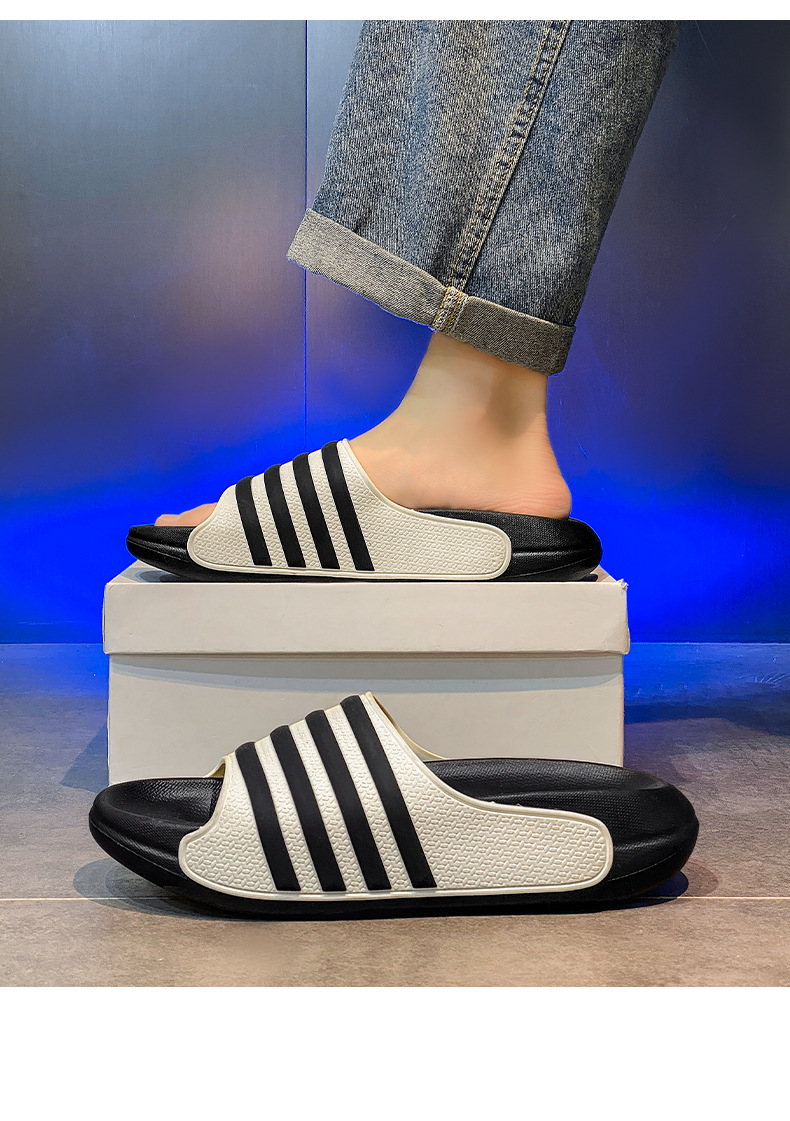 동남아시아 및 베트남으로 직접 판매되는 새로운 줄무늬 남녀공용 여름용 부드러운 밑창 슬리퍼, 미끄럼 방지 및 내마모성 커플 슬리퍼스토어 가기