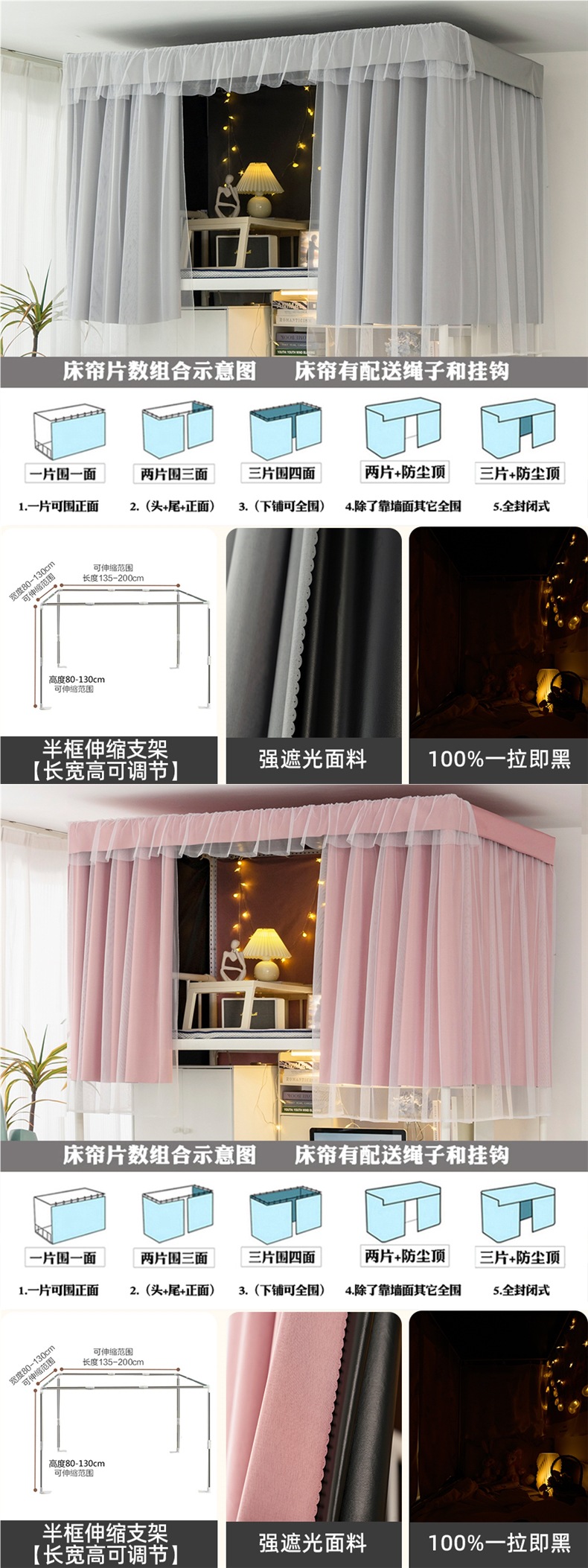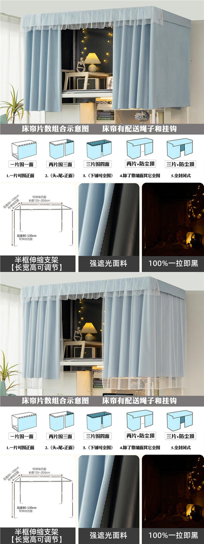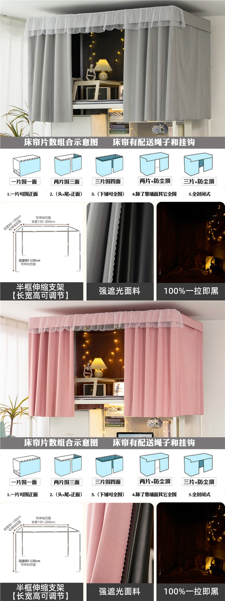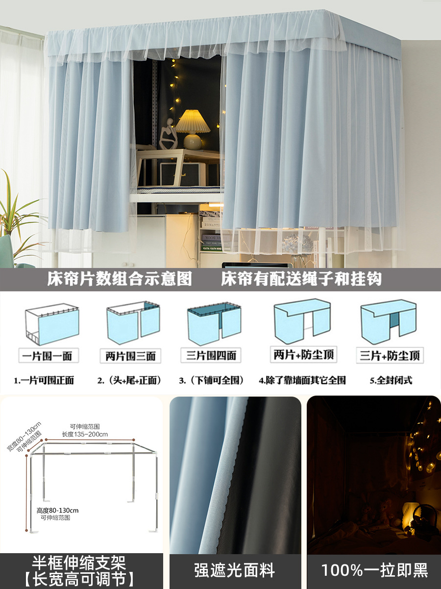 加厚强遮光帘子学生宿舍床帘上铺下铺大学寝室蚊帐一体式纯色窗帘스토어 가기