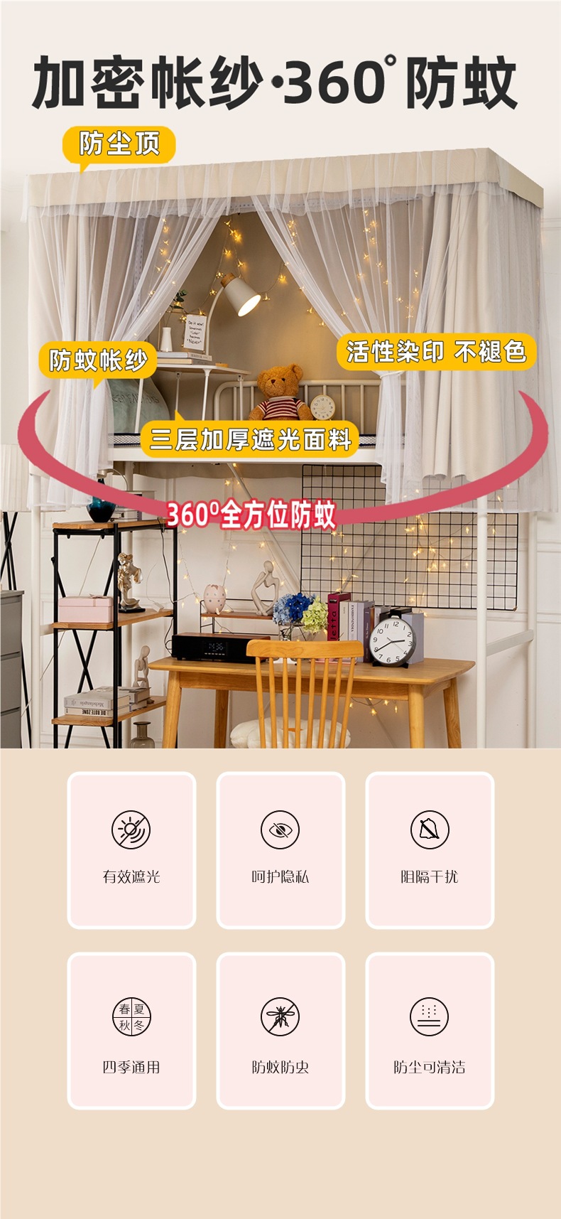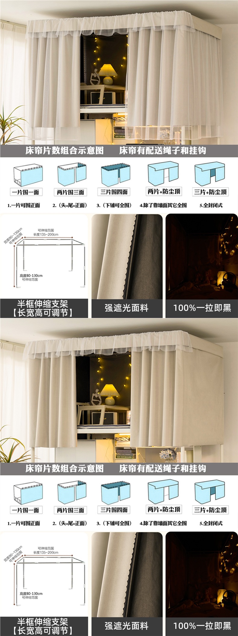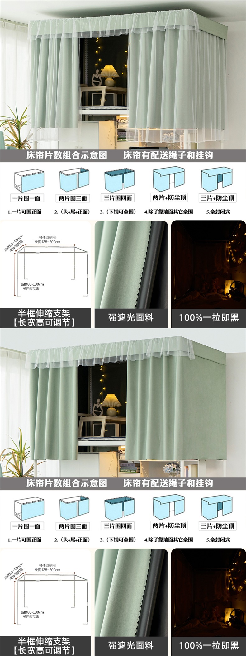 加厚强遮光帘子学生宿舍床帘上铺下铺大学寝室蚊帐一体式纯色窗帘스토어 가기
