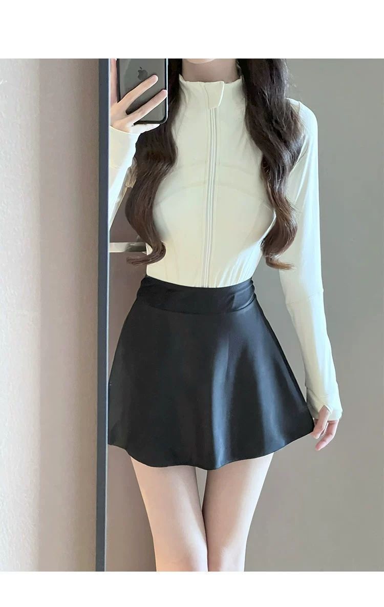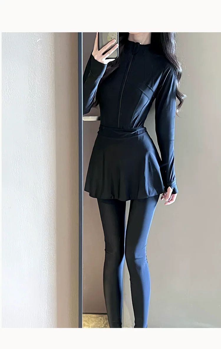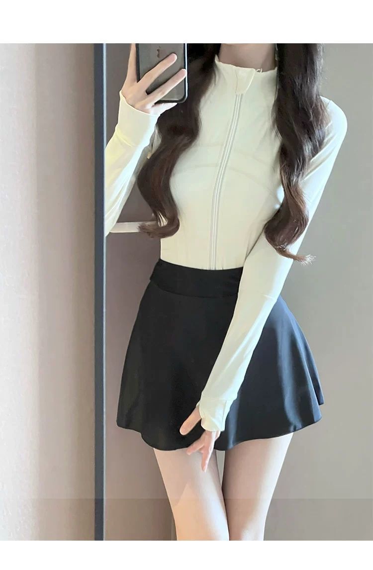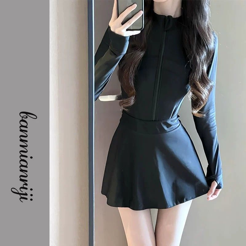 여성용 새로운 원피스 수영복, 긴팔 전문 레이싱 자외선 차단제 하이 칼라 서핑 잠수복, 웨이크 서핑 수영장스토어 가기