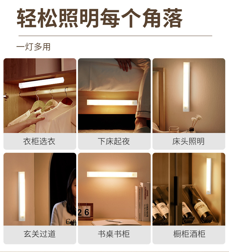 인기 있는 국경 간 지능형 추상 인체 유도 충전 야간 조명 긴 자석 통로 계단 와인 캐비닛 옷장스토어 가기