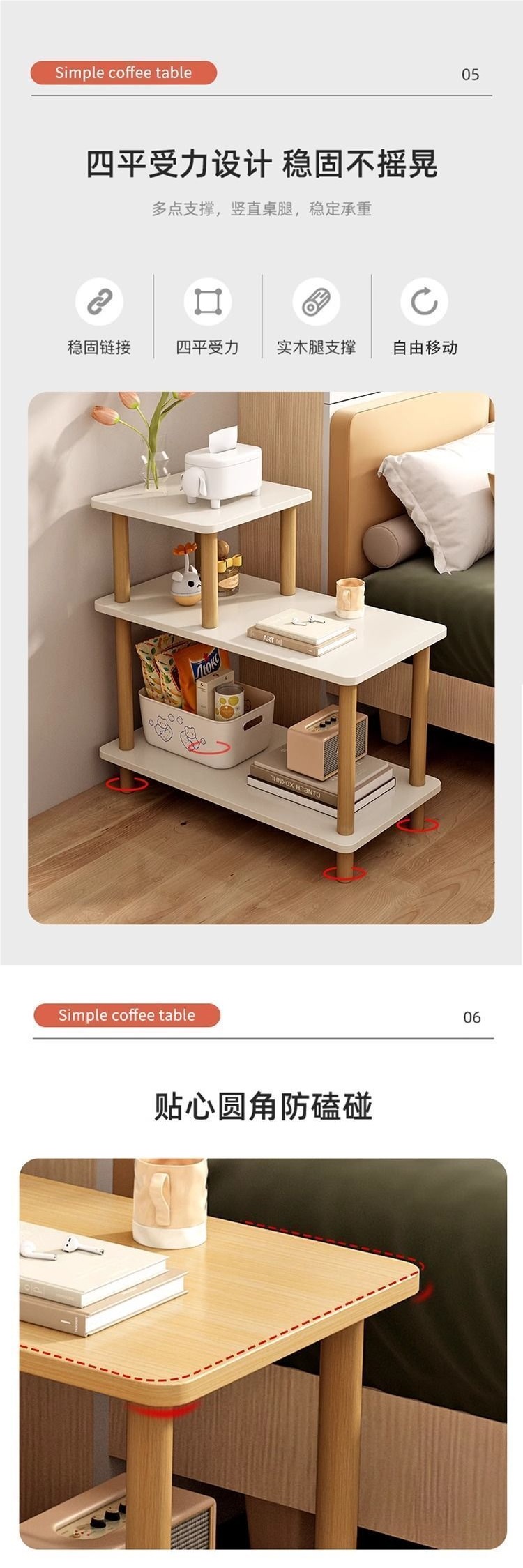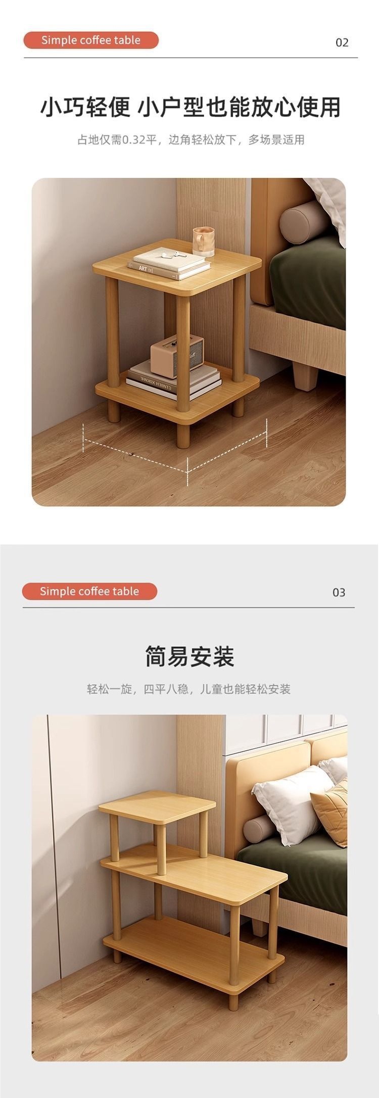 침대 옆 탁자 보관함 임대 주택 침실 침대 옆 작은 테이블 커피 테이블 나무 테이블 거실 사이드 테이블 사각형 테이블 발코니 티 테이블
