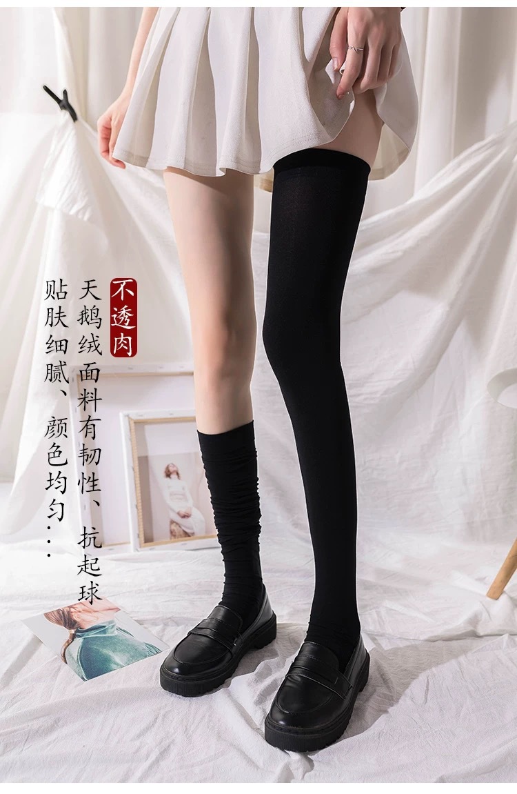 종아리 양말, 엑스트라 롱 튜브 무릎 위 양말, 유니폼 블랙 스타킹, 미끄럼 방지 슬리밍 벨벳 허벅지 양말, 약간의 압력 허벅지스토어 가기