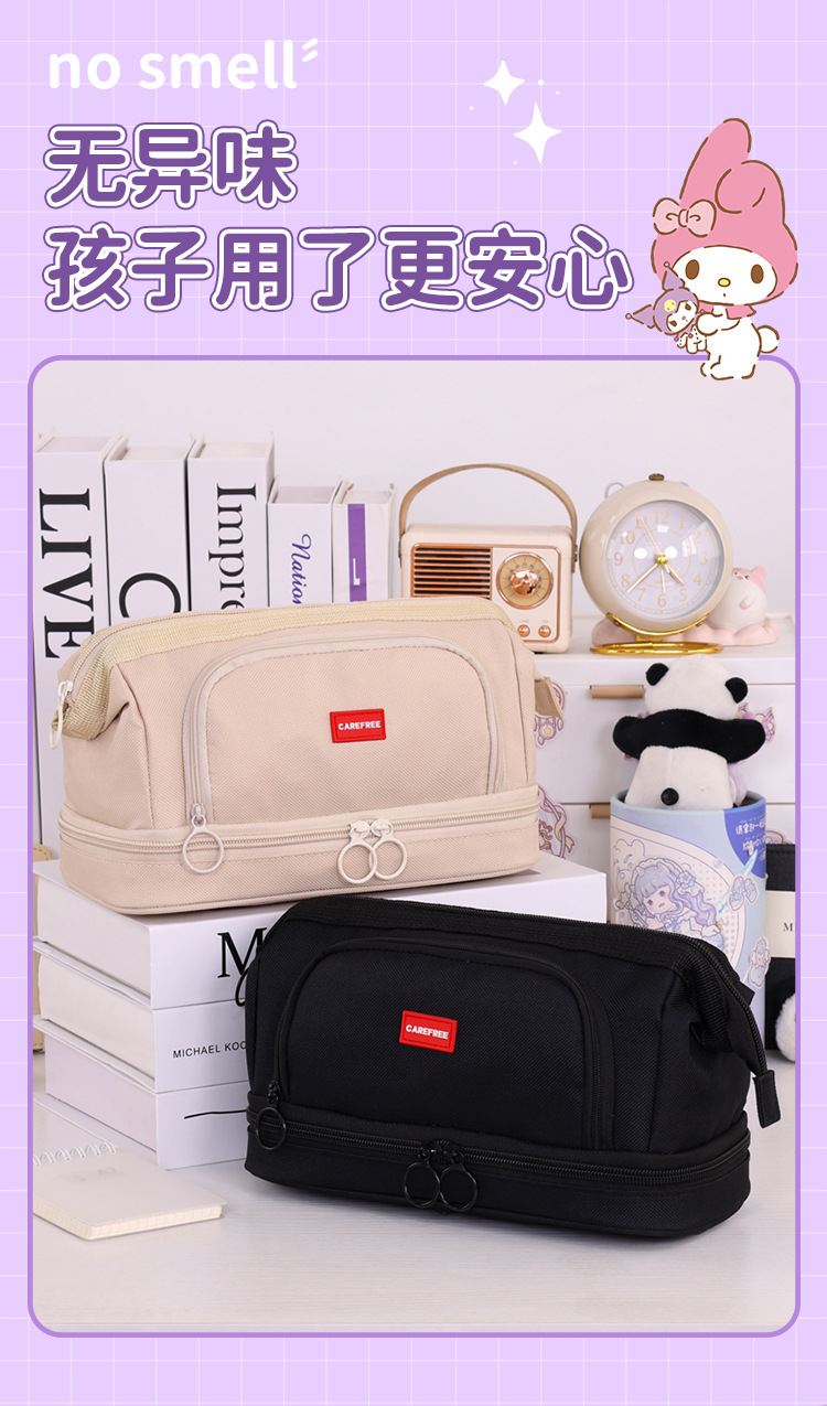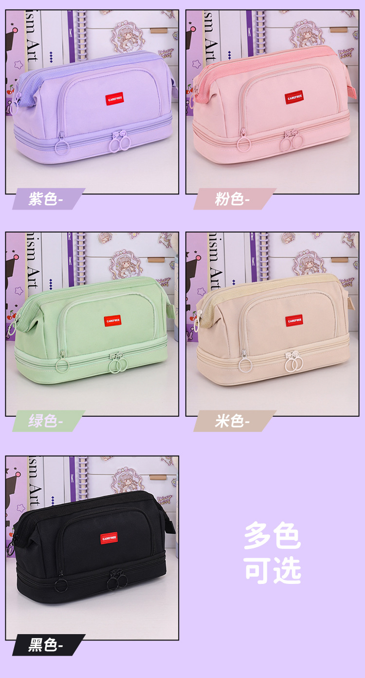 초등학생, 중학생, 남학생, 여학생을 위한 대용량의 새로운 국경 간 신제품 와이어 이중 연필 가방, 고급 문구 필통
