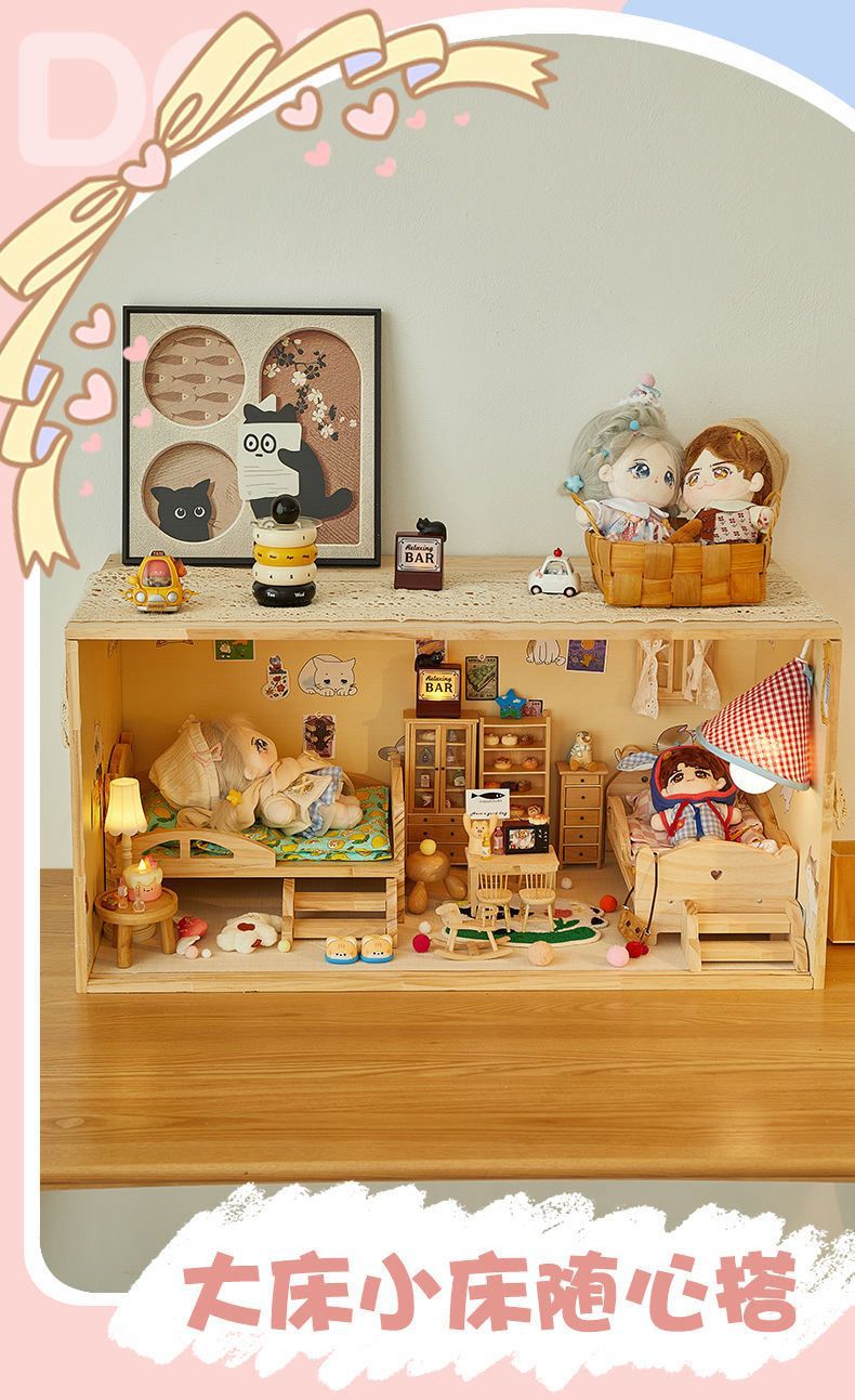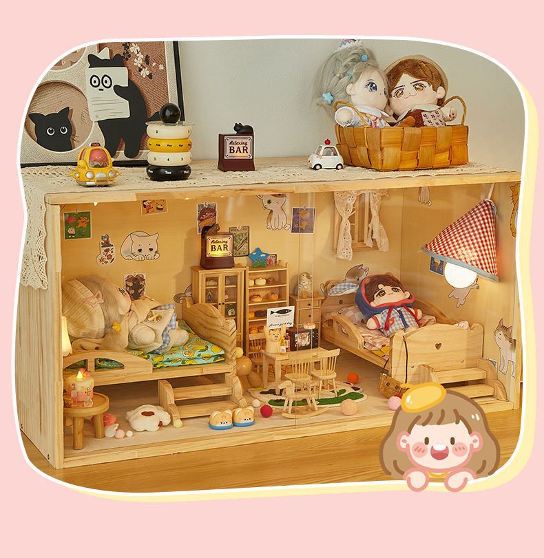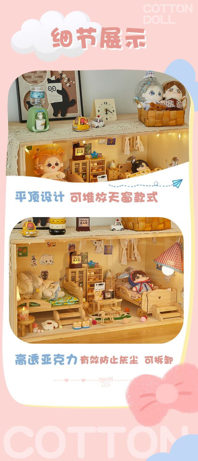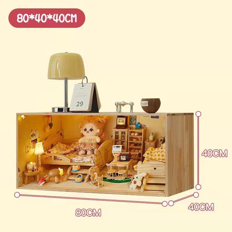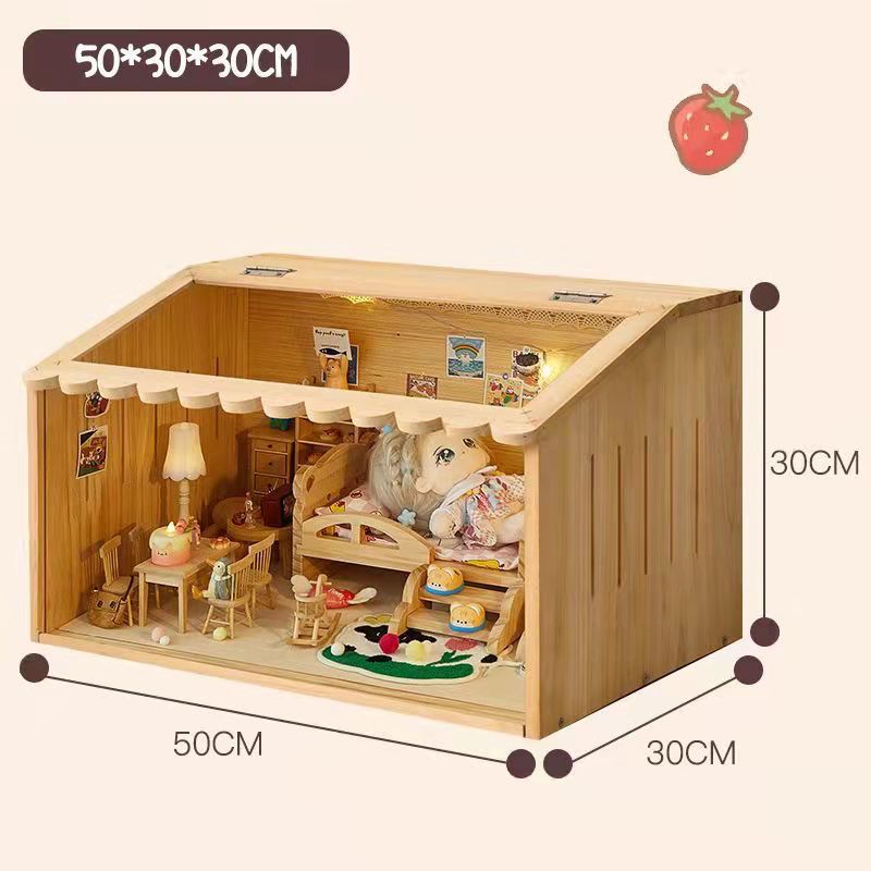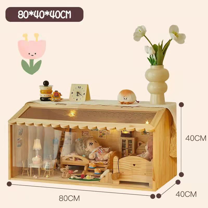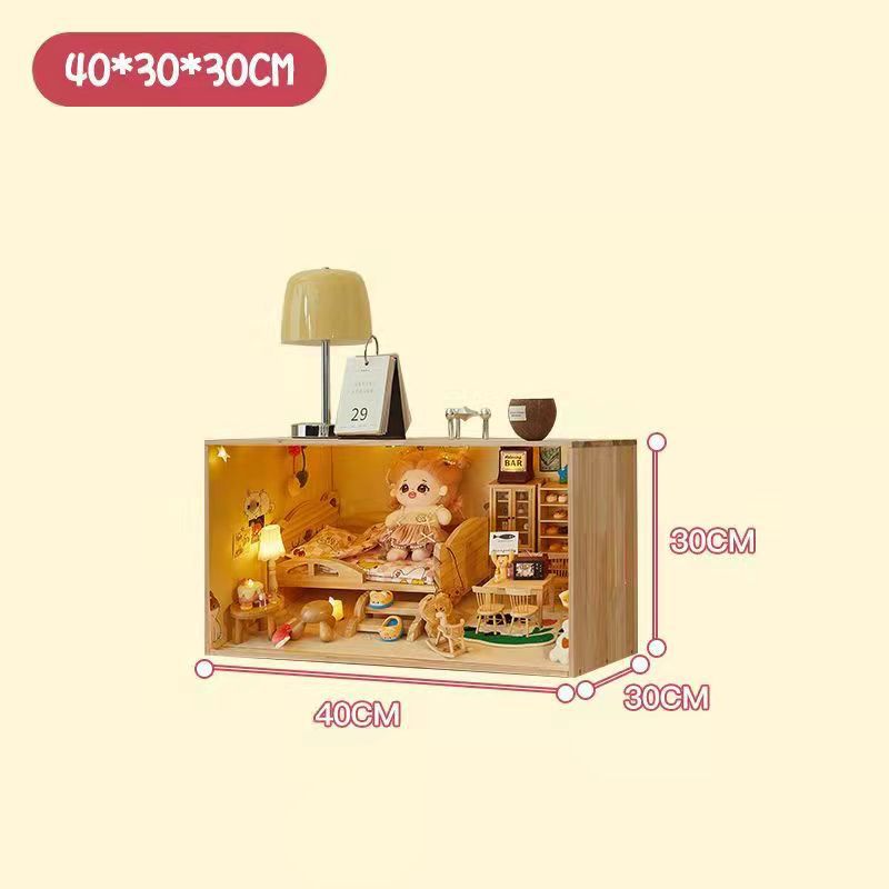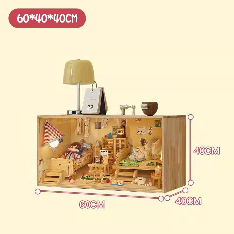 코튼 인형 집 나무 디스플레이 캐비닛 손으로 만든 diy 조경 상자 단단한 나무 집 놀이 집 미니어처 가구