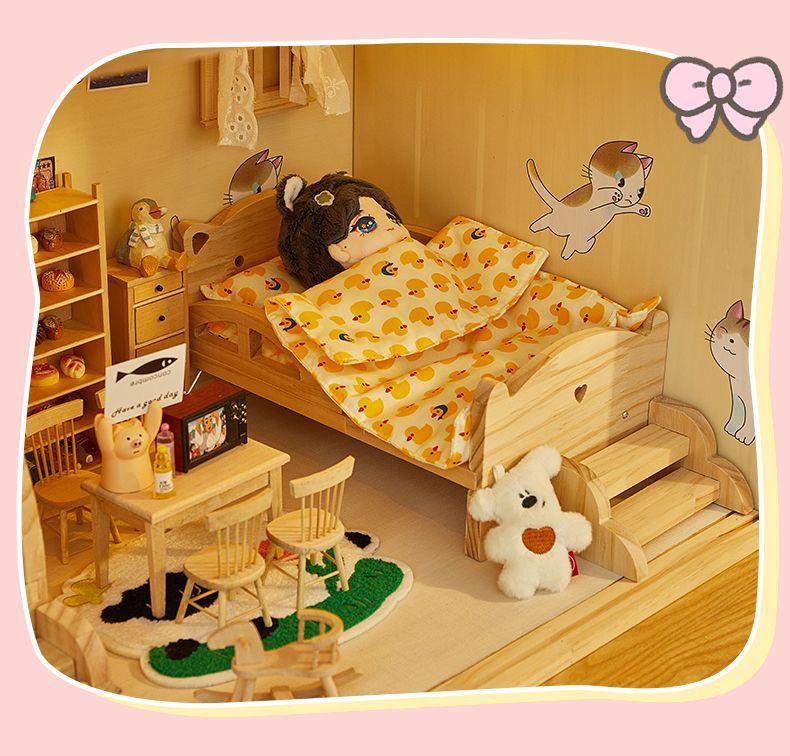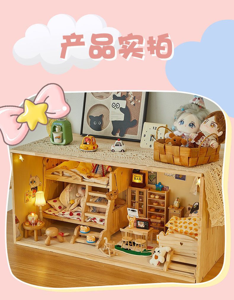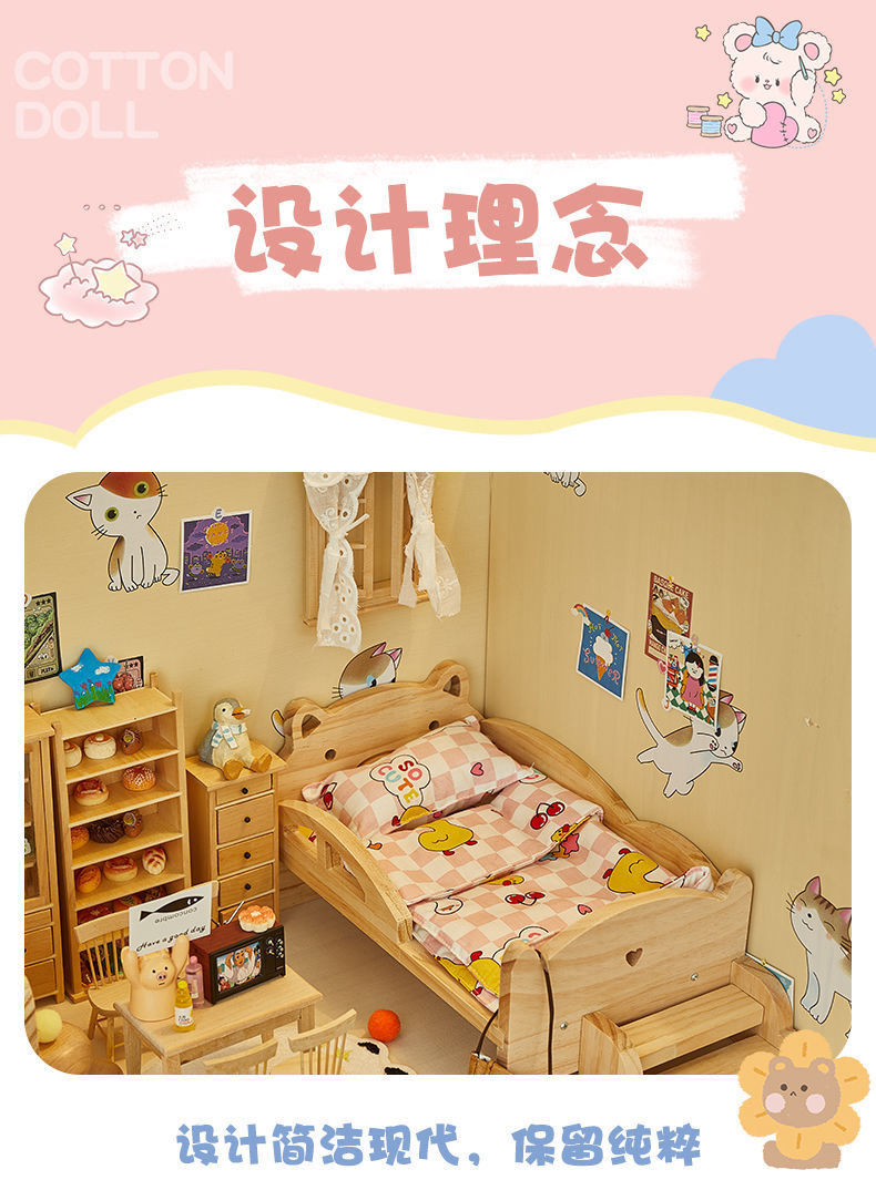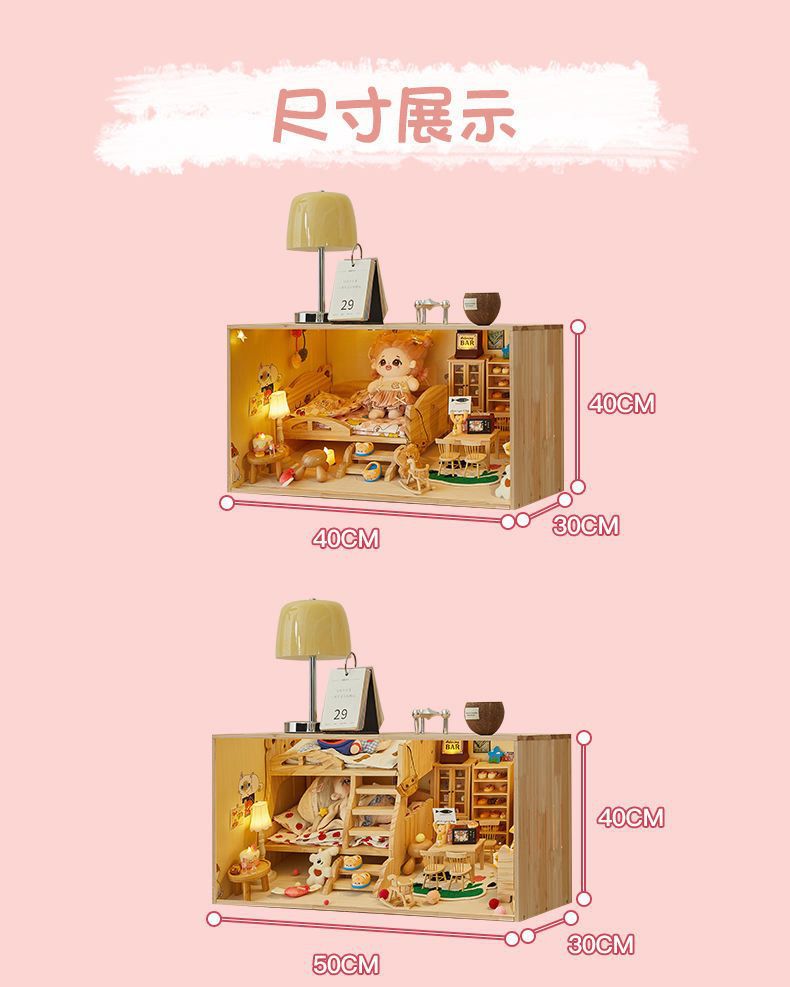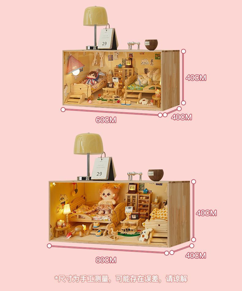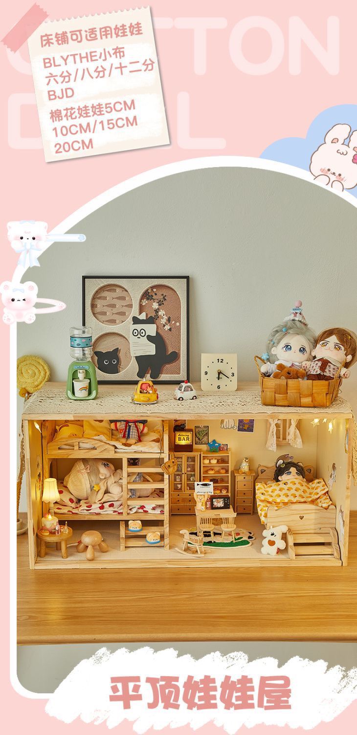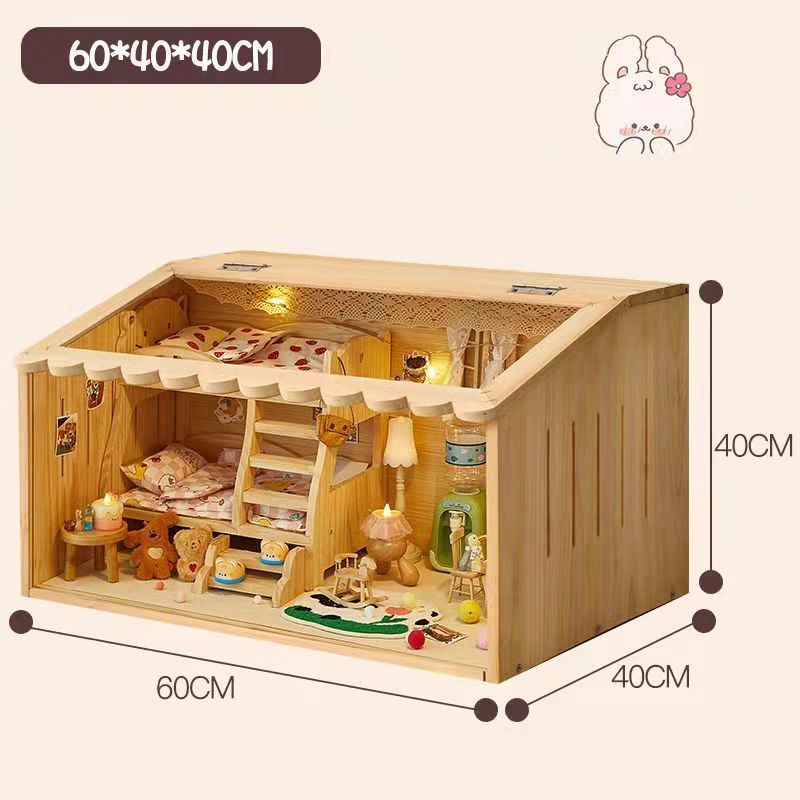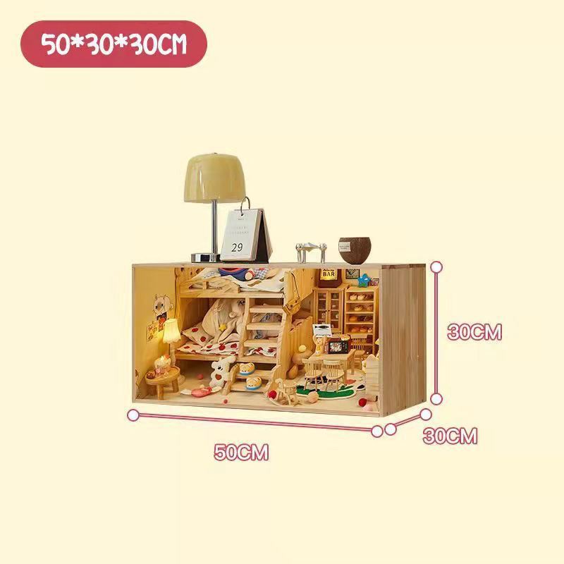 코튼 인형 집 나무 디스플레이 캐비닛 손으로 만든 diy 조경 상자 단단한 나무 집 놀이 집 미니어처 가구