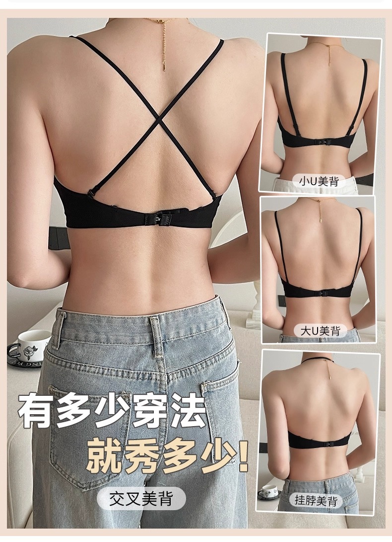 가슴이 작은 여성을 위한 여름 심리스 속옷, 푸쉬업, 아름다운 등, 크로스 홀터넥, 스파게티 스트랩, 보이지 않는 처짐 방지, 와이어 프리 브라