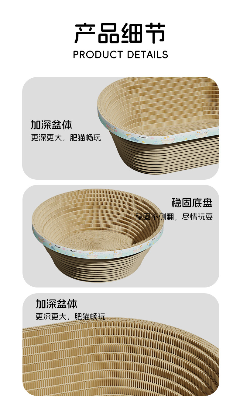 그릇형 고양이 스크래치 보드, 고양이 둥지, 초대형 비떨어지는 고양이 스크래치 그릇, 그릇형 원형 발톱 연삭 고양이 발톱 보드, 애완용 고양이 용품