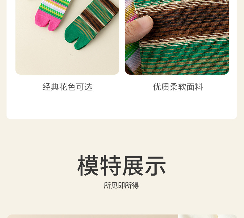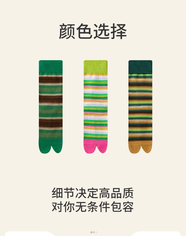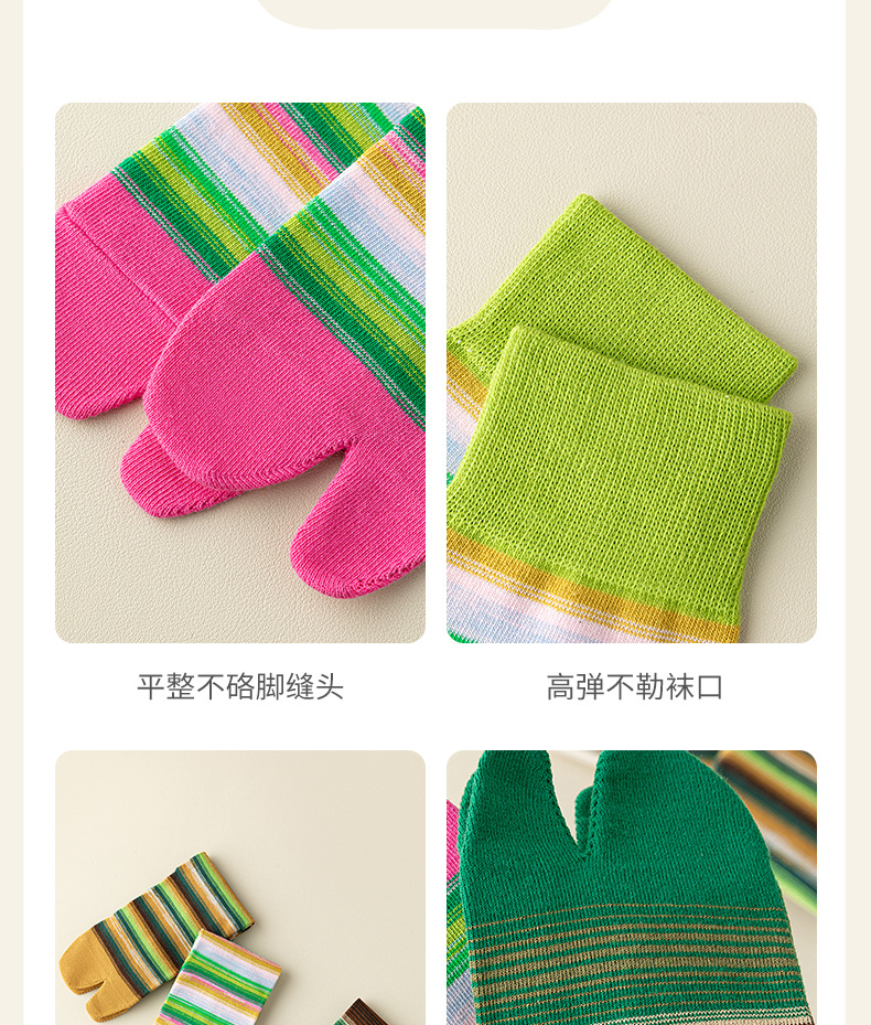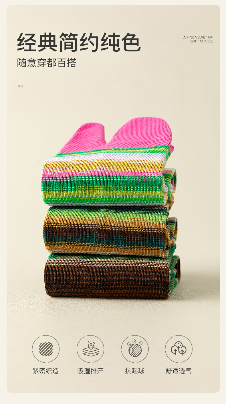 여성용 대비색 스트라이프 스플릿 발가락 양말, 일본식 귀여운 종아리 양말, 여성용 두 손가락 양말, 여성용 레인보우 그린 포레스트 양말스토어 가기