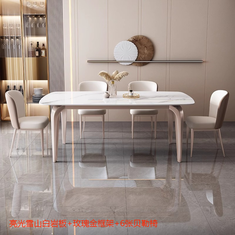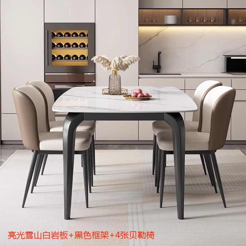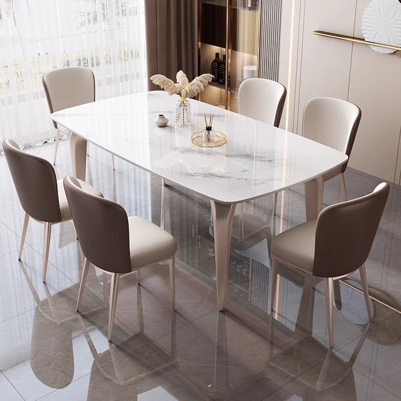 스톤 슬레이트 식탁과 의자 조합 새로운 스타일의 가정용 소형 아파트 현대적인 간단한 서양식 식탁 이탈리아 스타일의 가벼운 럭셔리 직사각형 식탁
