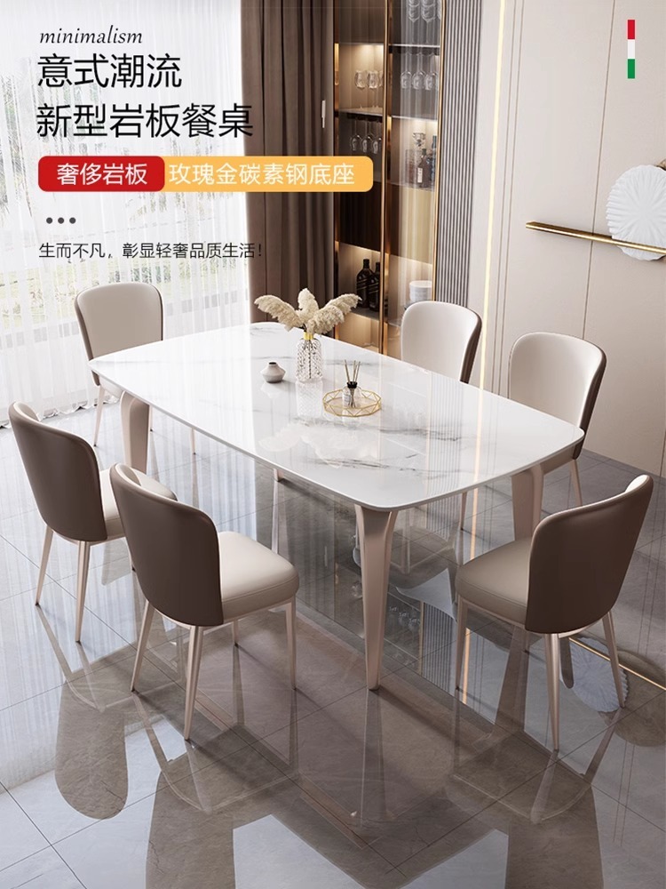 스톤 슬레이트 식탁과 의자 조합 새로운 스타일의 가정용 소형 아파트 현대적인 간단한 서양식 식탁 이탈리아 스타일의 가벼운 럭셔리 직사각형 식탁스토어 가기