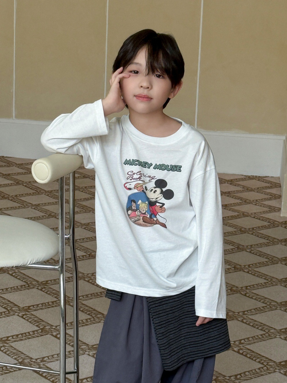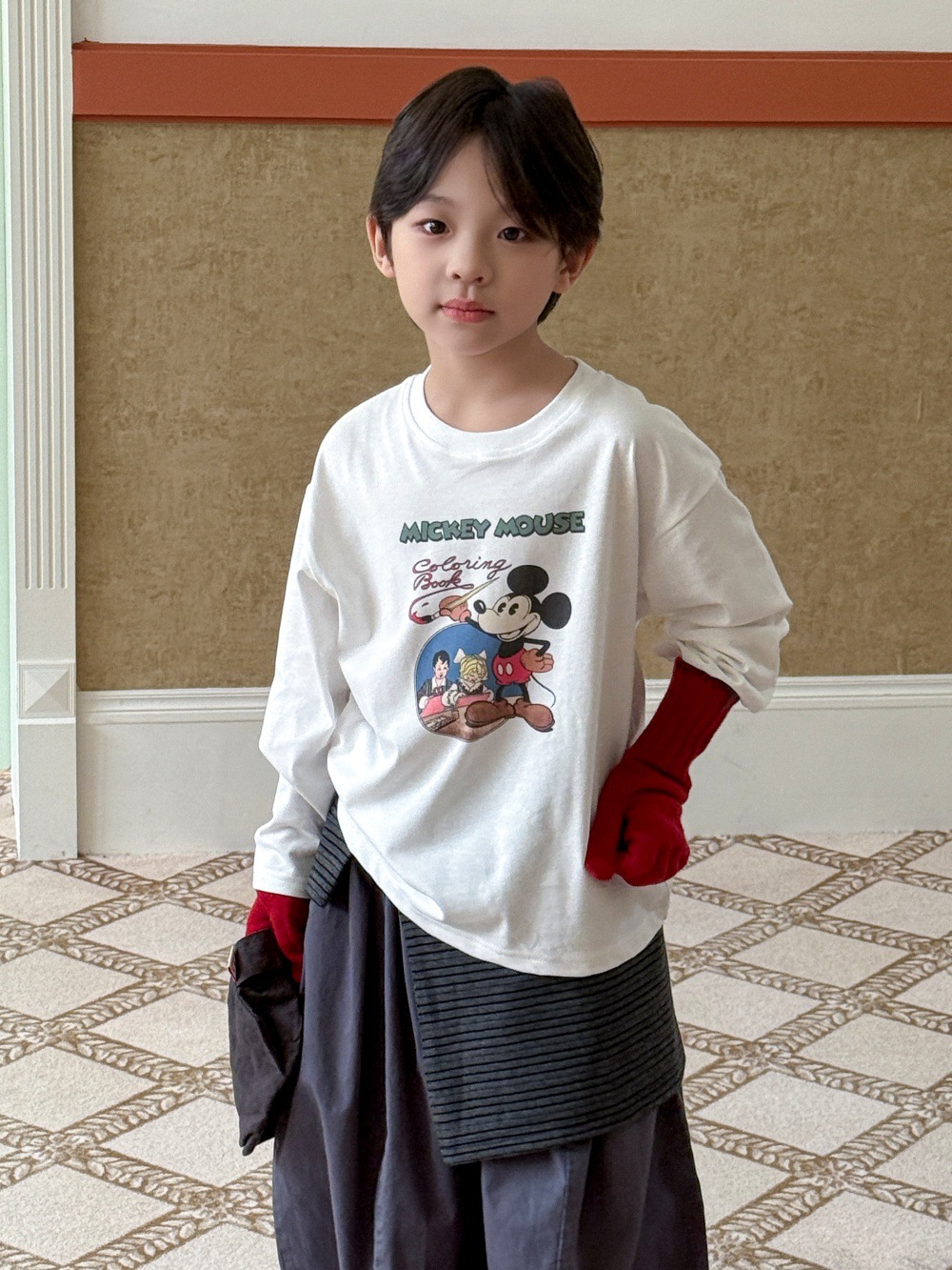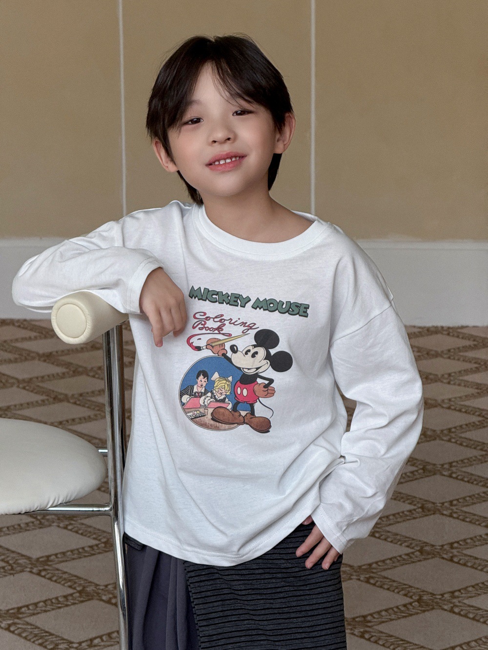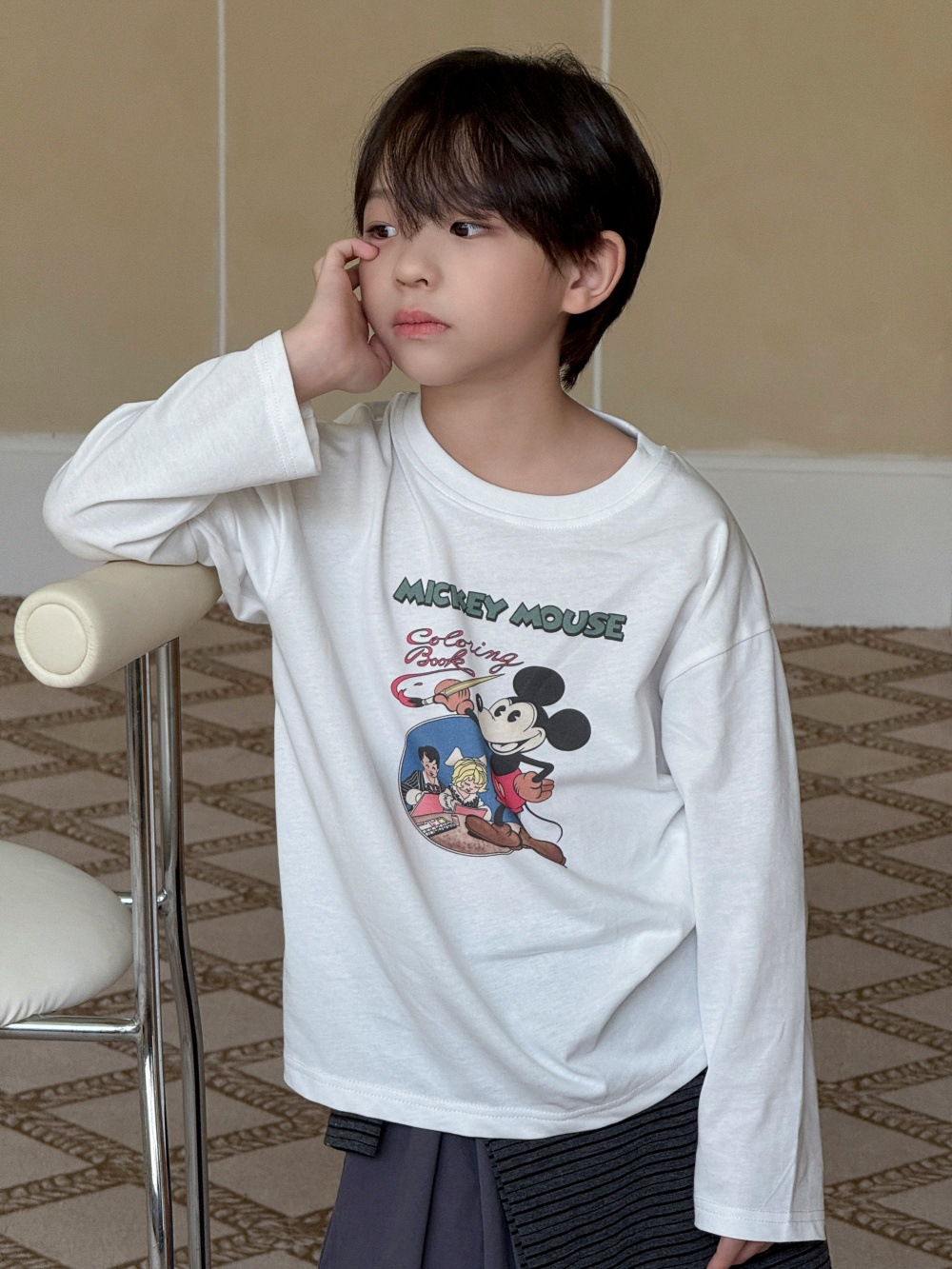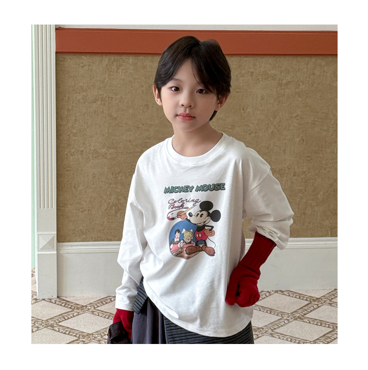 치즈와 야옹 아동 의류 소년 긴팔 T2025 가을 새로운 순수 코튼 미키 만화 프린트 바닥 셔츠 유행 어린이스토어 가기