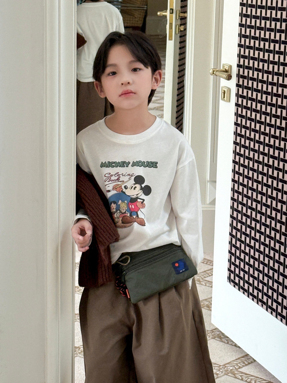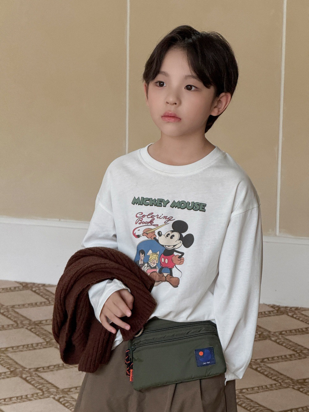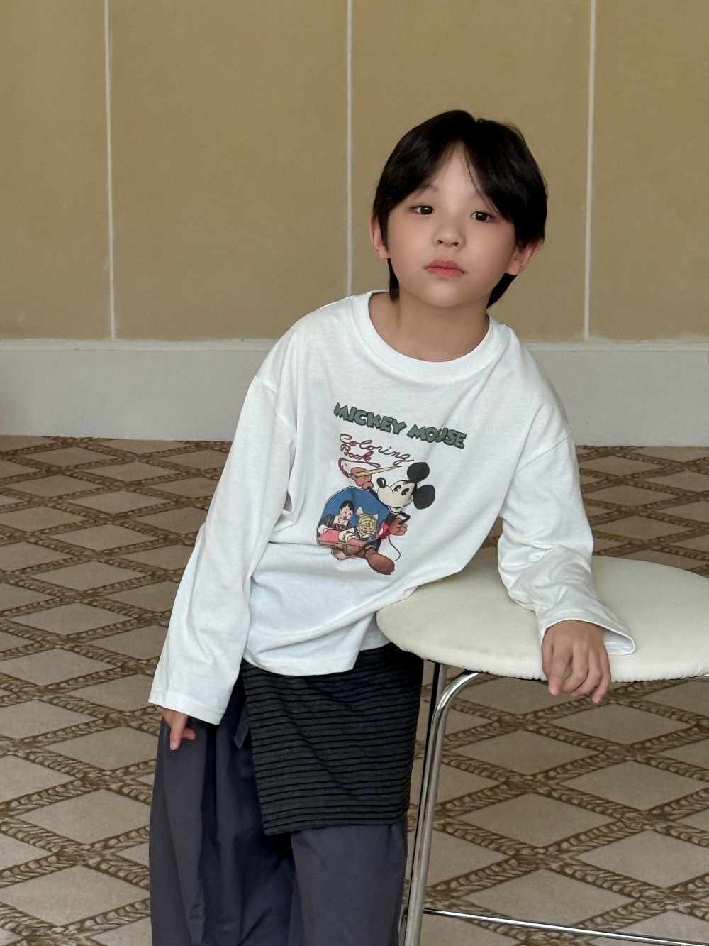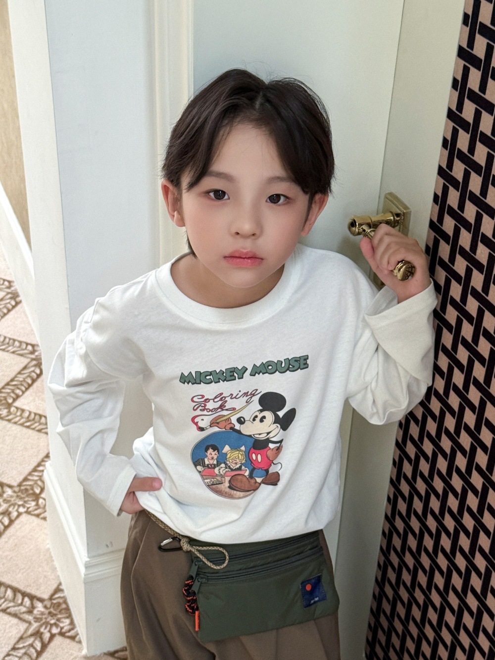 치즈와 야옹 아동 의류 소년 긴팔 T2025 가을 새로운 순수 코튼 미키 만화 프린트 바닥 셔츠 유행 어린이스토어 가기