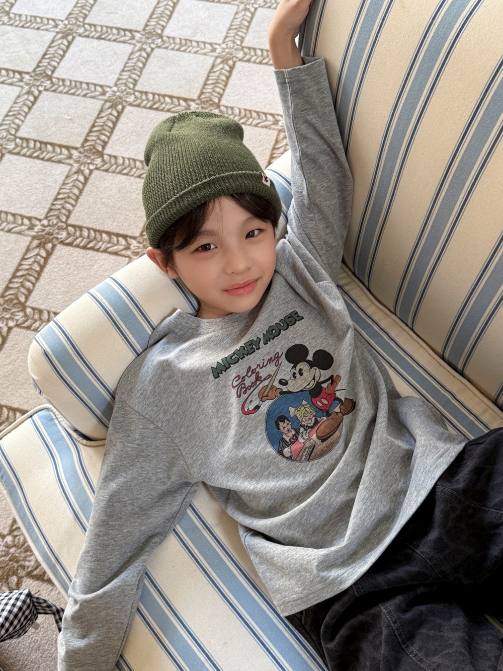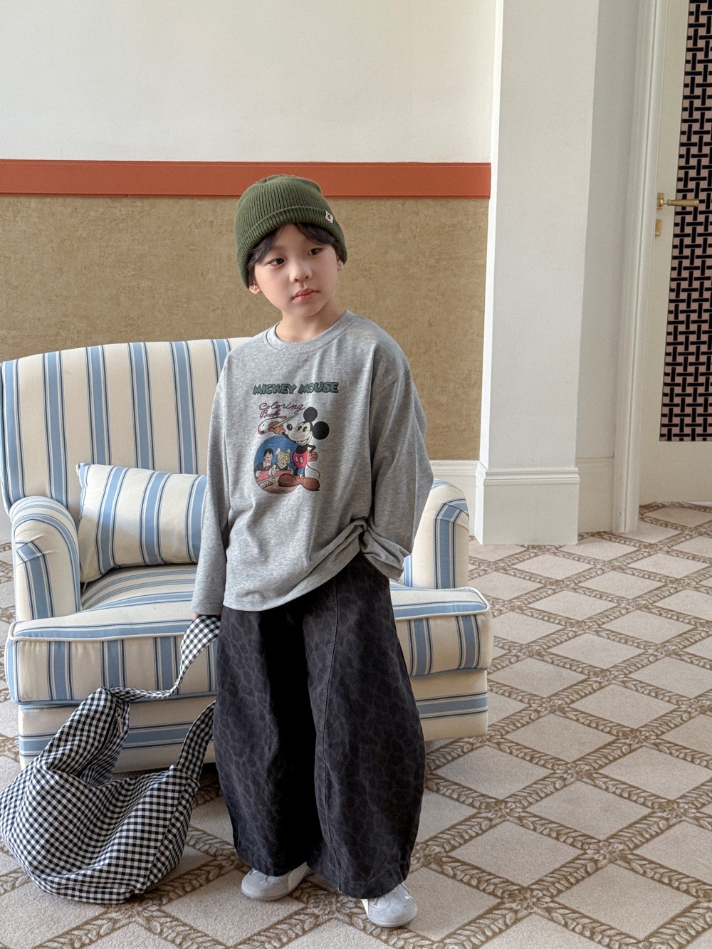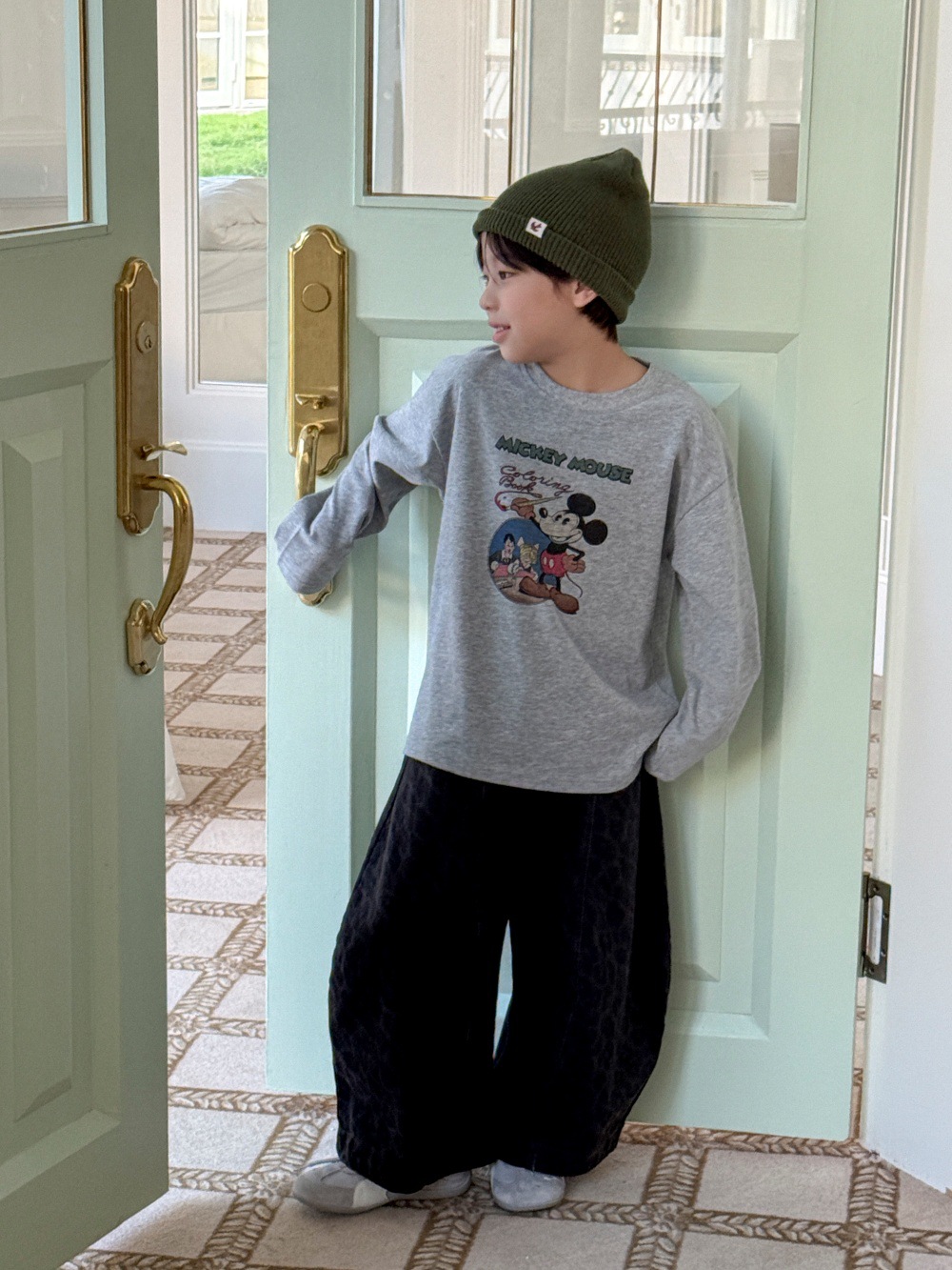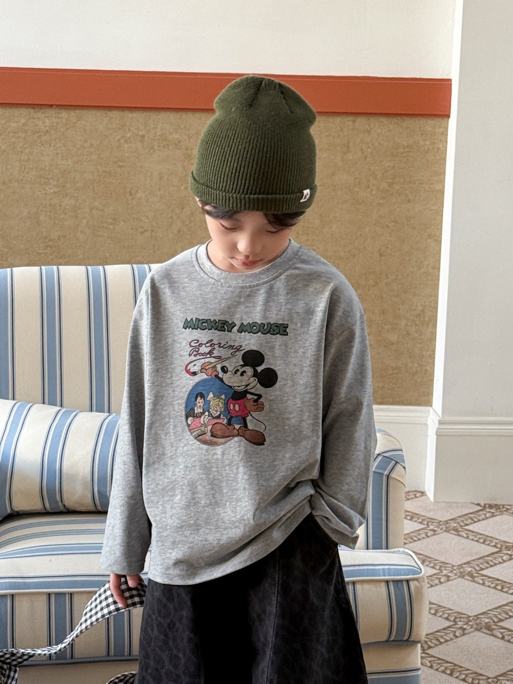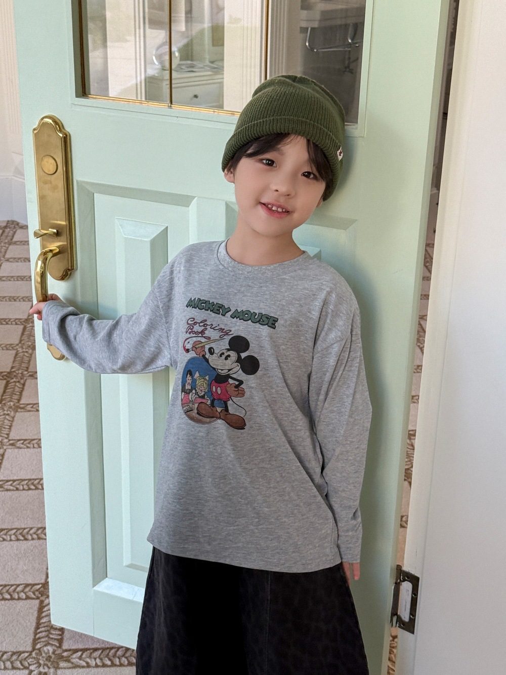 치즈와 야옹 아동 의류 소년 긴팔 T2025 가을 새로운 순수 코튼 미키 만화 프린트 바닥 셔츠 유행 어린이스토어 가기