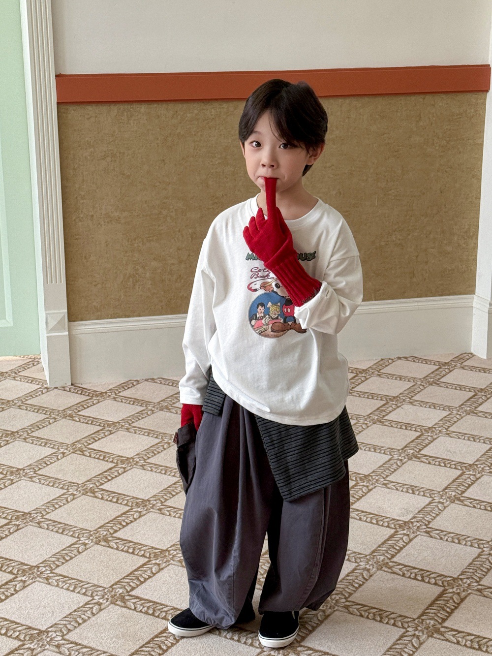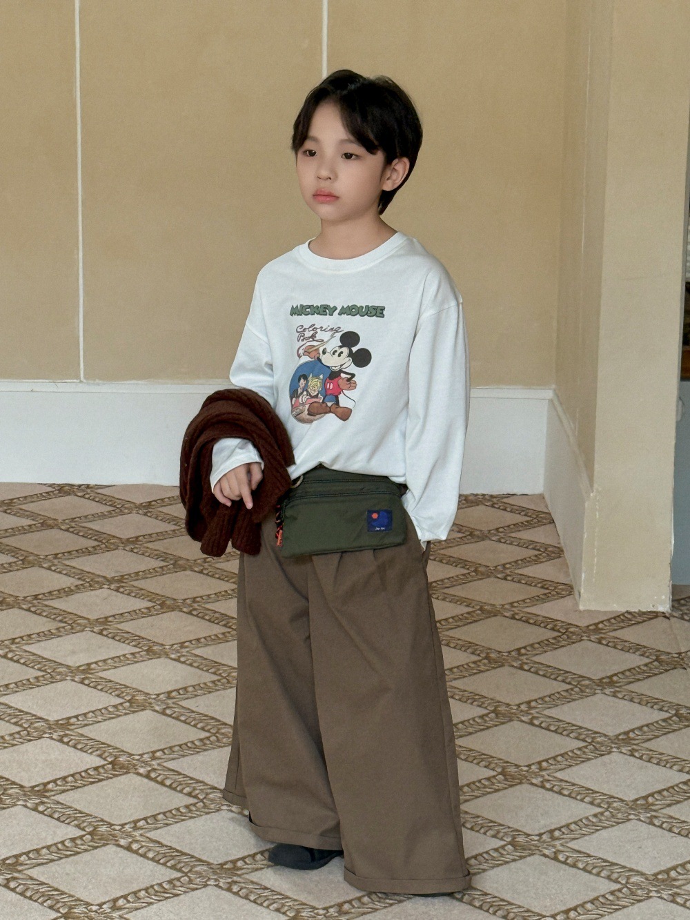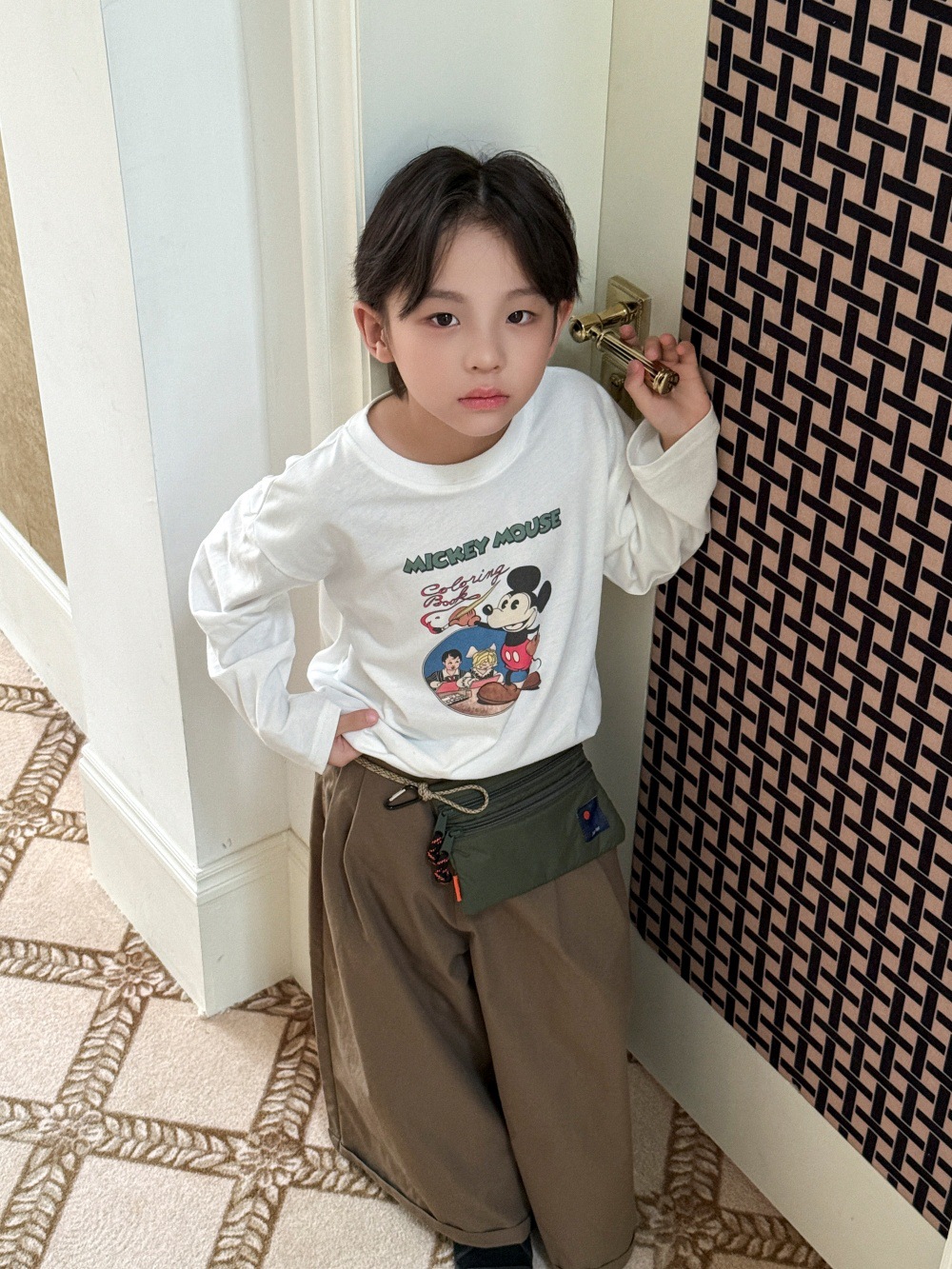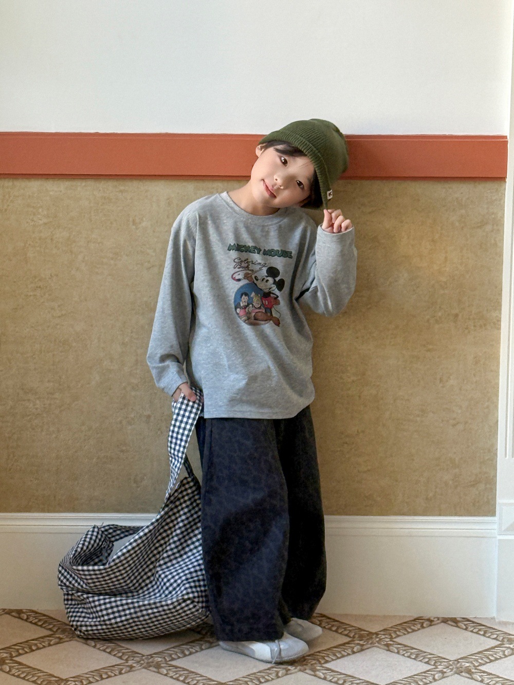 치즈와 야옹 아동 의류 소년 긴팔 T2025 가을 새로운 순수 코튼 미키 만화 프린트 바닥 셔츠 유행 어린이스토어 가기