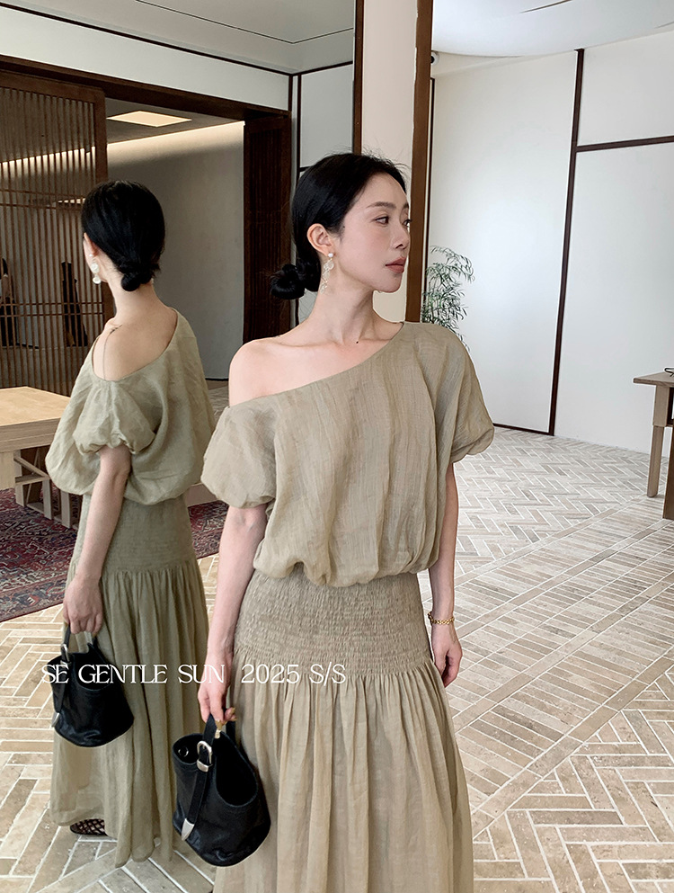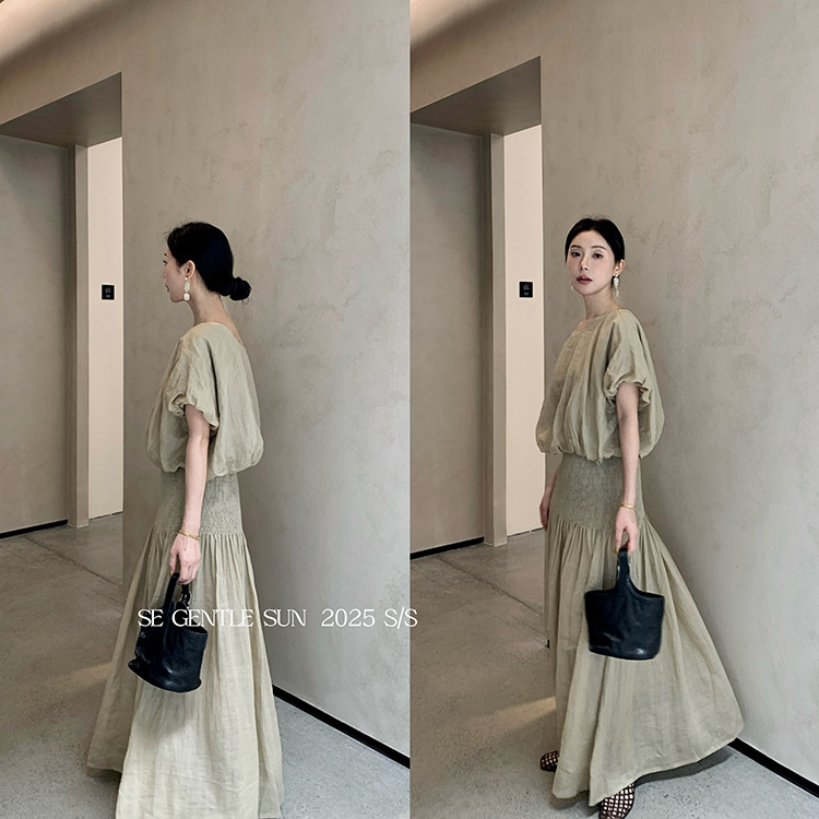 [특별혜택 환불불가] 슈이시 라미탑+하이웨이스트 A라인 스커트 여성 투피스슈트 89392