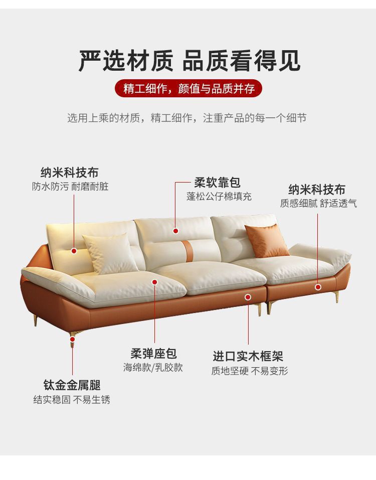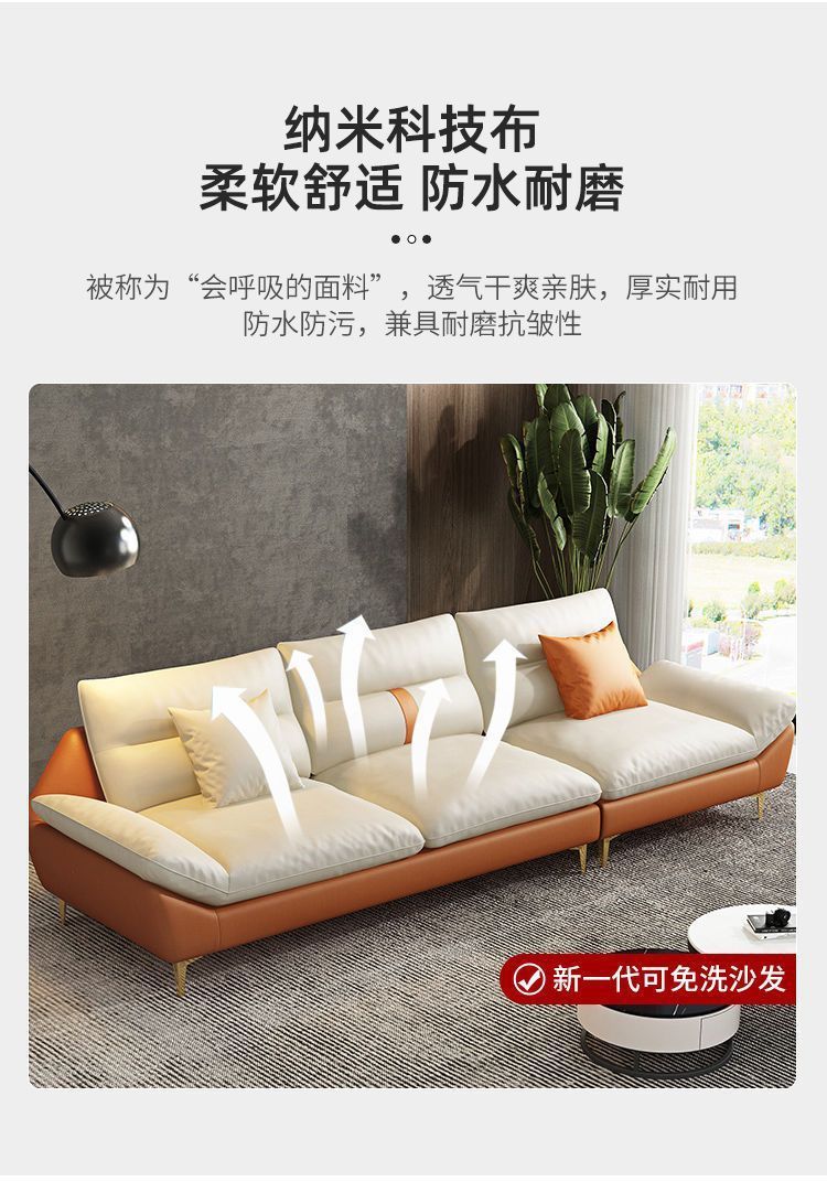 이탈리안 라이트 럭셔리 테크놀로지 패브릭 소파 거실 작은 아파트 북유럽 모던 심플 스트레이트 3인용 노워시 편안함