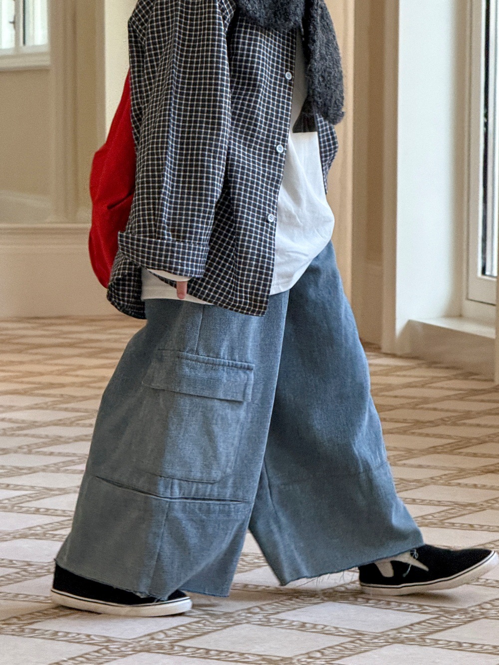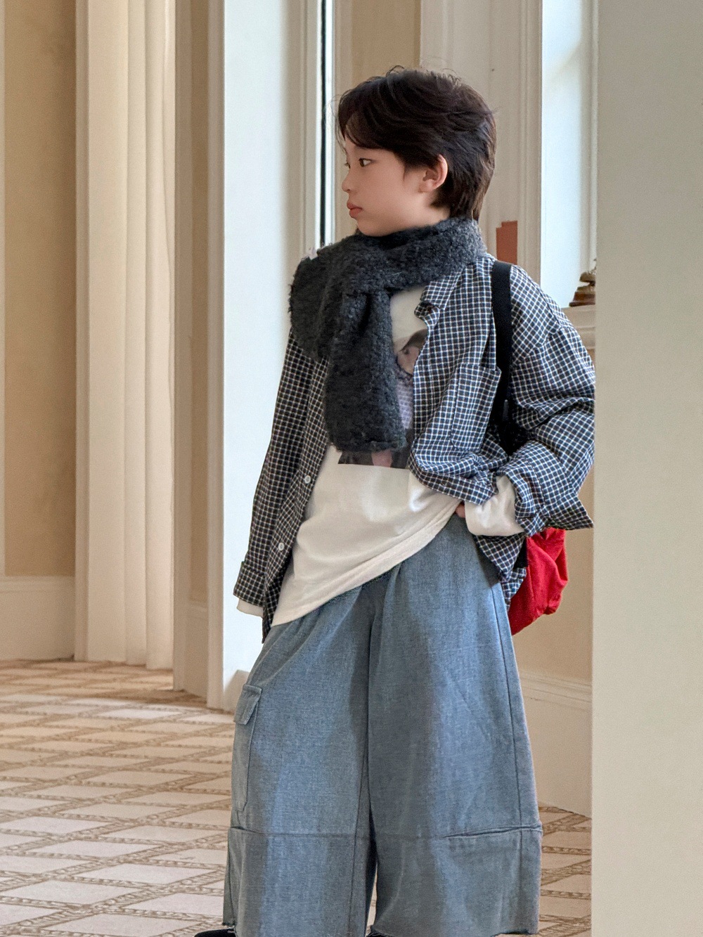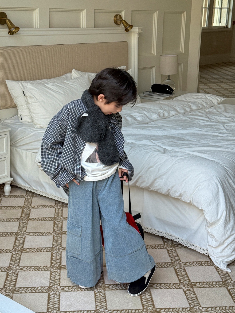치즈와 고양이 아동복 소년 청바지 2025 가을 새로운 사이드 포켓 디자인 아동 작업복 바지 유행 어린이스토어 가기