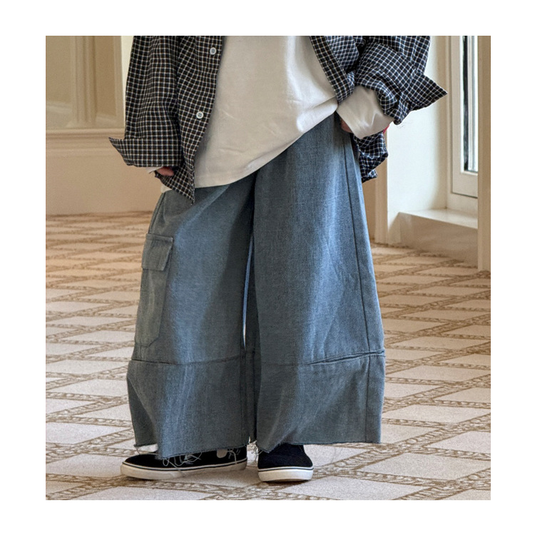 치즈와 고양이 아동복 소년 청바지 2025 가을 새로운 사이드 포켓 디자인 아동 작업복 바지 유행 어린이