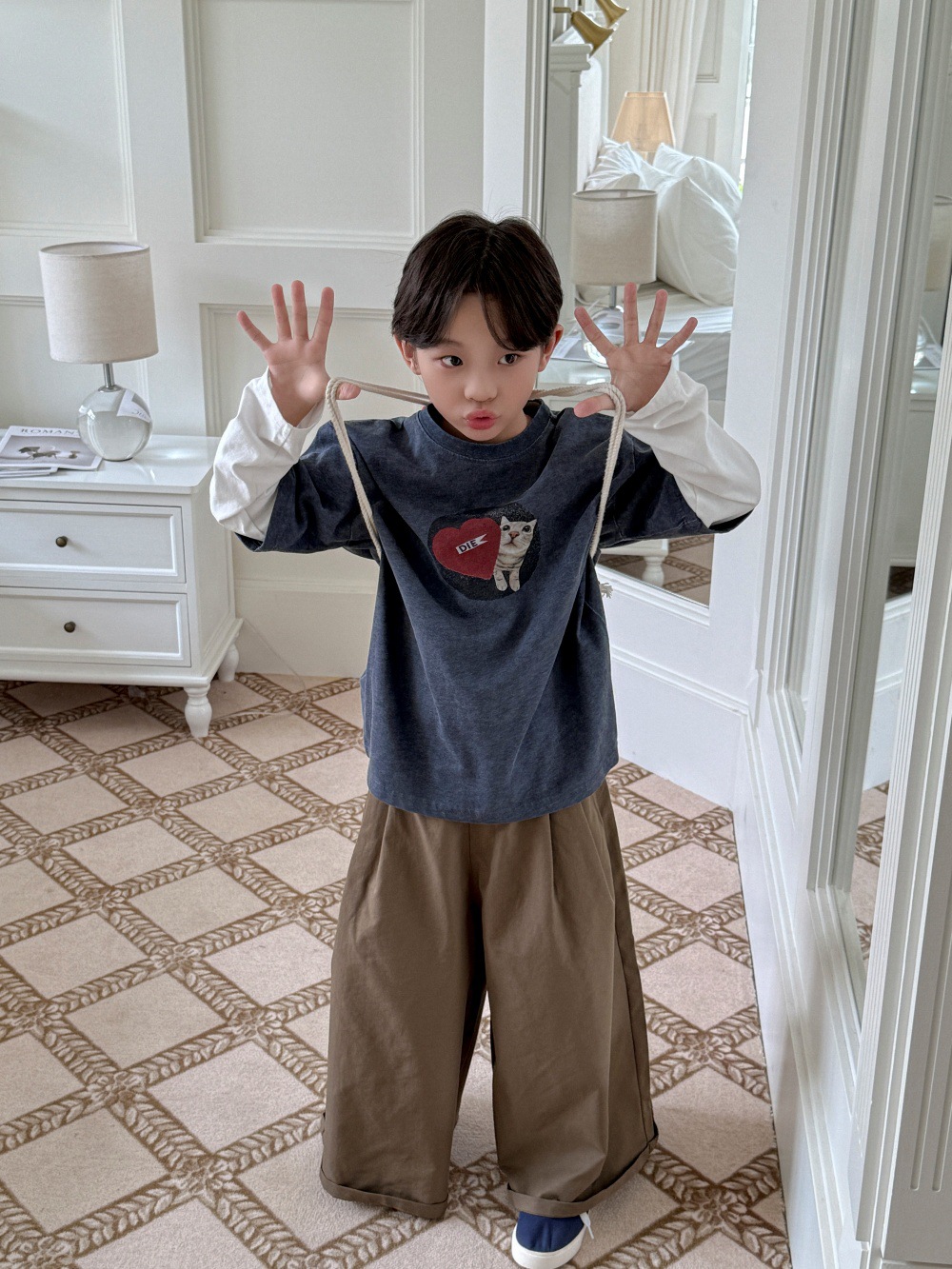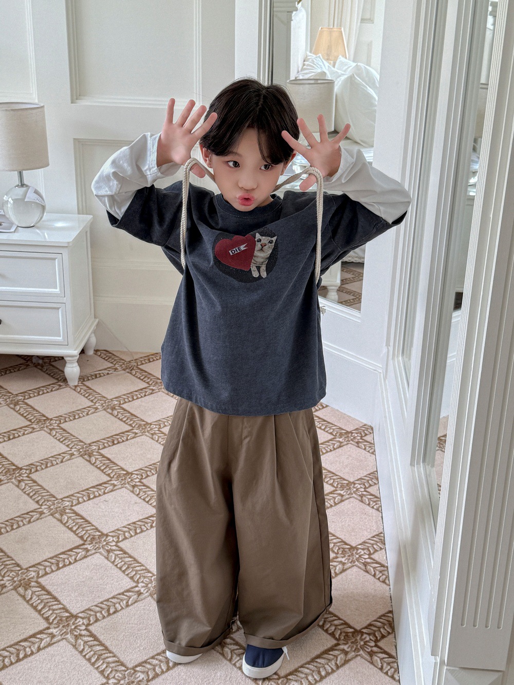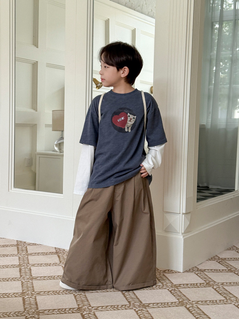 치즈와 고양이 아동복 남아 바지 2025 가을 신상 한국 스타일 와이드 팬츠 루즈핏 캐주얼 롱팬츠 트렌디한 아동복스토어 가기