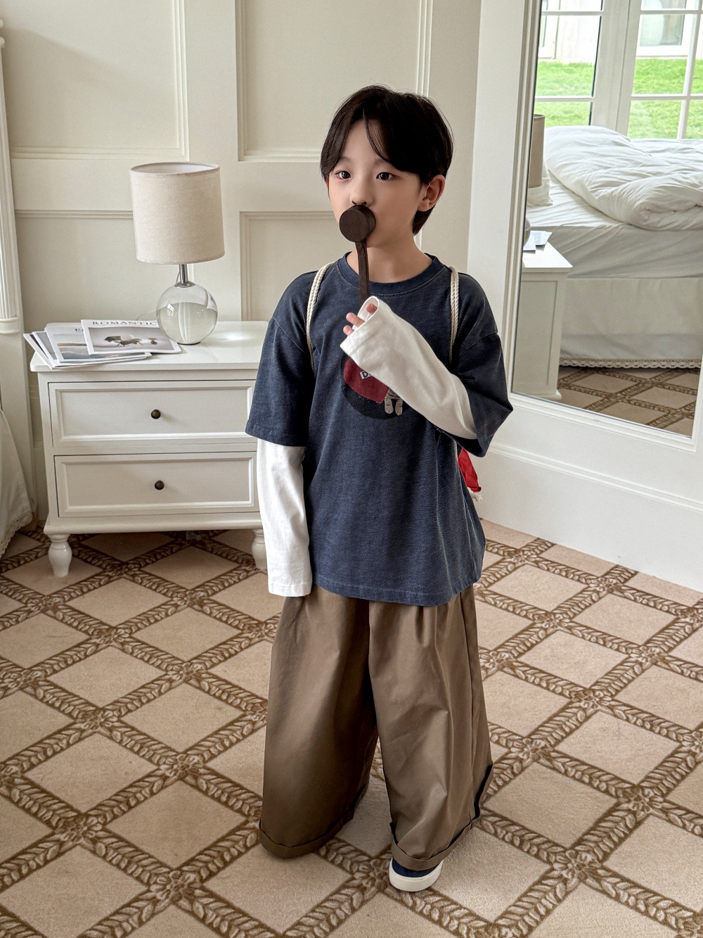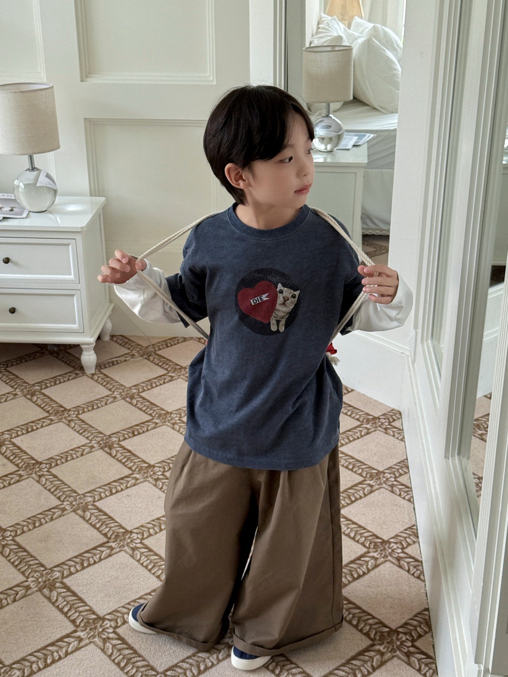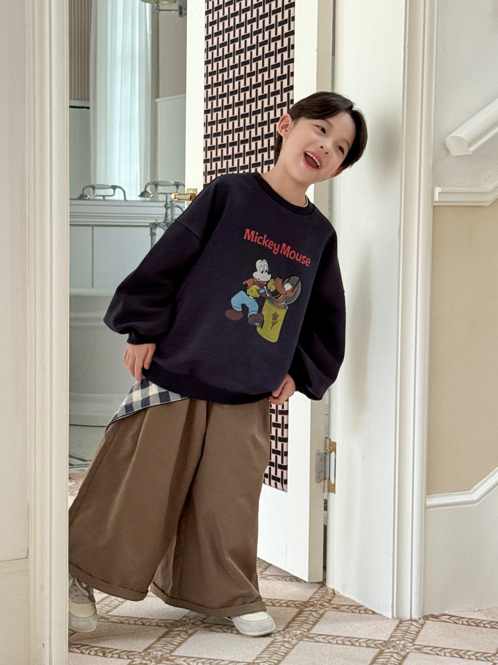 치즈와 고양이 아동복 남아 바지 2025 가을 신상 한국 스타일 와이드 팬츠 루즈핏 캐주얼 롱팬츠 트렌디한 아동복스토어 가기