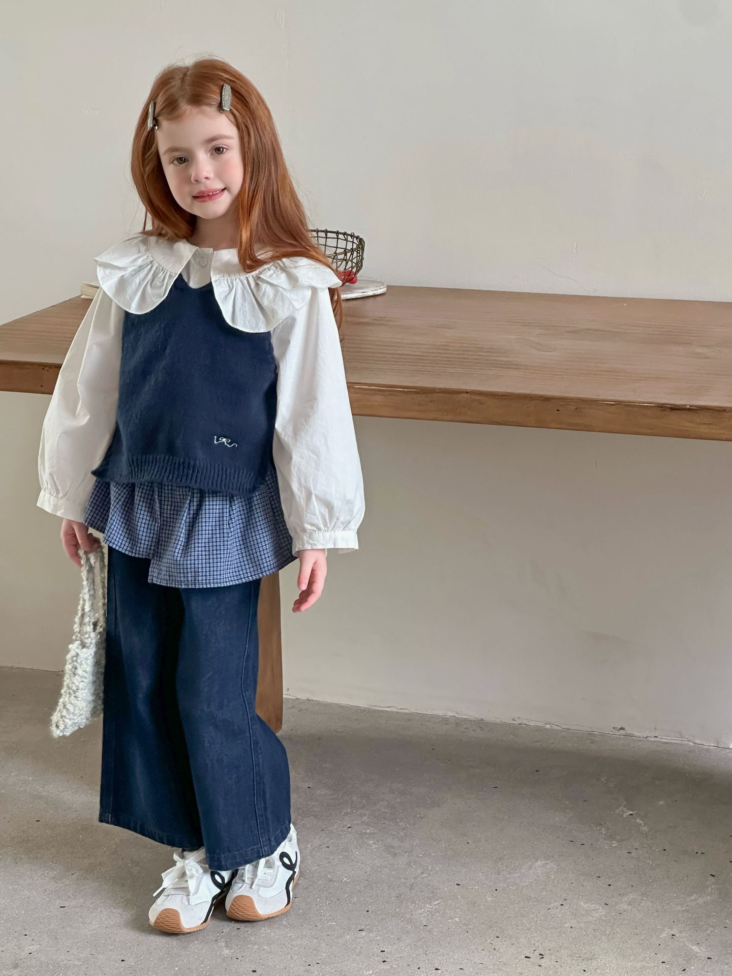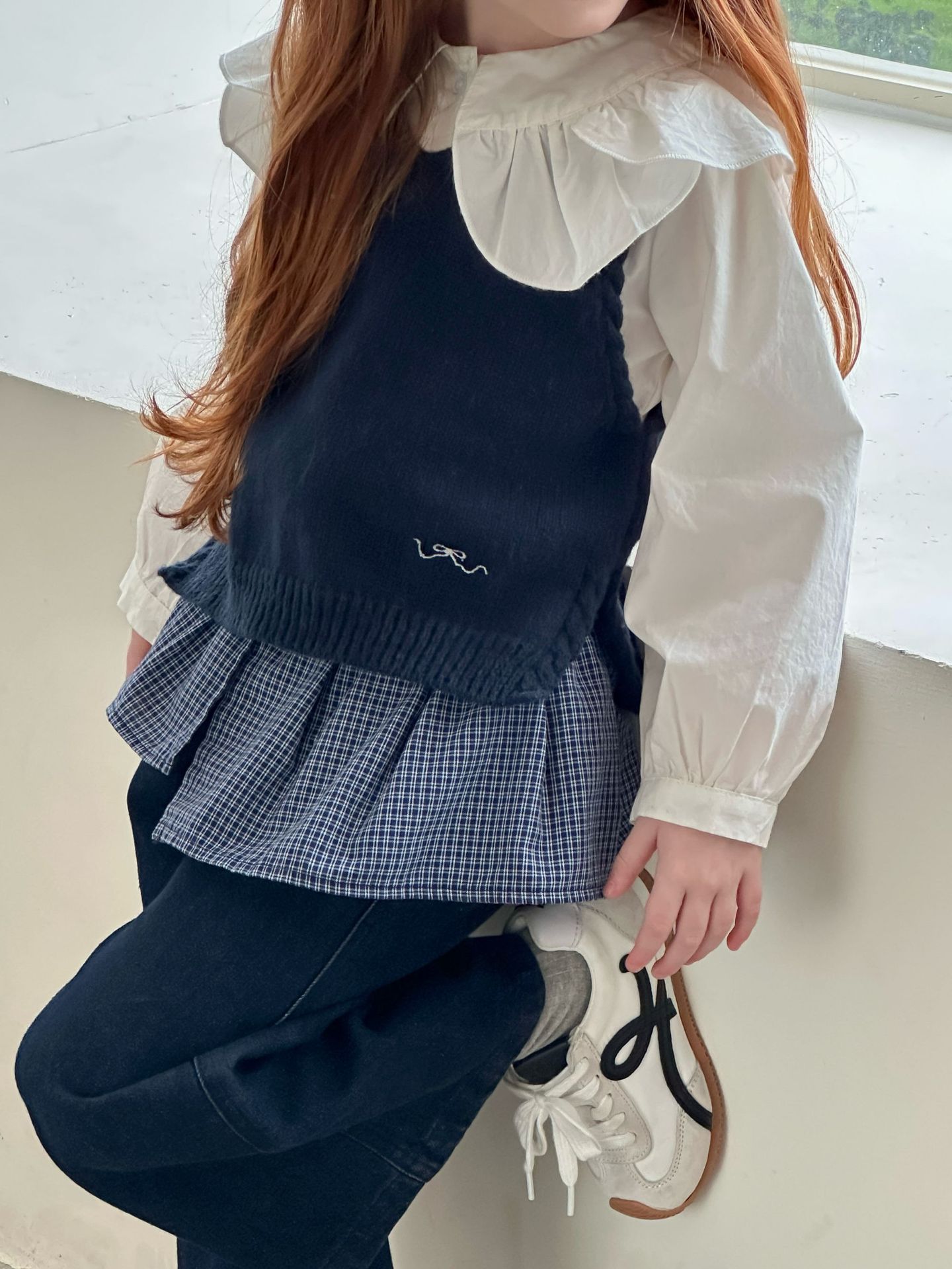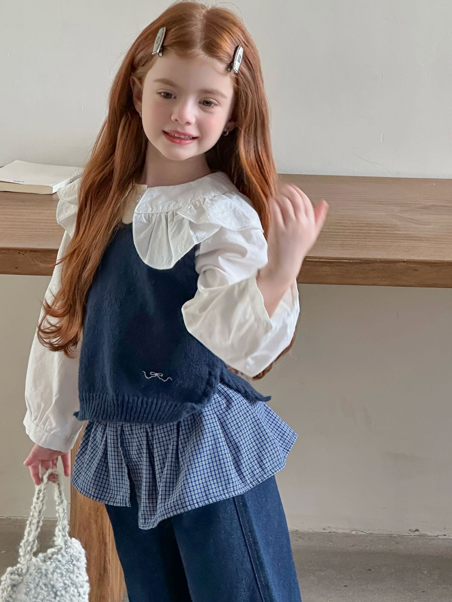 아동 의류 소녀 니트 조끼 가을 새로운 자수 레이스 레이어링 한국 스타일 조끼 아기 풀오버 탑 유행스토어 가기