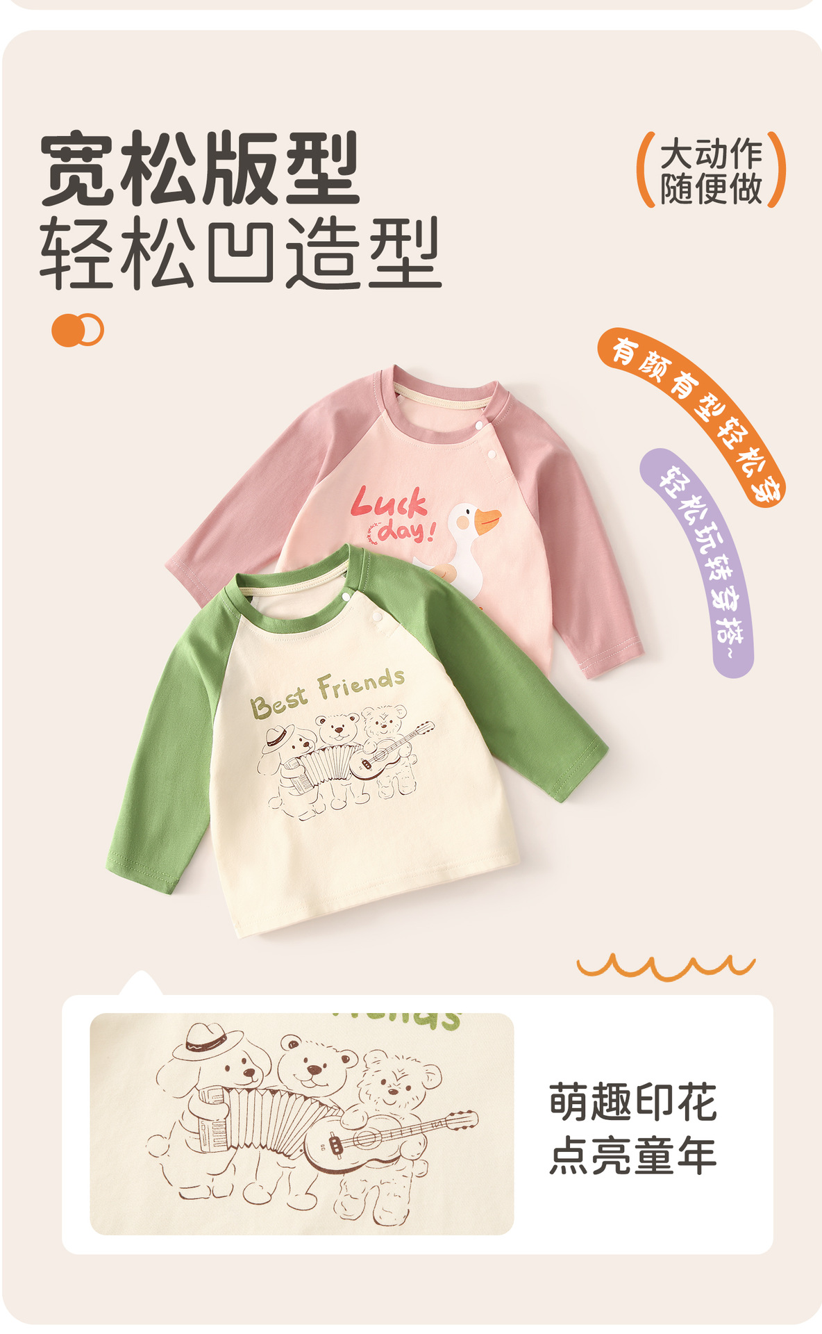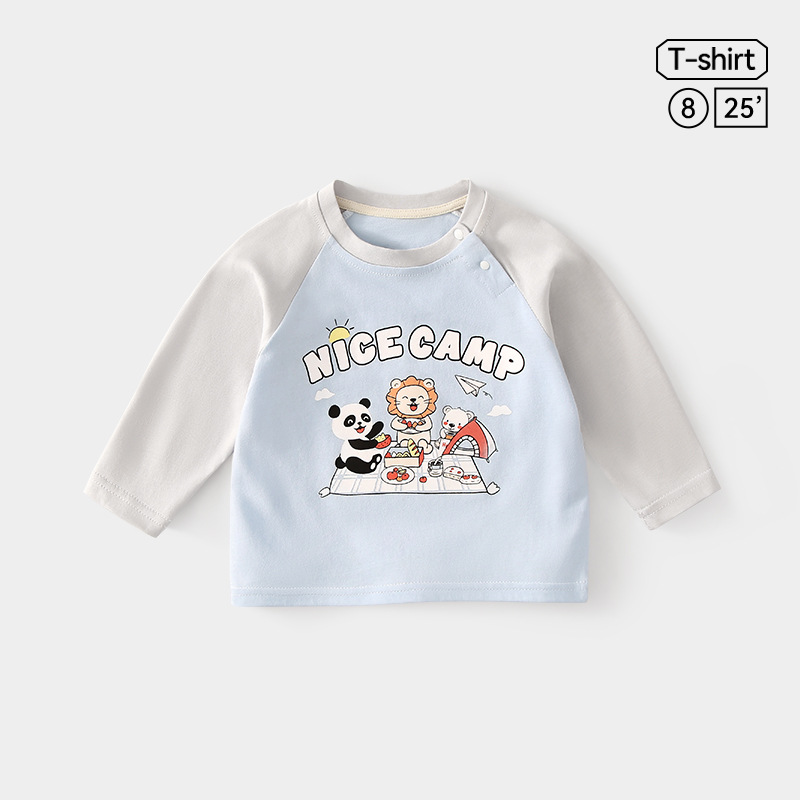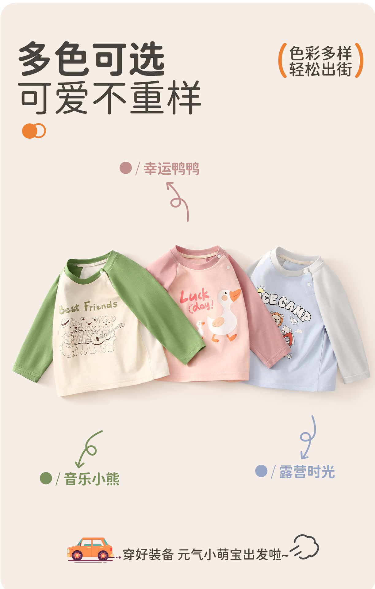 가을 카테고리 A 아기 순면 아기 옷, 아동 캐주얼 나들이 긴팔 남아용 티셔츠, 귀여운 만화 동물스토어 가기