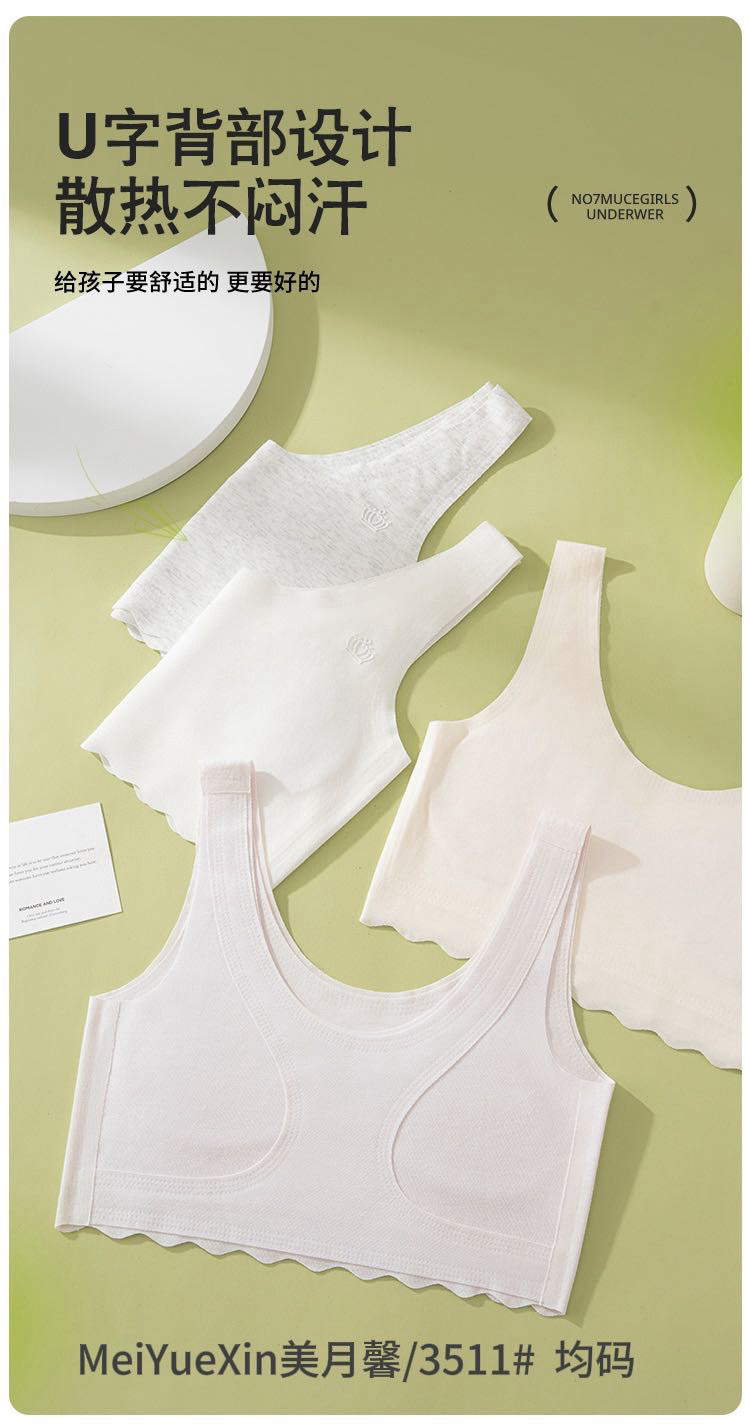 여성용 발달기 심리스 속옷, 중학생 고정컵 스포츠 충격 방지 조끼, 소녀용 편안한 브라, Meiyuexin 3511
