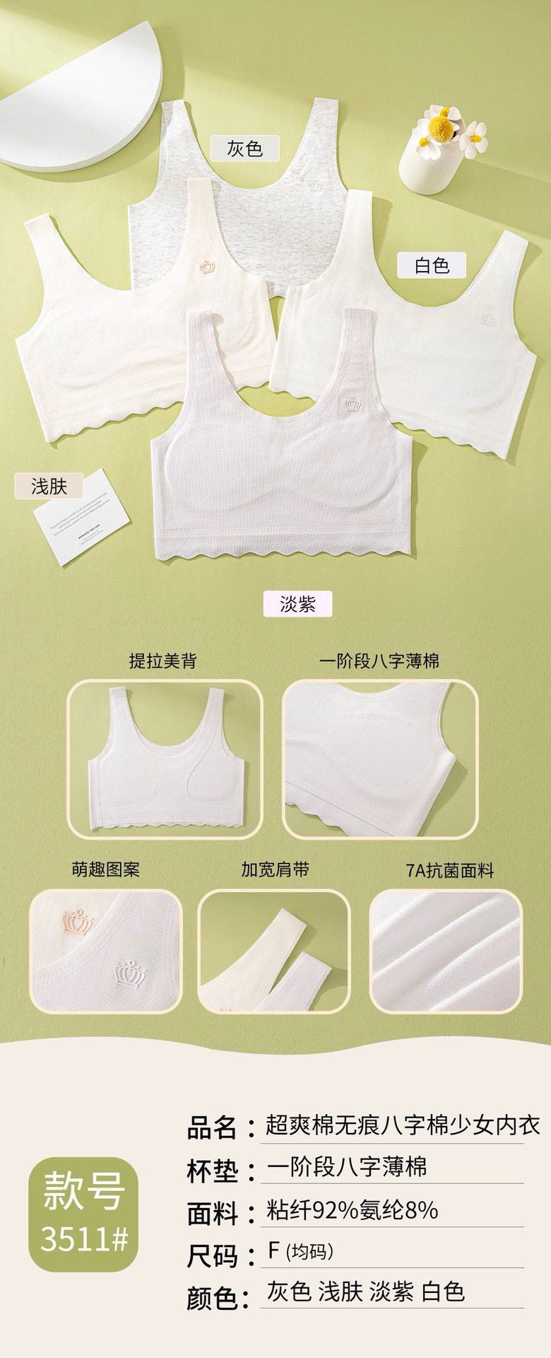 여성용 발달기 심리스 속옷, 중학생 고정컵 스포츠 충격 방지 조끼, 소녀용 편안한 브라, Meiyuexin 3511스토어 가기