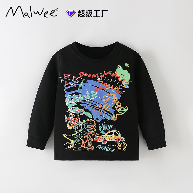 국경 간 malwee 소년상의 가을, 겨울 새로운 유럽과 미국 어린이 라운드 넥 긴팔 풀오버 유행 아동 티셔츠상의스토어 가기