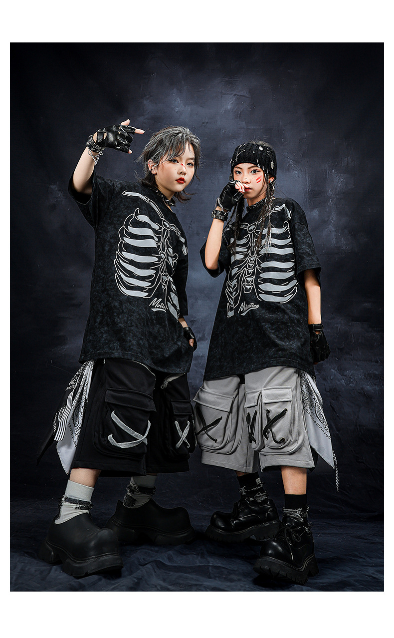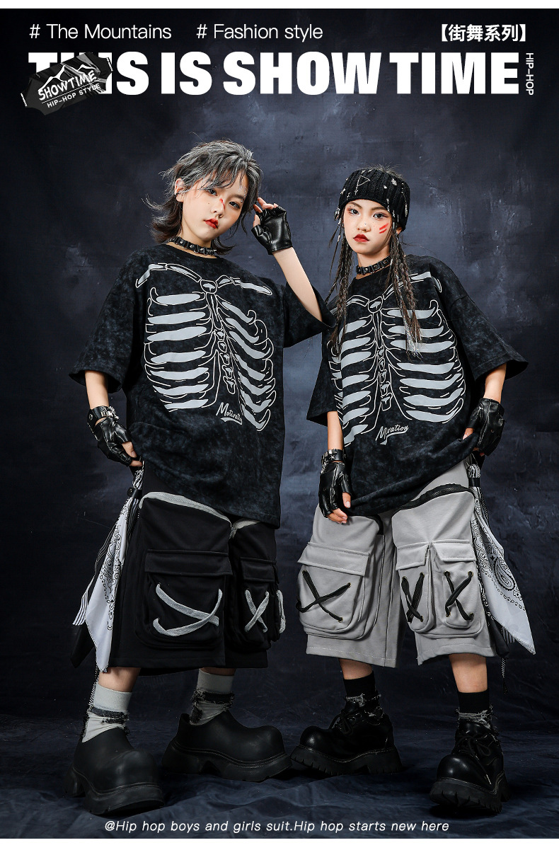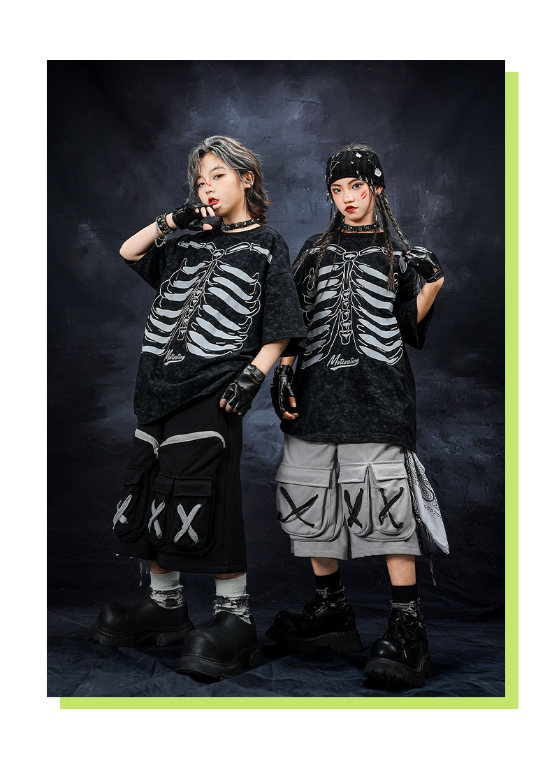 스트리트 댄스 아동 트렌디 의류 힙합 소년 검은 갈비뼈 반팔 퍼포먼스 슈트 힙합 소녀 패션쇼 트렌디 의류스토어 가기