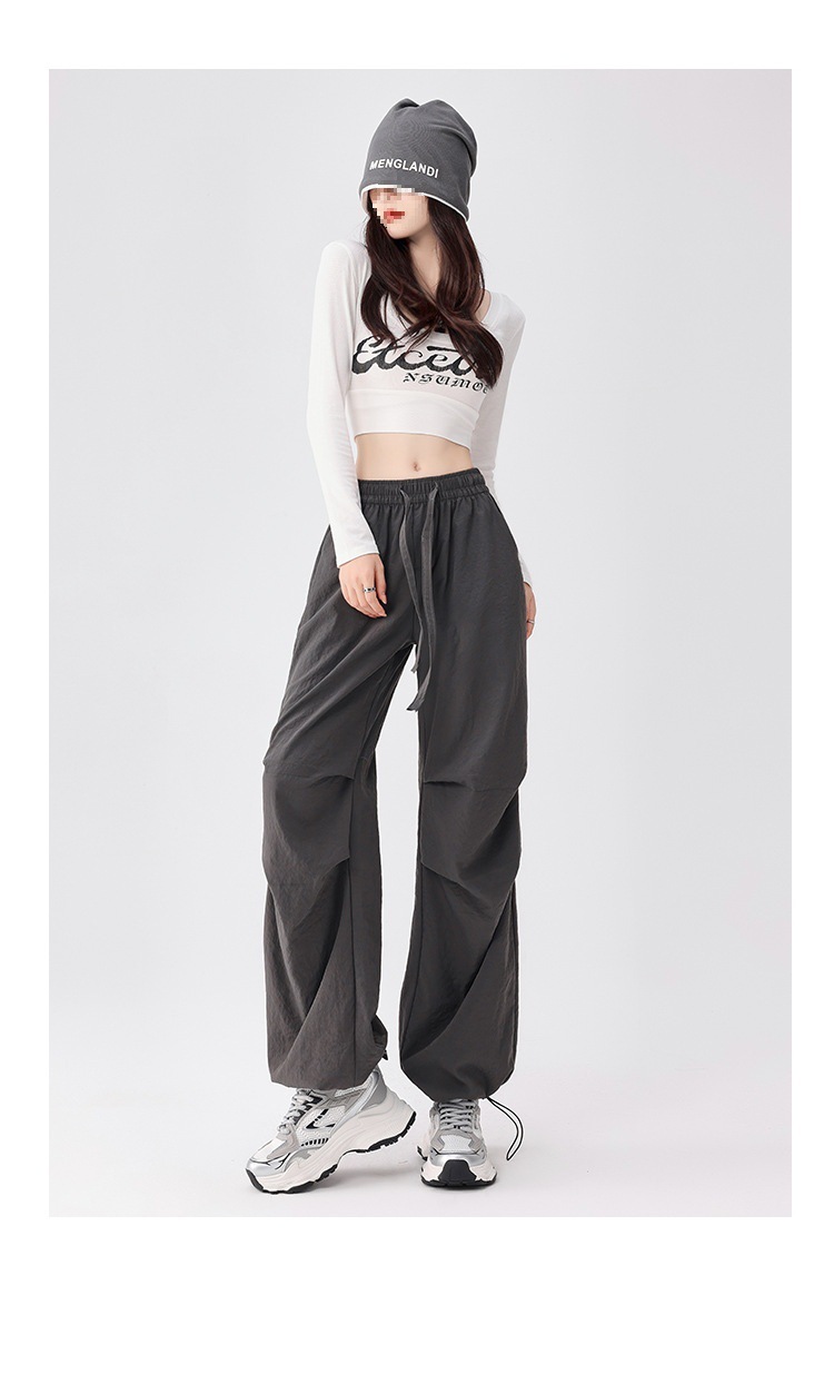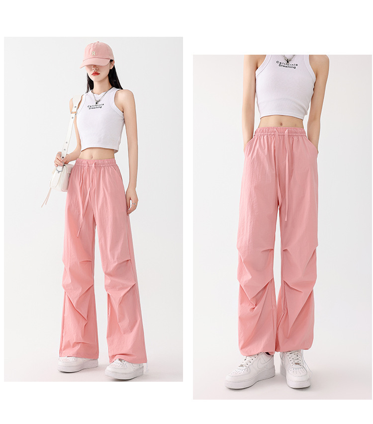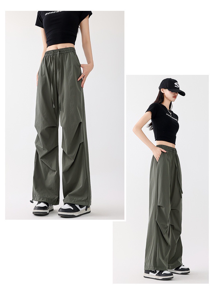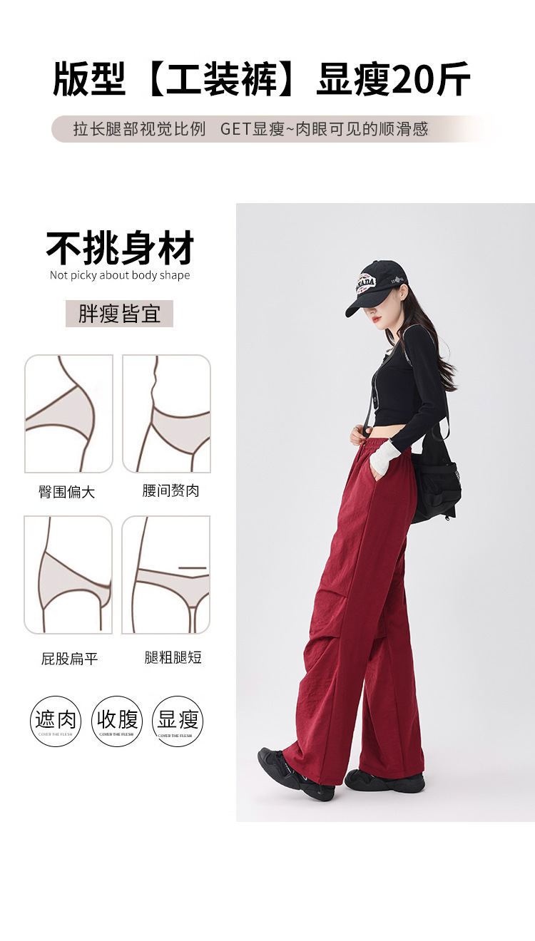 여성용 속건성 작업복 새로운 스타일 2025 새로운 여름 충전 소형 하이 웨이스트 등산 와이드 레그 팬츠 드롭 배송스토어 가기