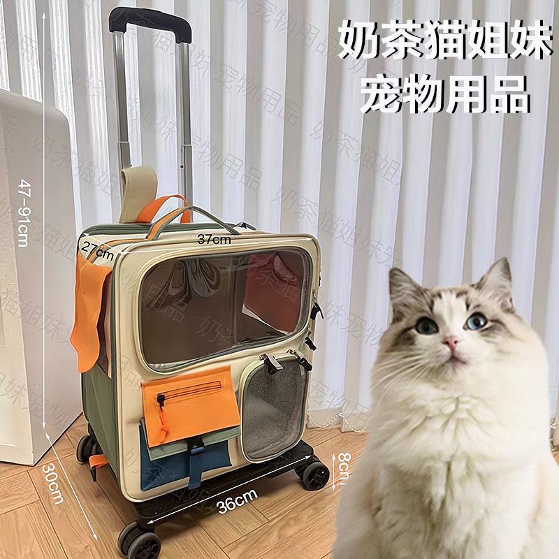고양이 가방 대용량 휴대용 애완 동물 트롤리 상자 투명 우주 캡슐 통기성 휴대용 배낭 개 가방스토어 가기