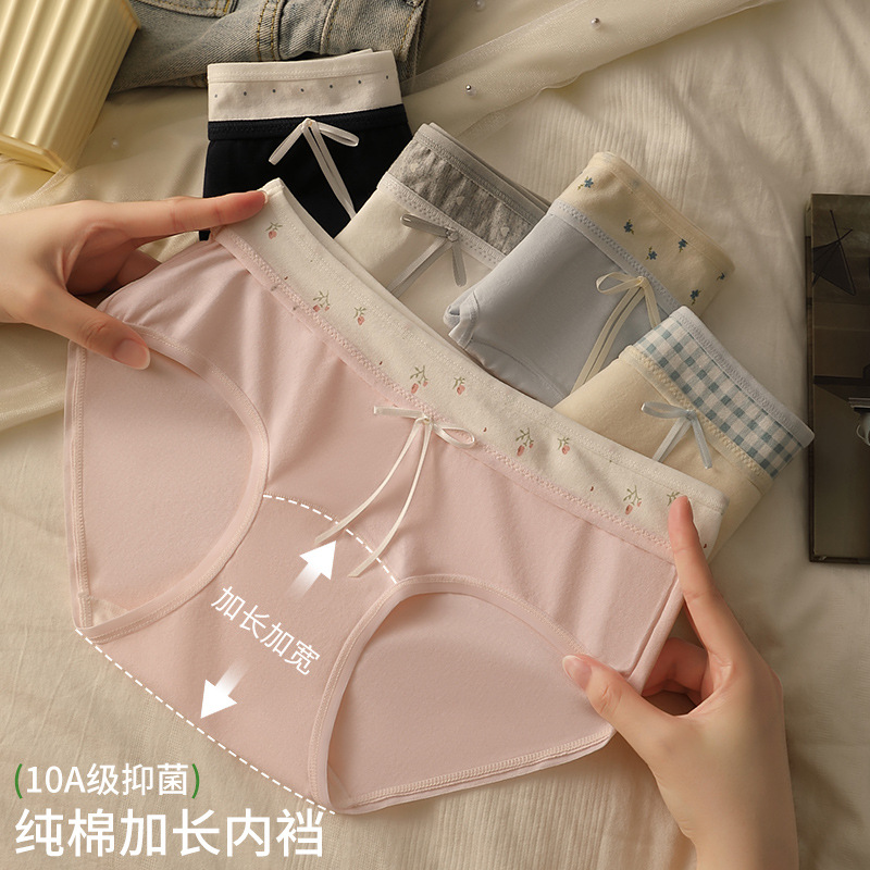 컬러 블록 긴 스테이플 코튼, 통기성이 뛰어난 가랑이, 피부 친화적인 A급 베이비 코튼 여성용 속옷, 여성용 얇은 팬티스토어 가기
