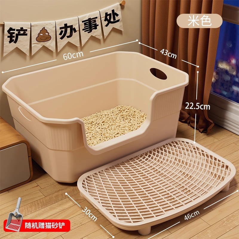 • 밀크 커피 컬러 [60cm 고양이 배변 상자 + 페달] 무료 고양이 배변 국자
