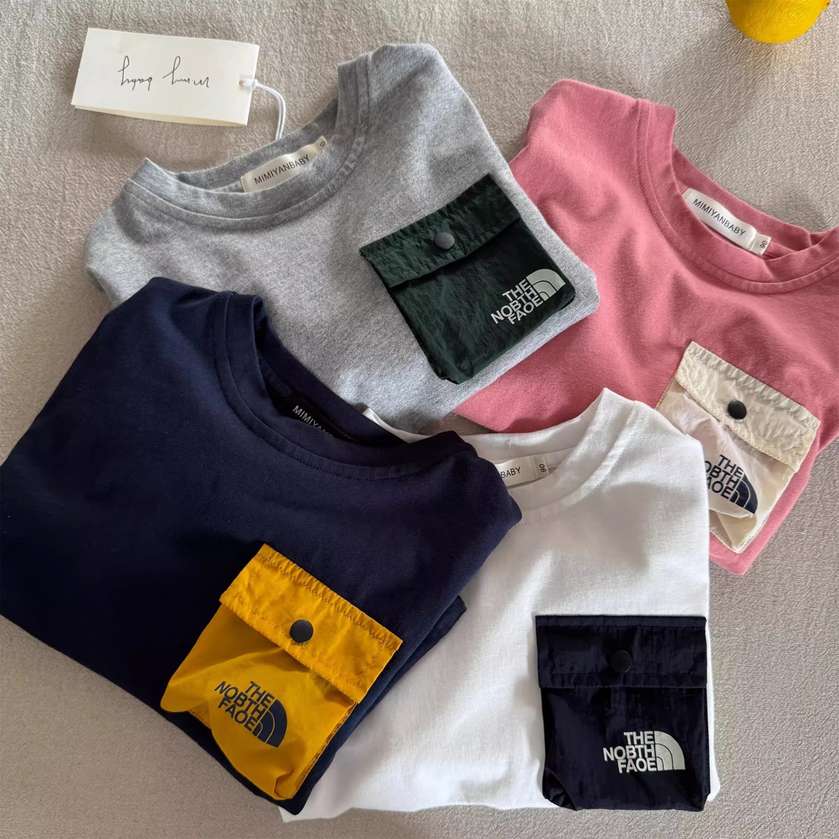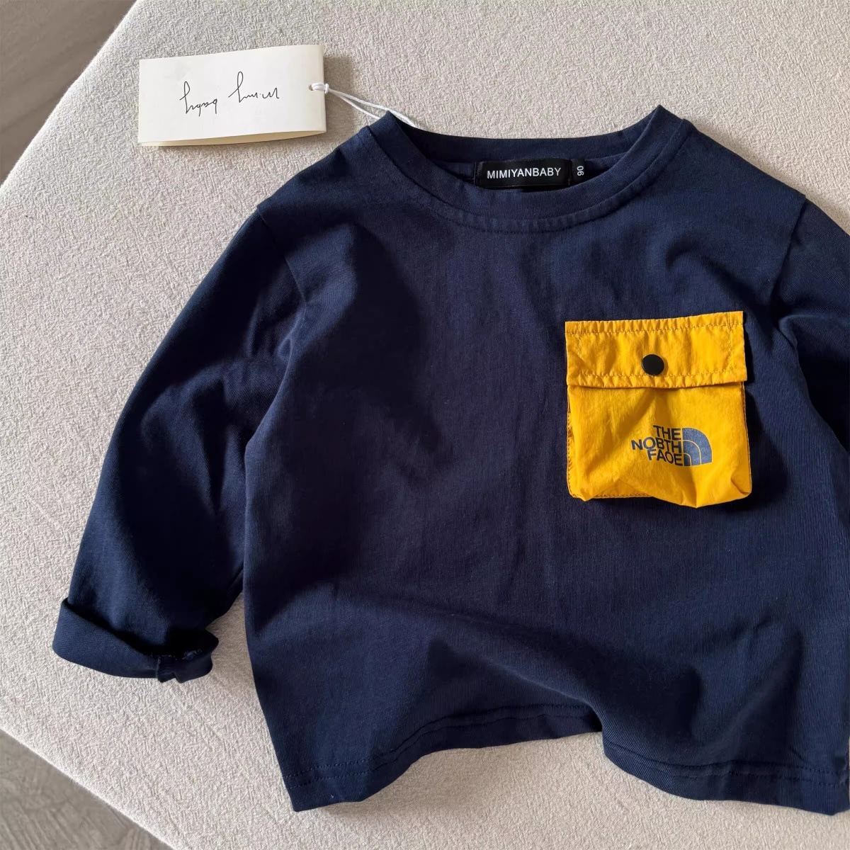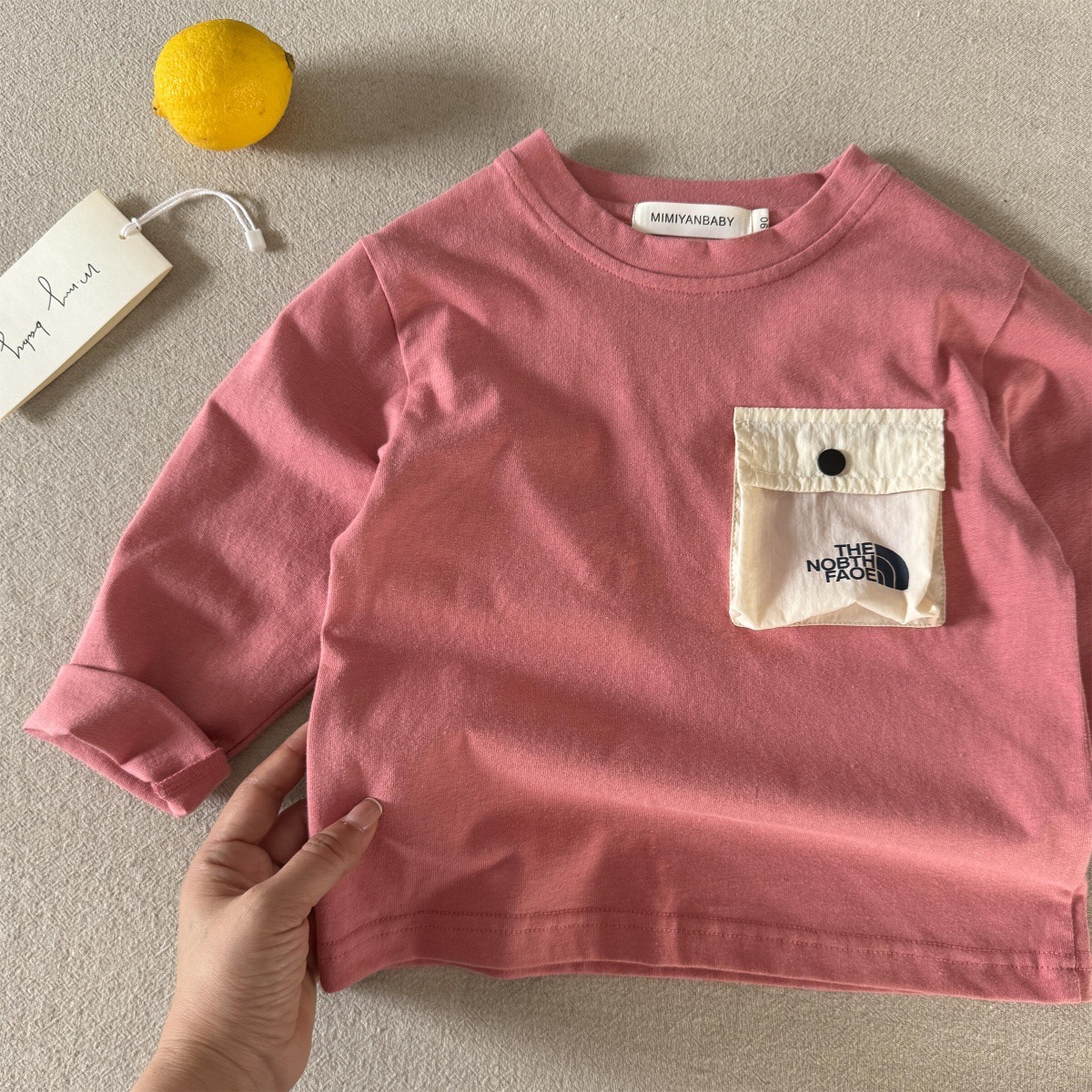 어린이 긴팔 티셔츠 가을 2025 일본 유행 브랜드 포켓 바닥 셔츠 아기 및 중소 어린이 컬러 매칭 탑 도매스토어 가기