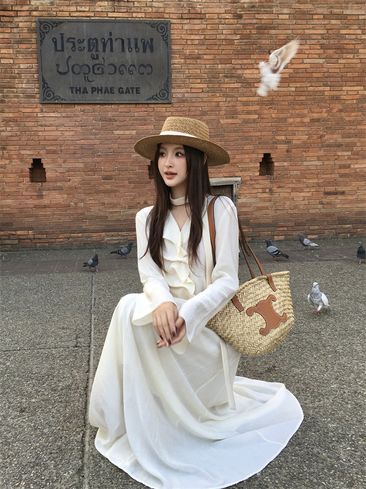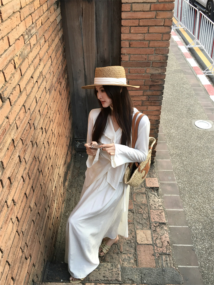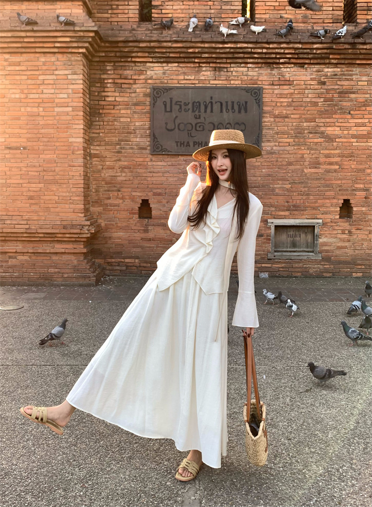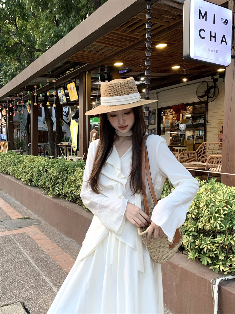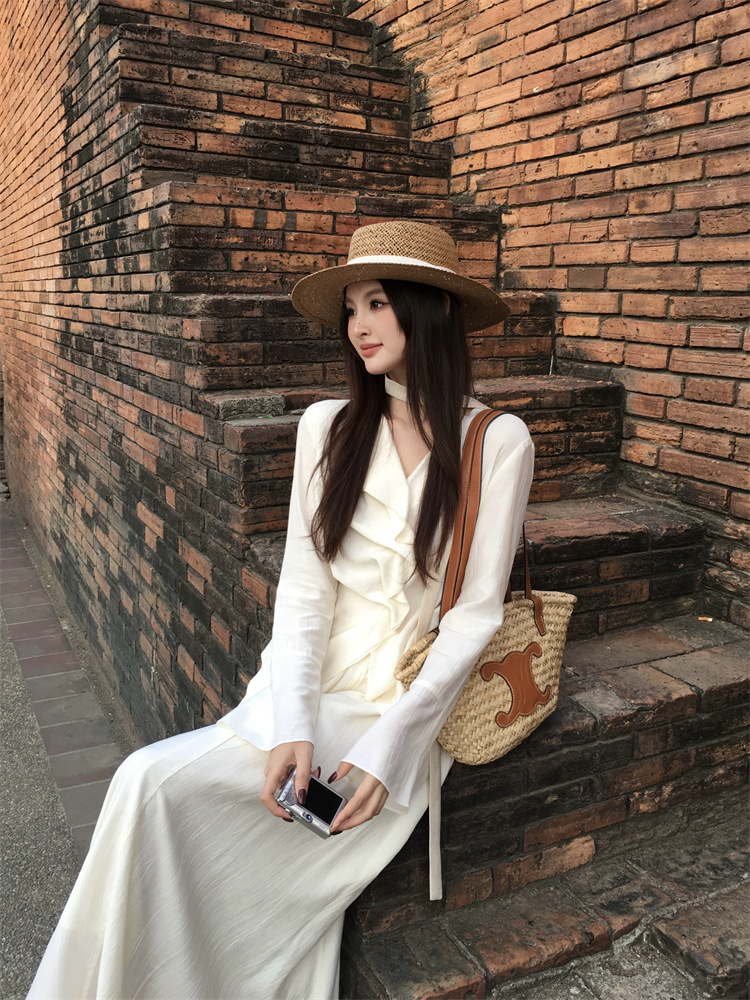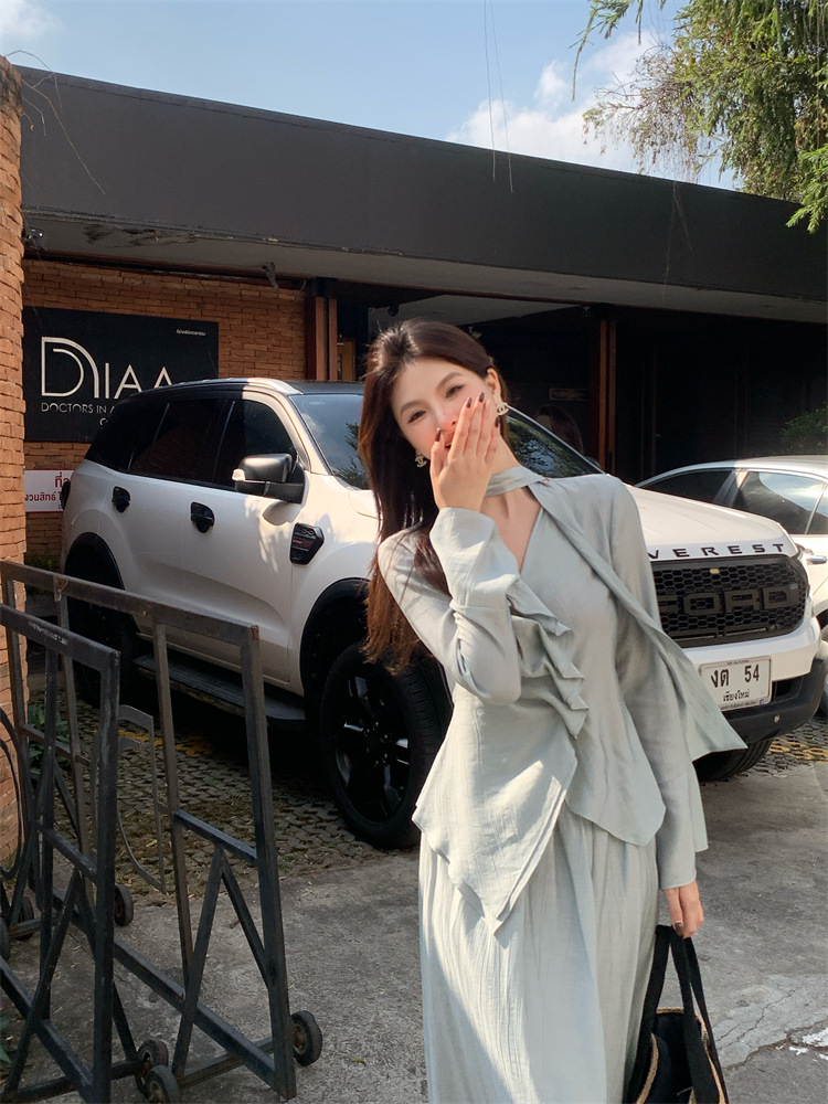 Xiuxixi 2025 새로운 가을 스타일 쉬폰 셔츠 + 여성용 하이 웨이스트 A 라인 하프 길이 스커트 투피스 슈트 89248