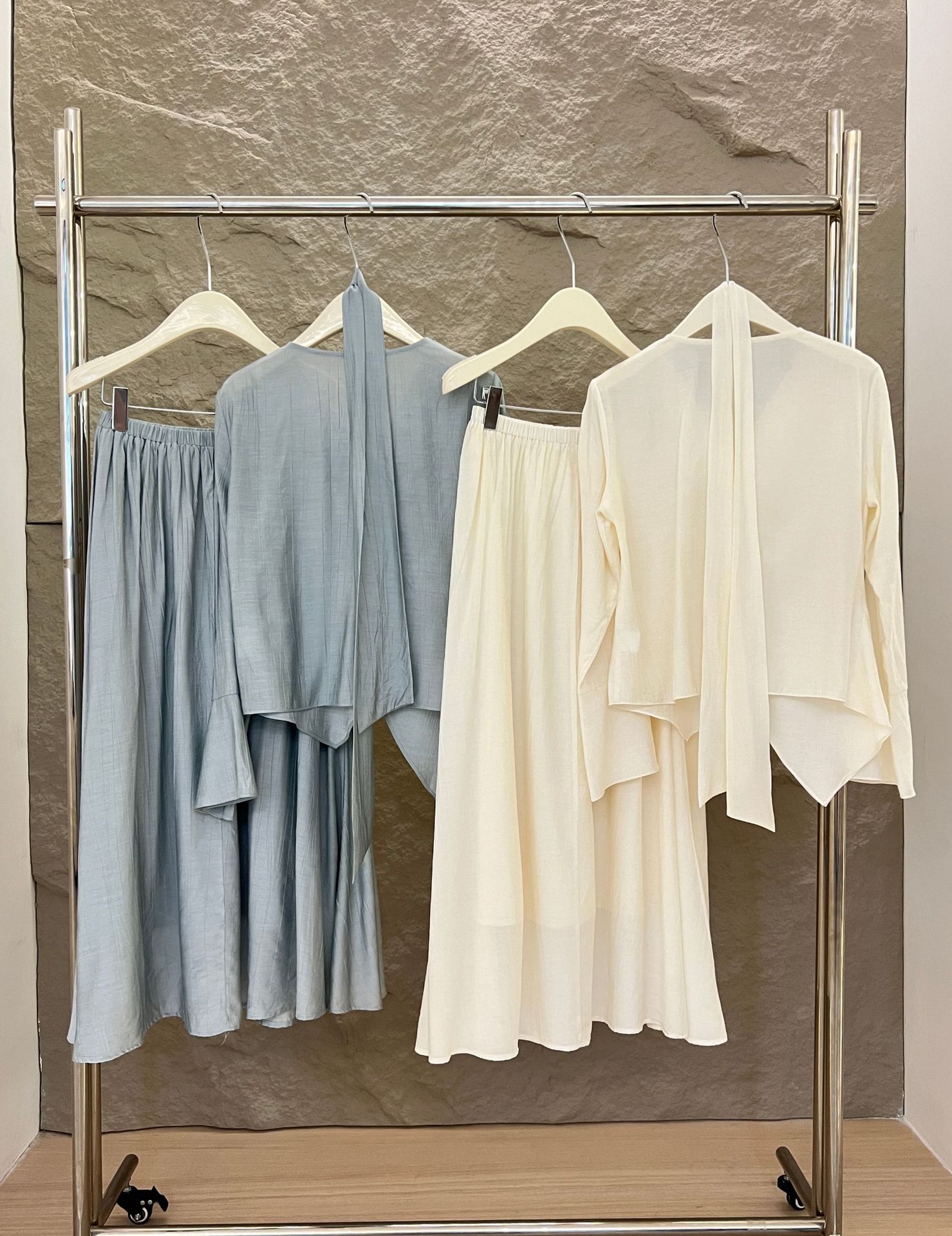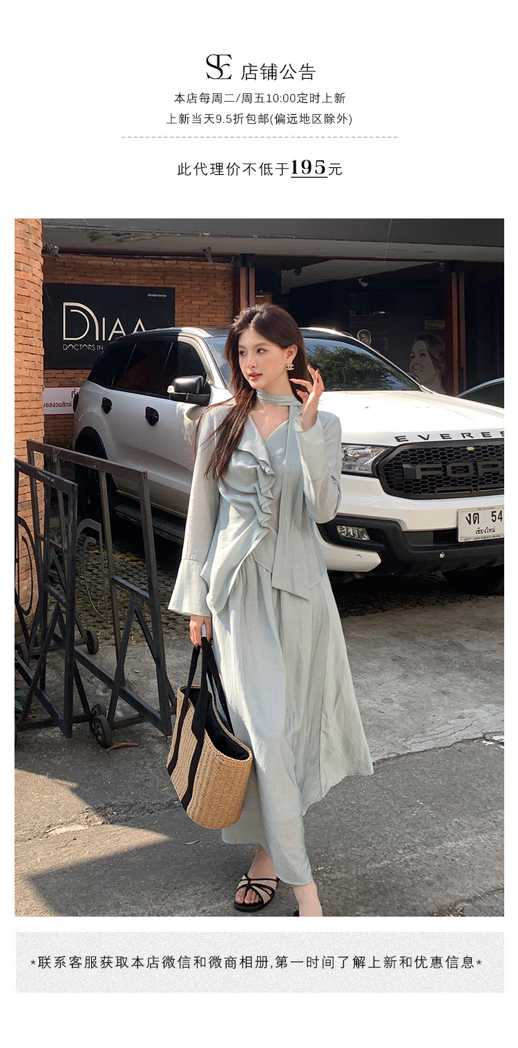 Xiuxixi 2025 새로운 가을 스타일 쉬폰 셔츠 + 여성용 하이 웨이스트 A 라인 하프 길이 스커트 투피스 슈트 89248스토어 가기