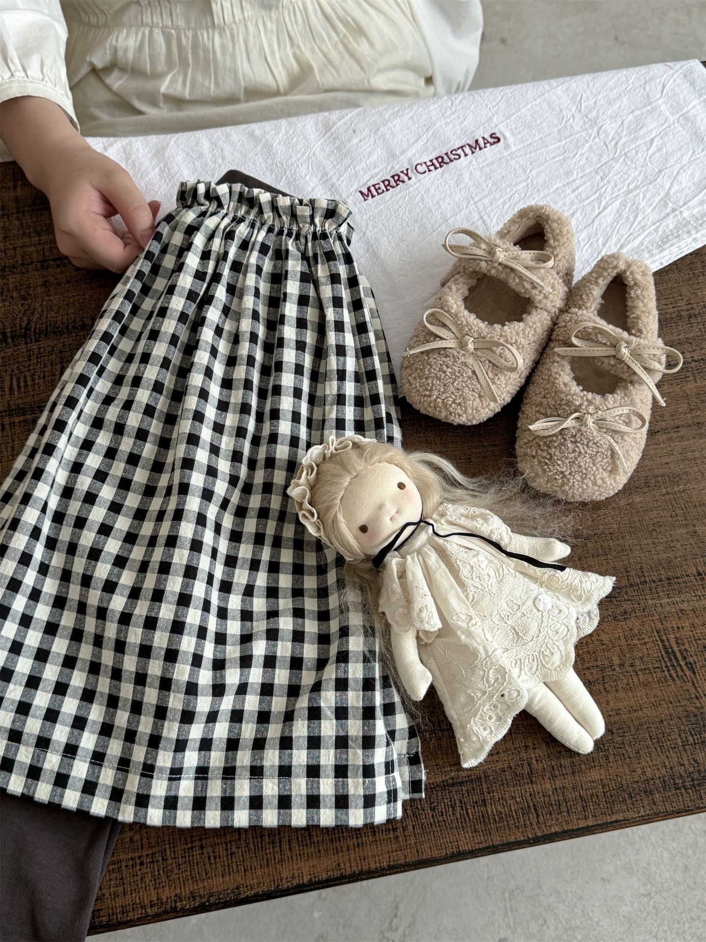 莱抱抱~2025秋季新品女童韩版裙裤打底裤百搭格子森系一体半裙打