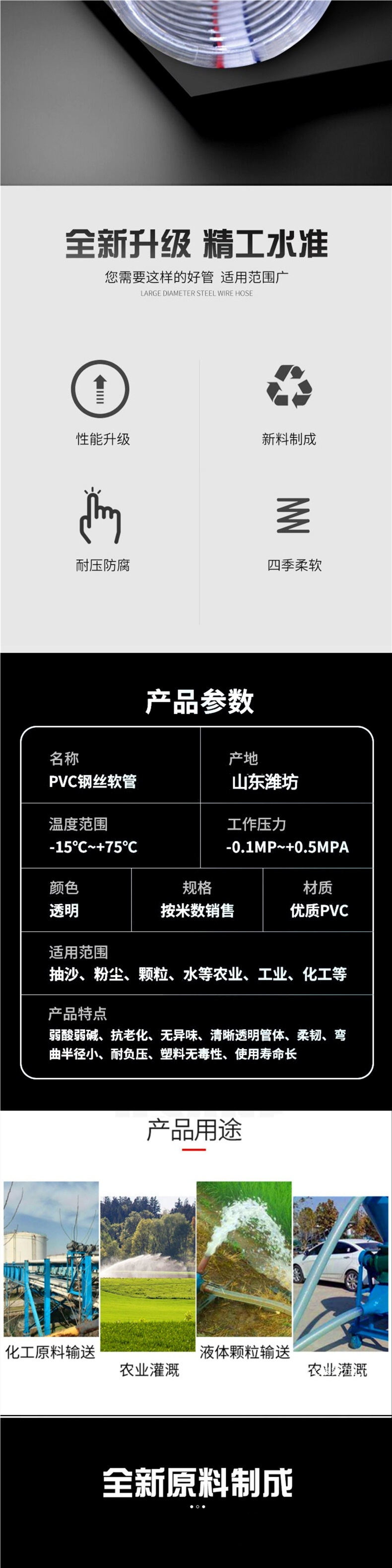 두꺼운 강철 와이어 호스 투명 234 5inch 6inch 동결 방지 진공 음압 파이프 하수관 워터 펌프 흡입 파이프