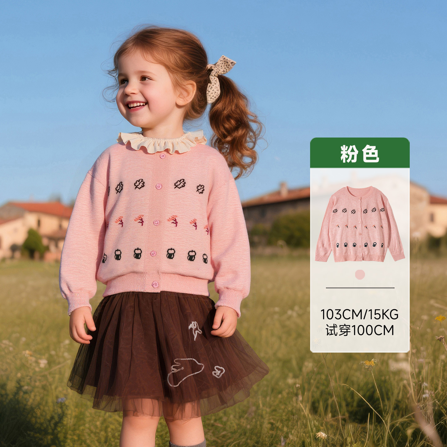 목가적 스타일의 카디건 스웨터 아밀라 아동복 2025 가을 신상 여아용 달콤한 예술적 상의스토어 가기