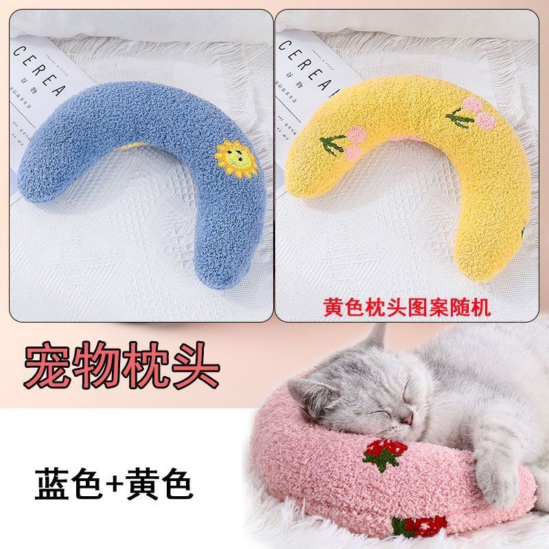 고양이 작은 베개, 애완동물 고양이 베개, 목 보호대, U자형 베개, 부드럽고 두꺼운 베개, 애완동물 용품 쿠션