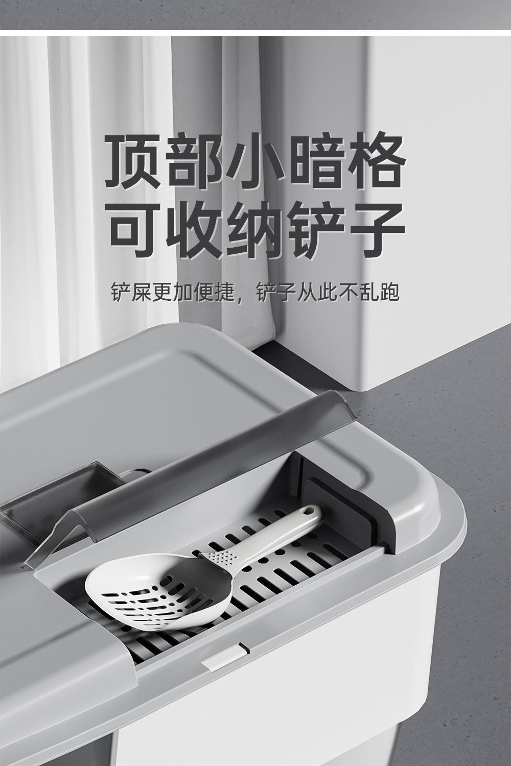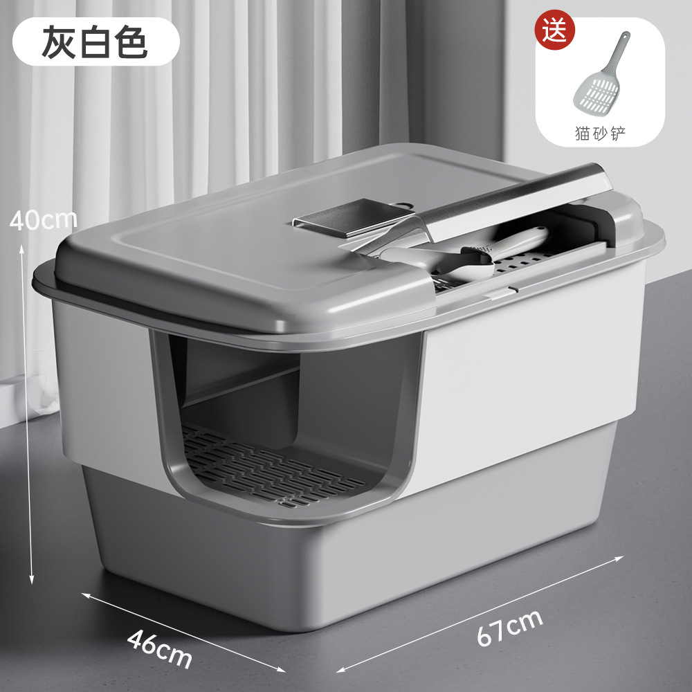 • [두꺼워진] 튐 방지 고양이 화장실 - 회색과 흰색 색상