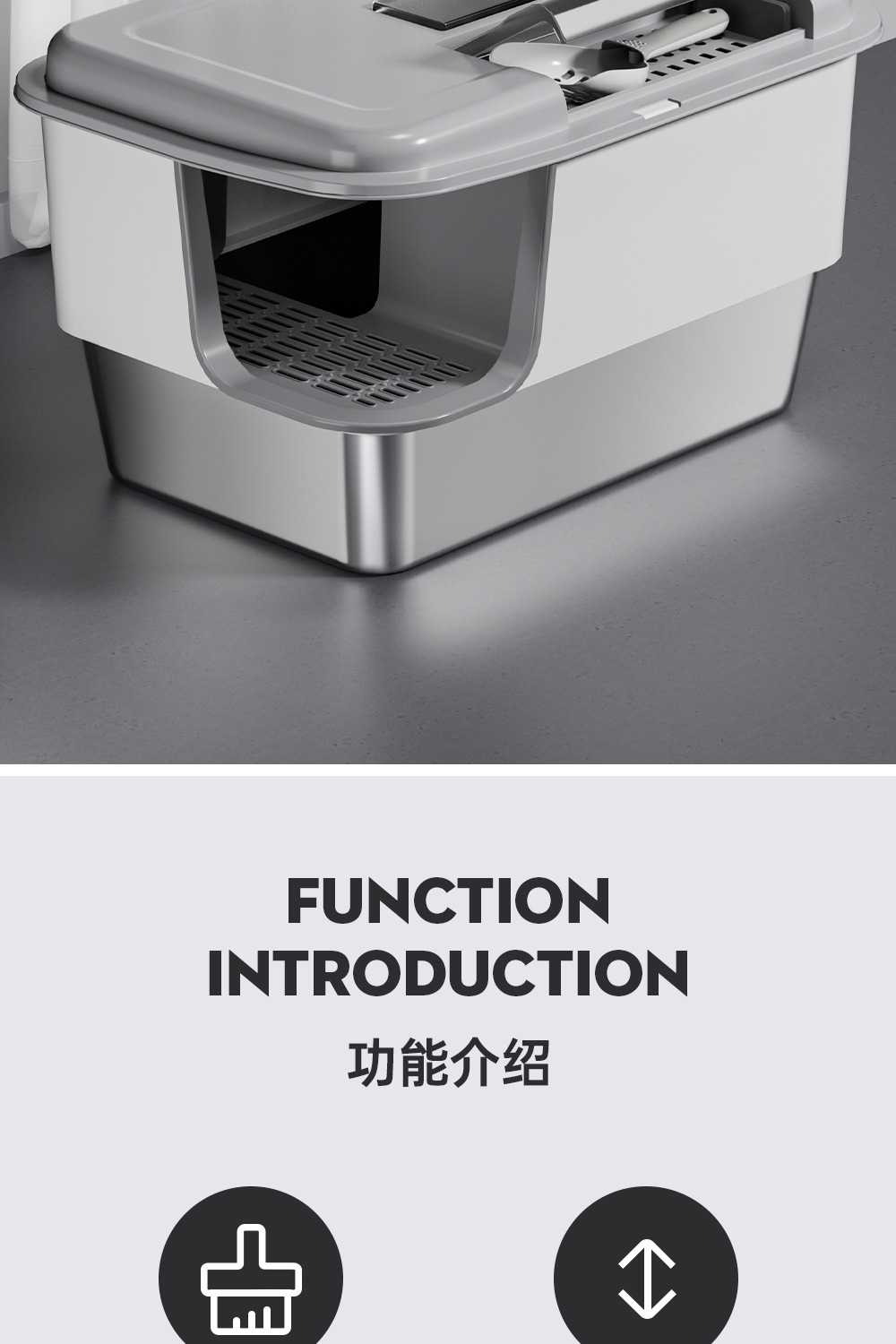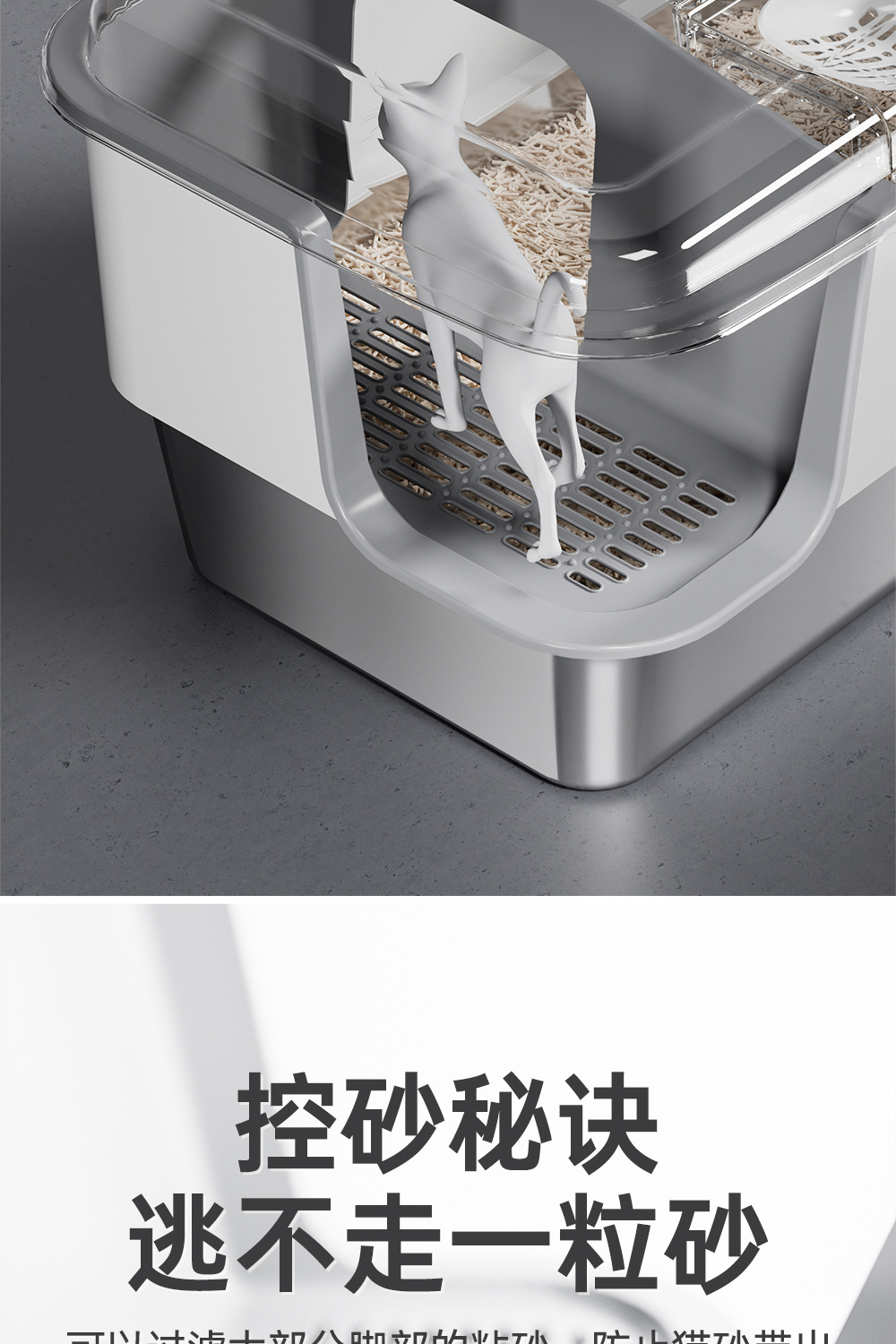 • 두꺼운 스테인리스 스틸 고양이 화장실, 회색 & 흰색 배색 [하단 받침대 15CM]